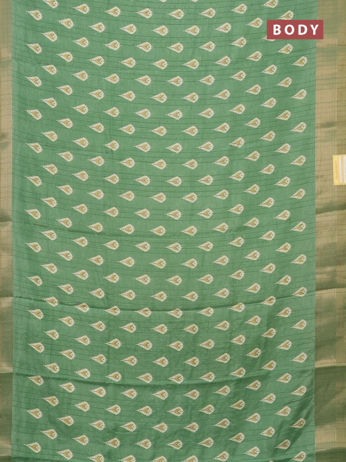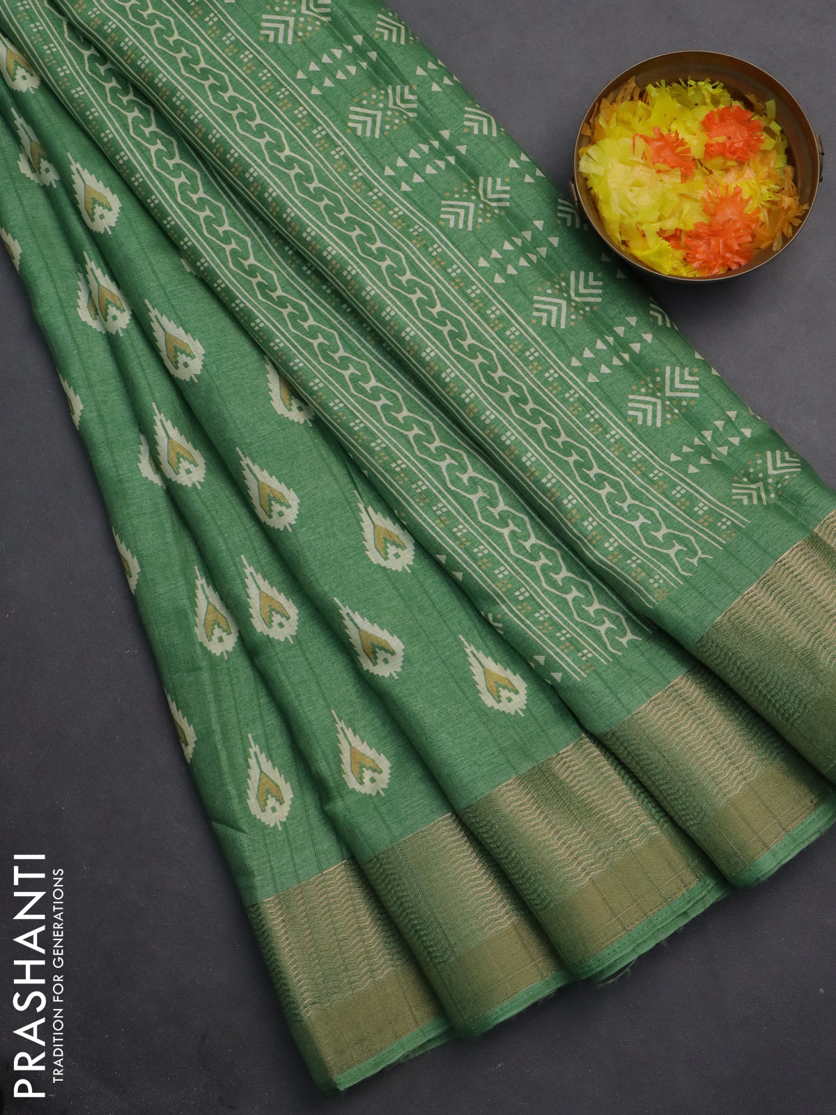 Semi dola saree green with butta prints and zari woven border