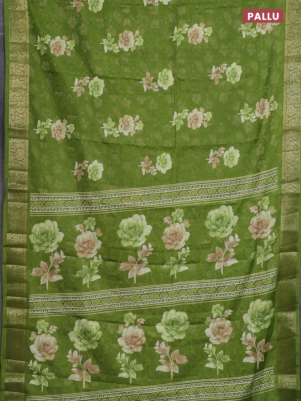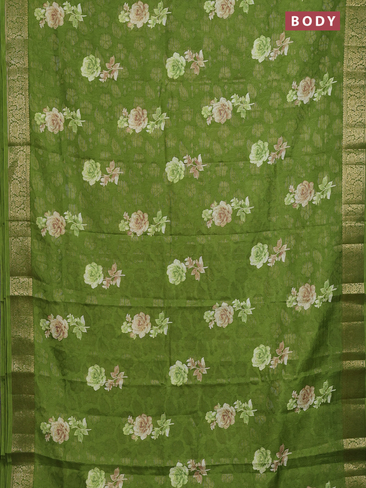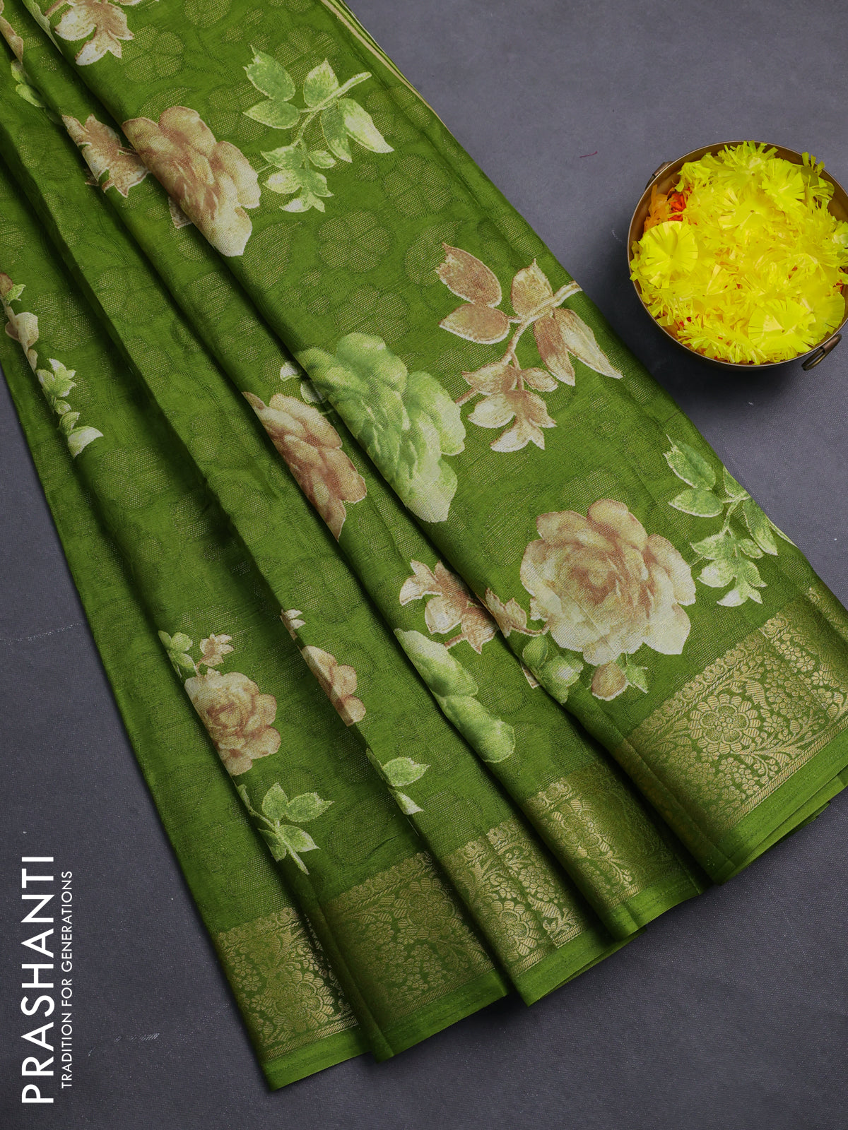 Semi dola saree green with floral prints & zari weaves and zari woven border