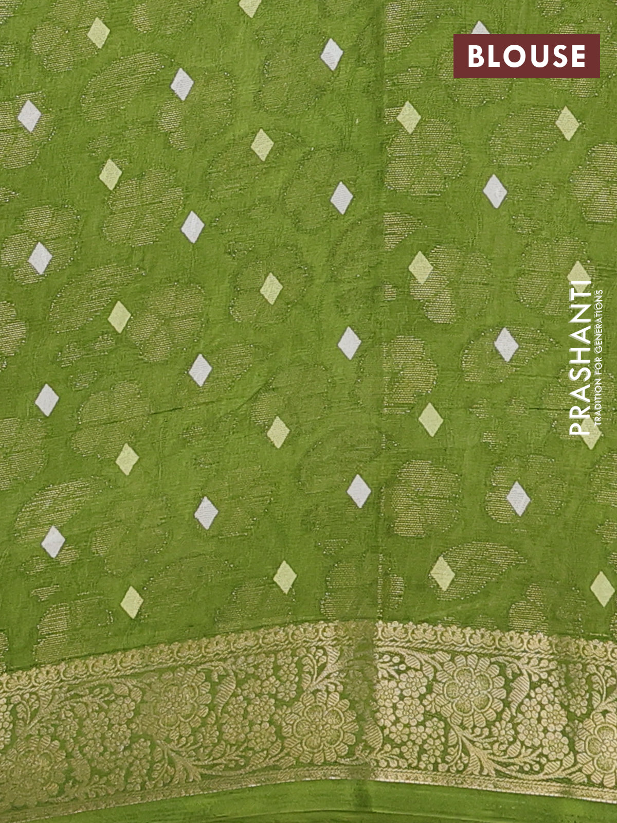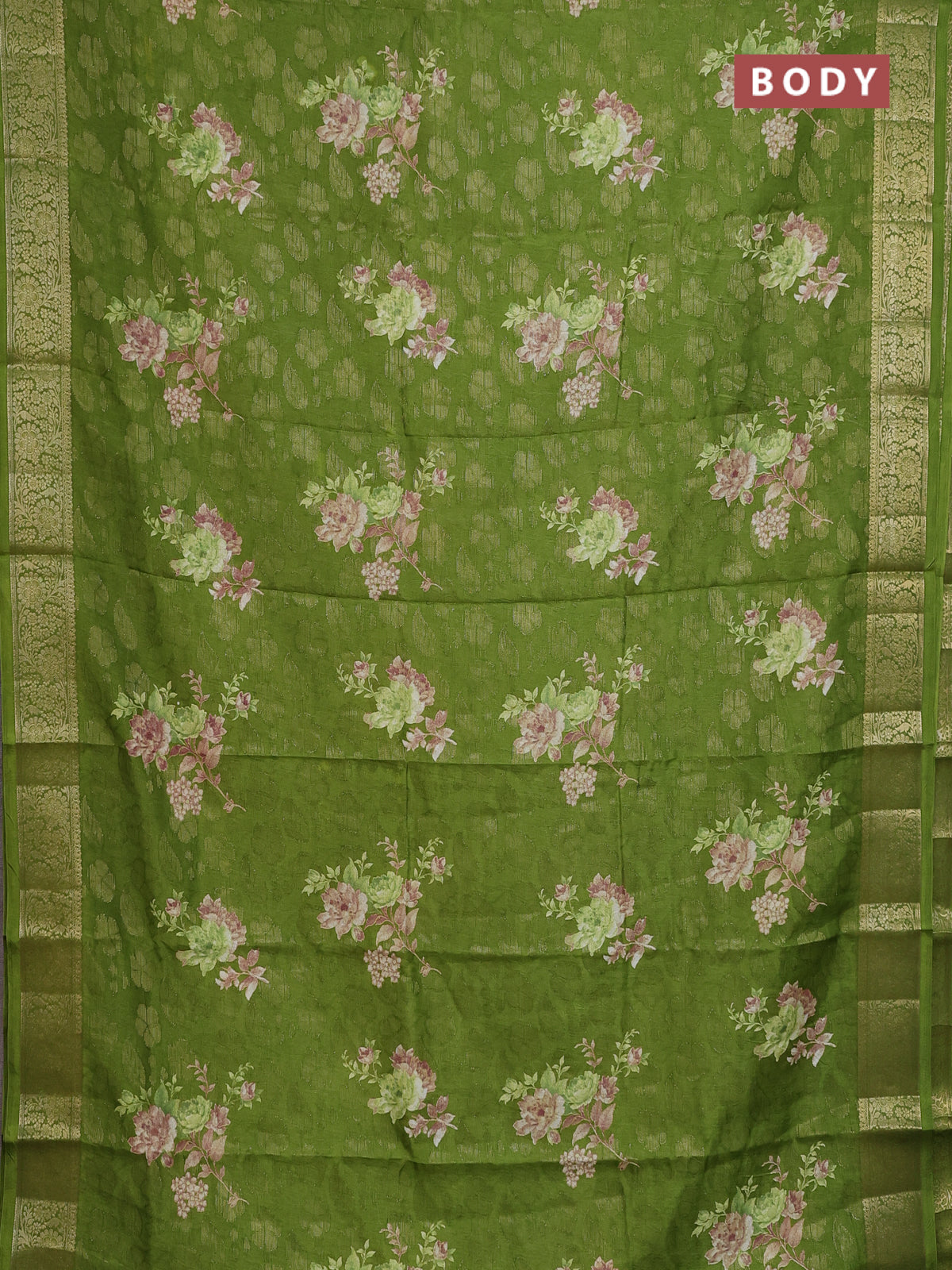 Semi dola saree green with floral prints & zari weaves and zari woven border