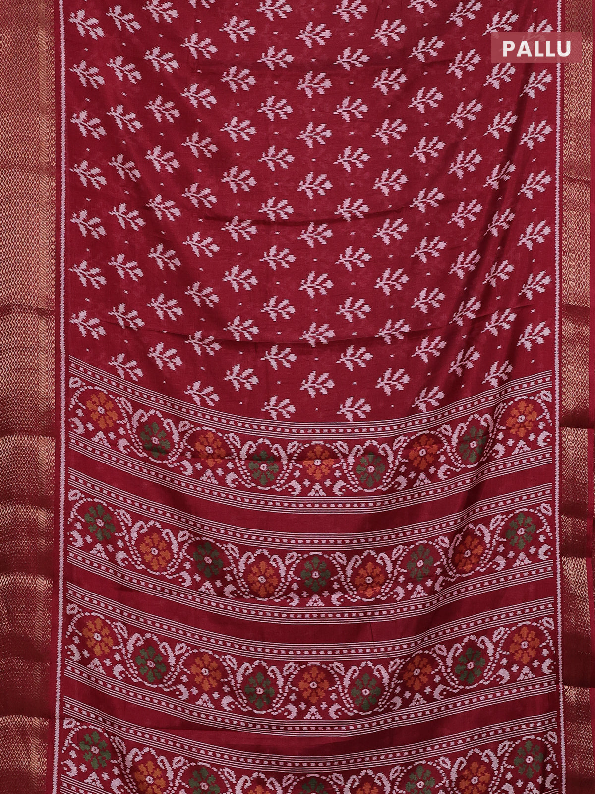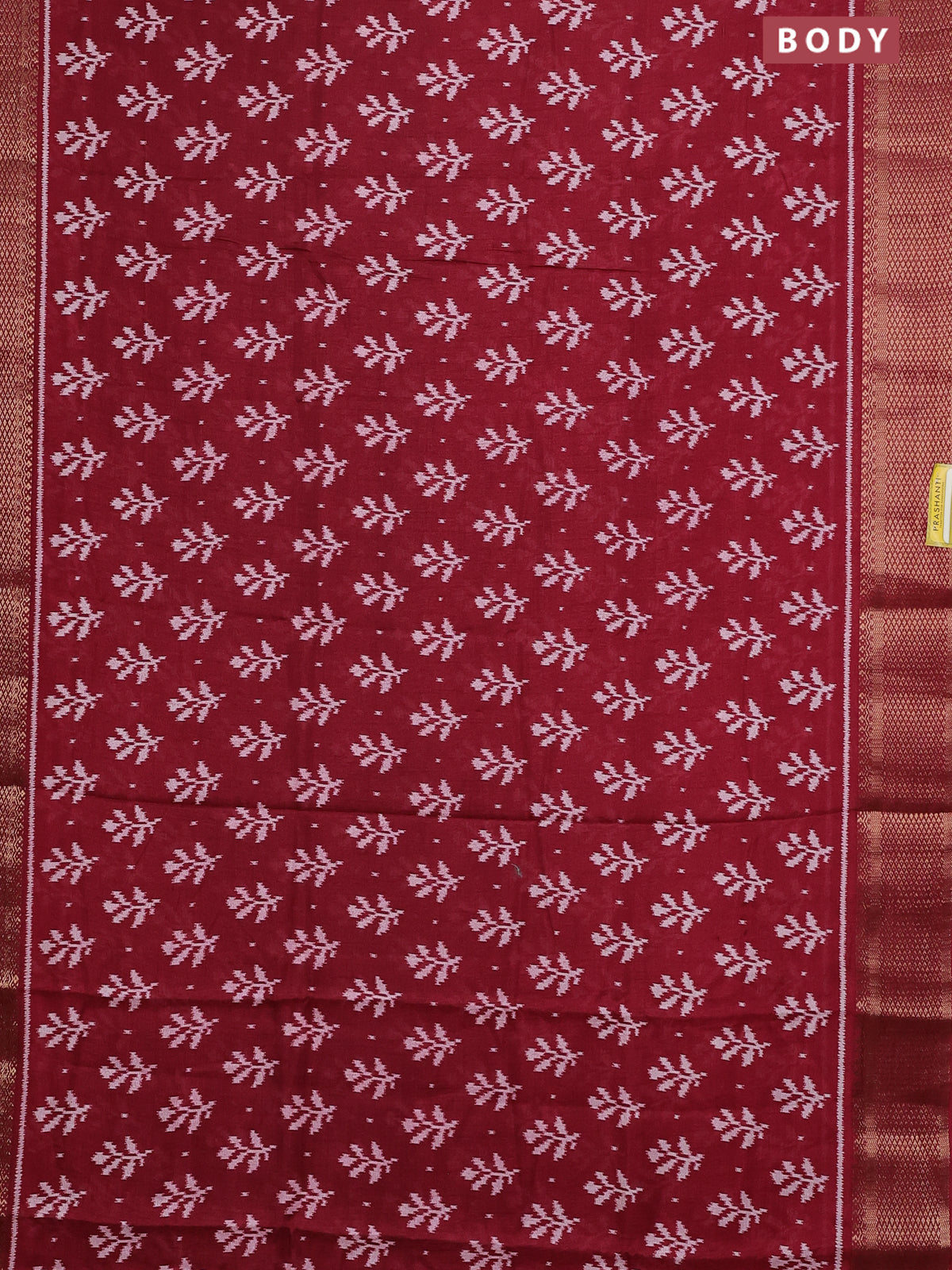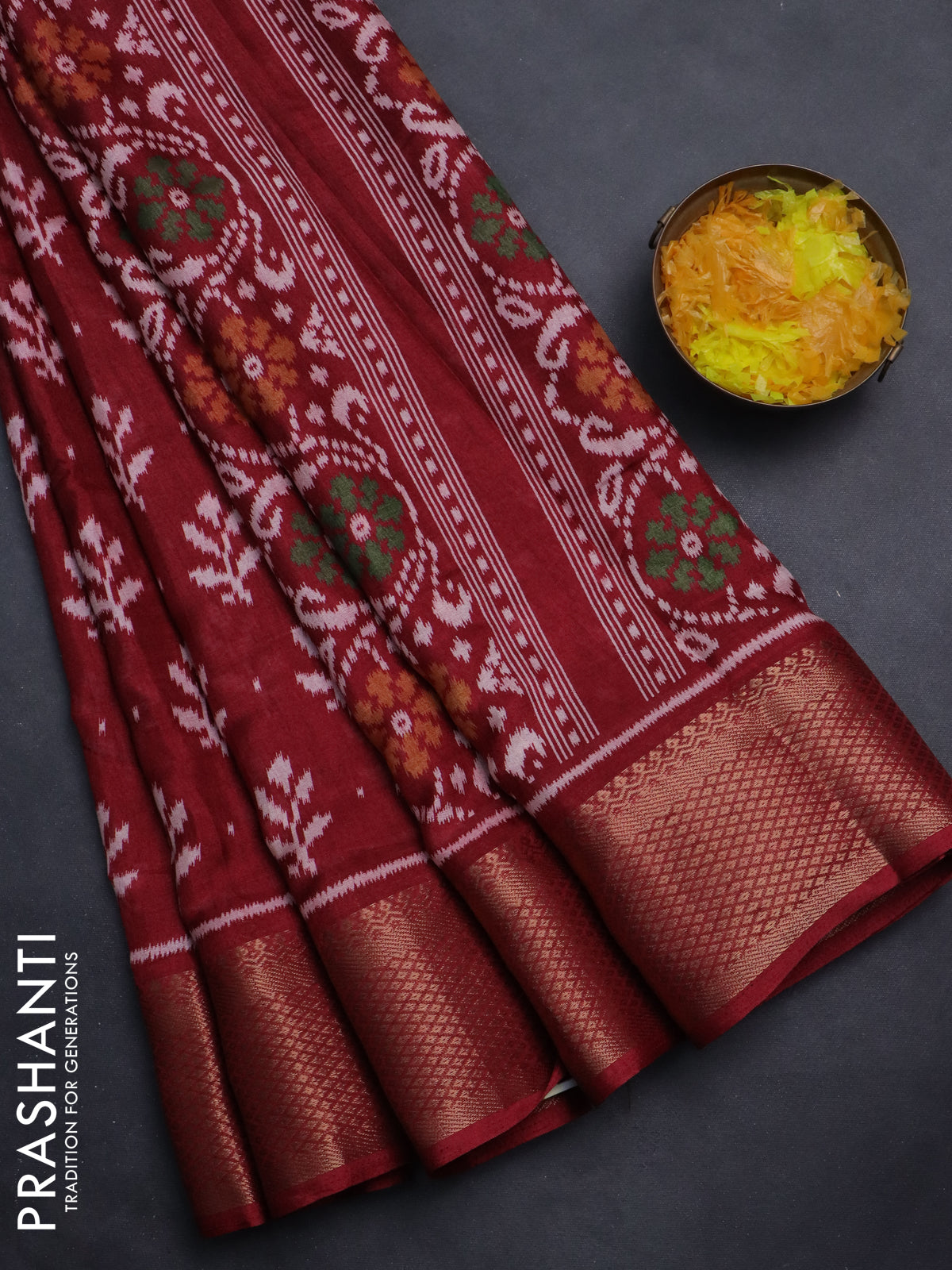 Semi dola saree maroon with allover ikat butta prints and zari woven border