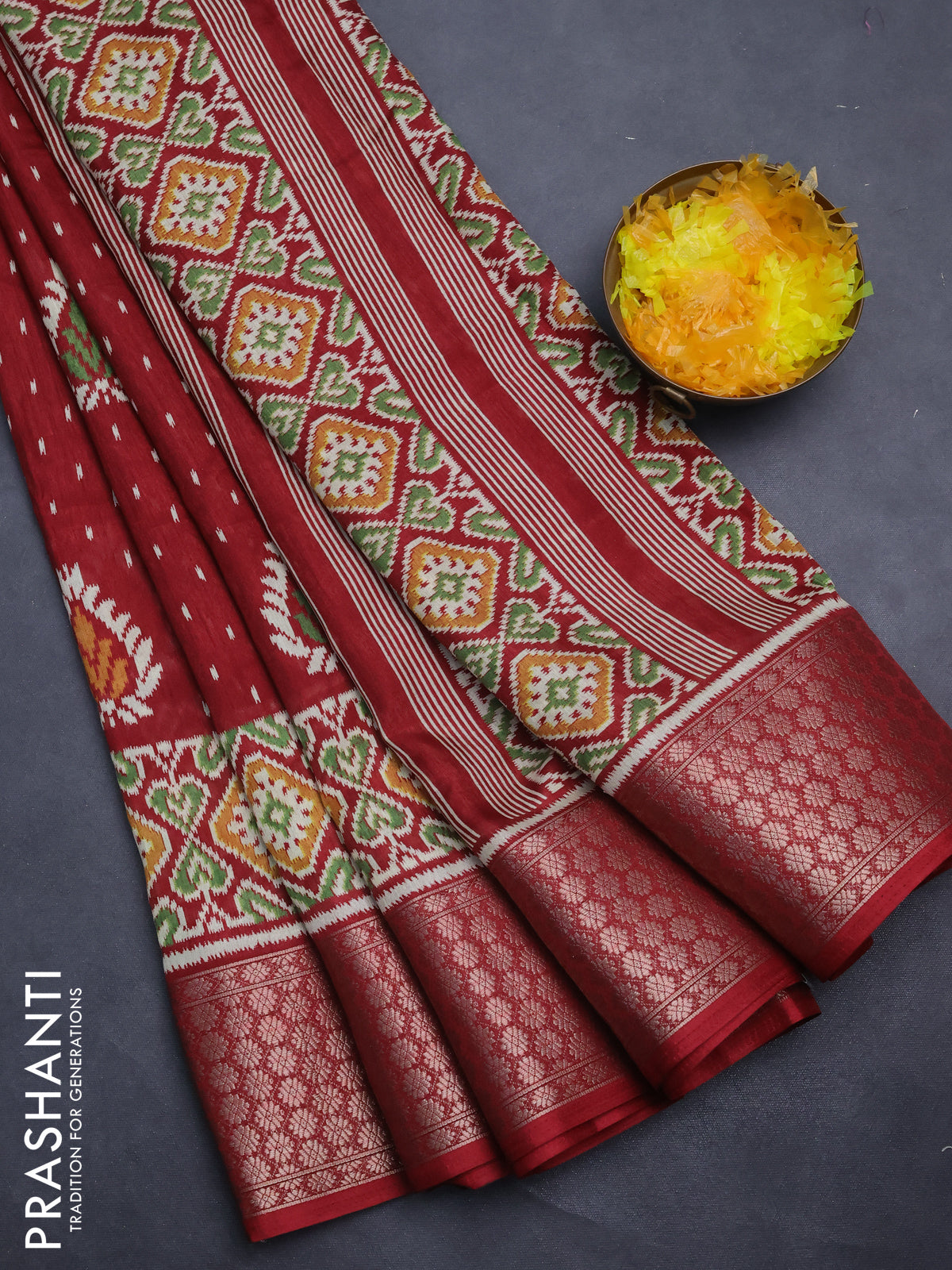 Semi dola saree maroon with allover prints and zari woven border