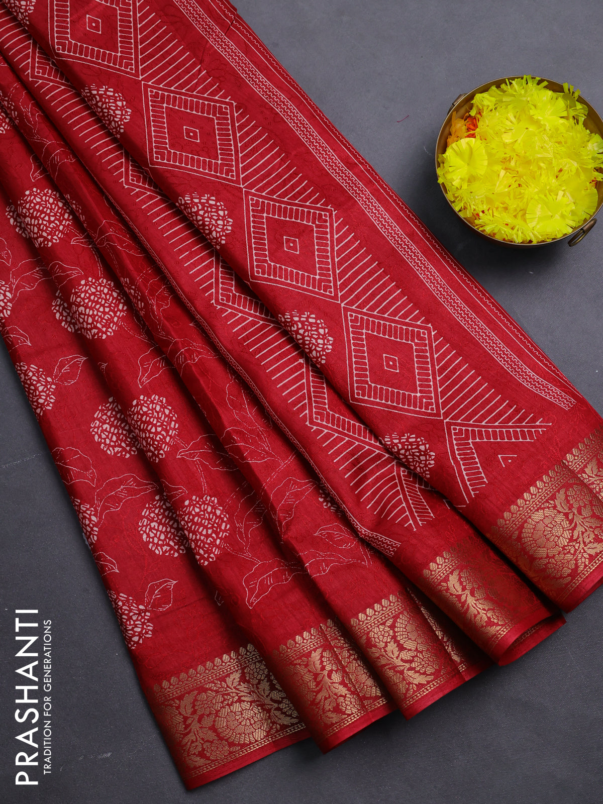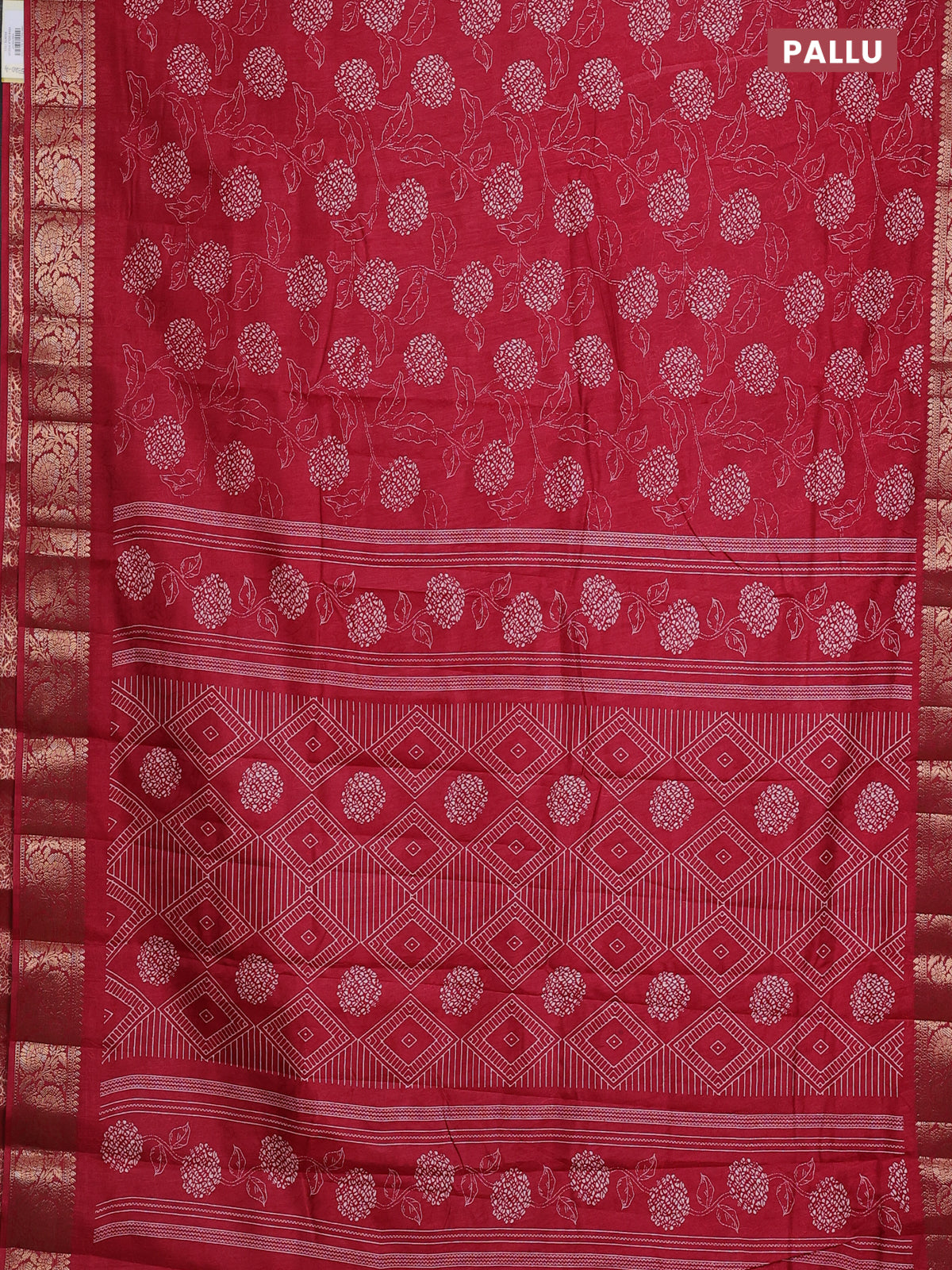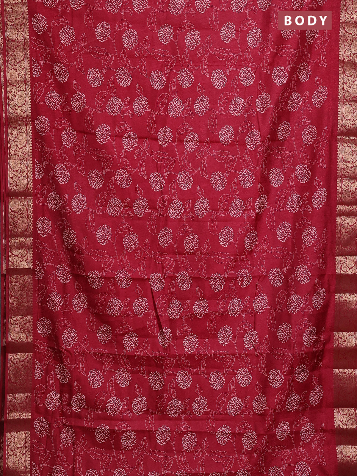 Semi dola saree maroon with floral prints & self emboss and zari woven border
