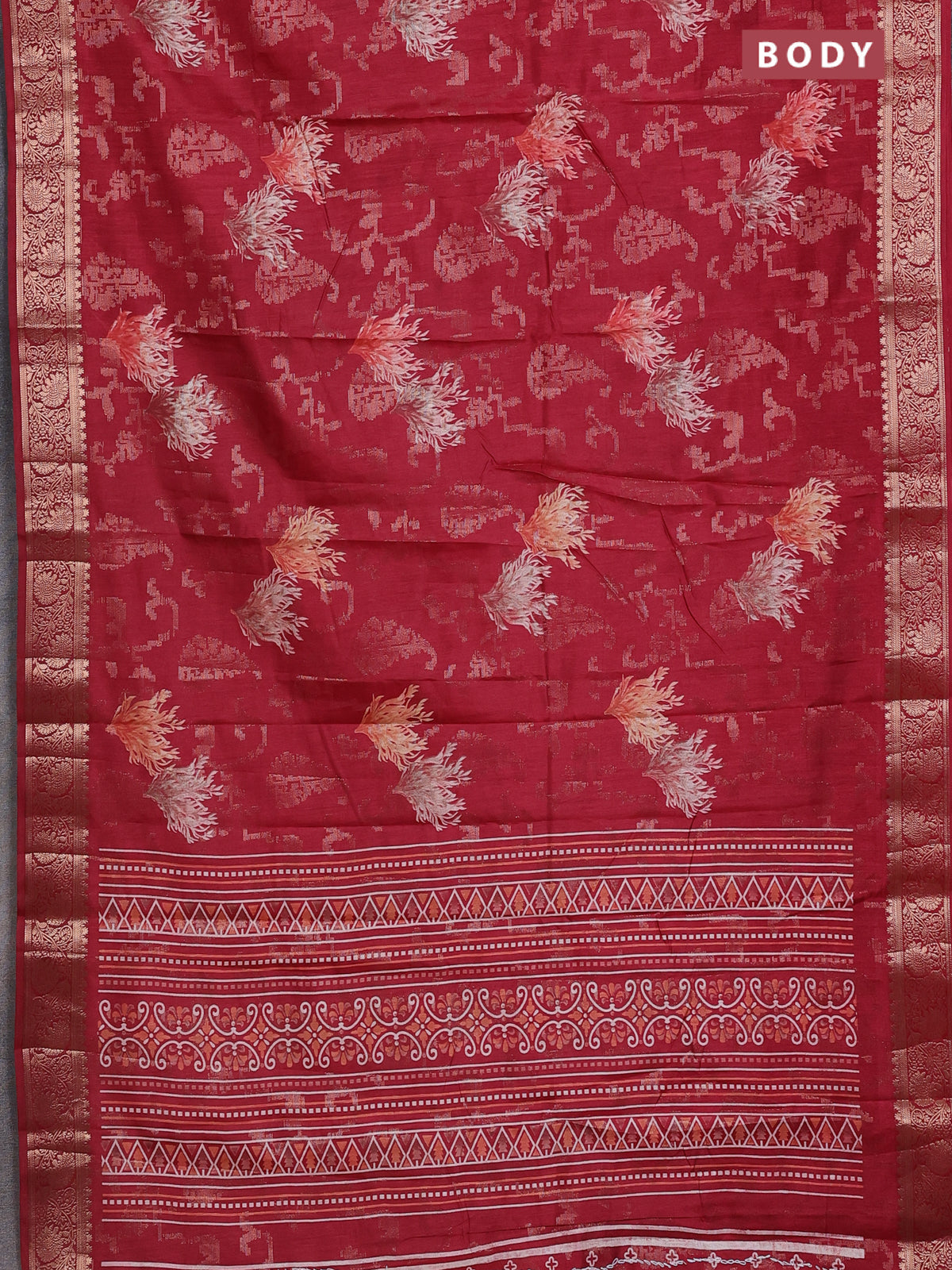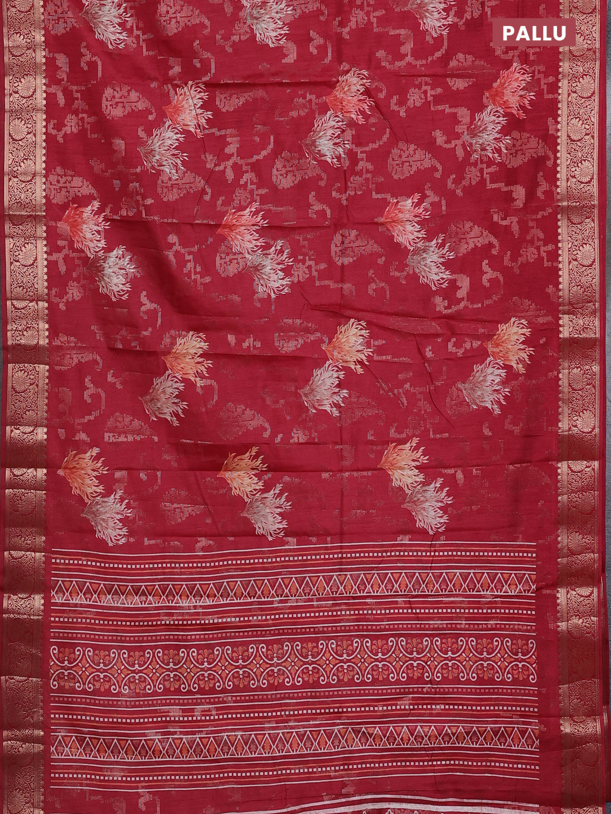 Semi dola saree maroon with floral prints & zari weaves and zari woven border