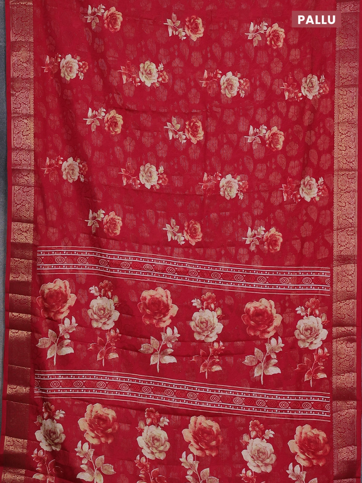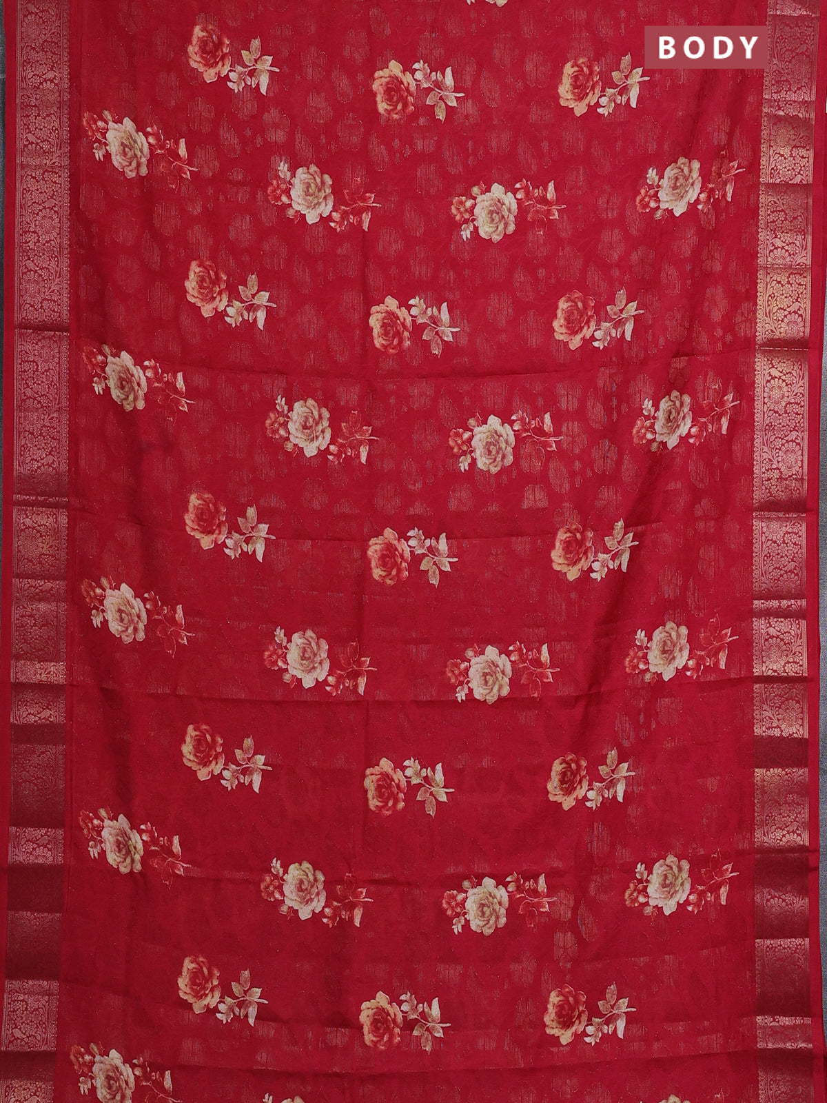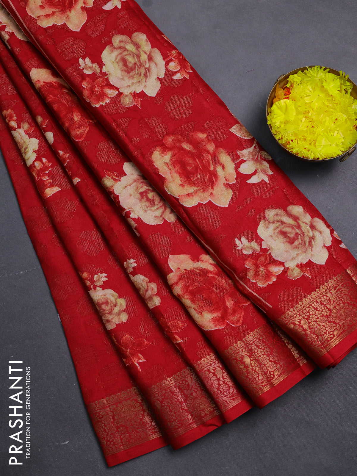 Semi dola saree maroon with floral prints & zari weaves and zari woven border
