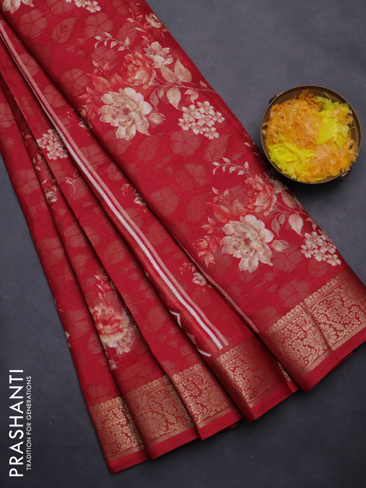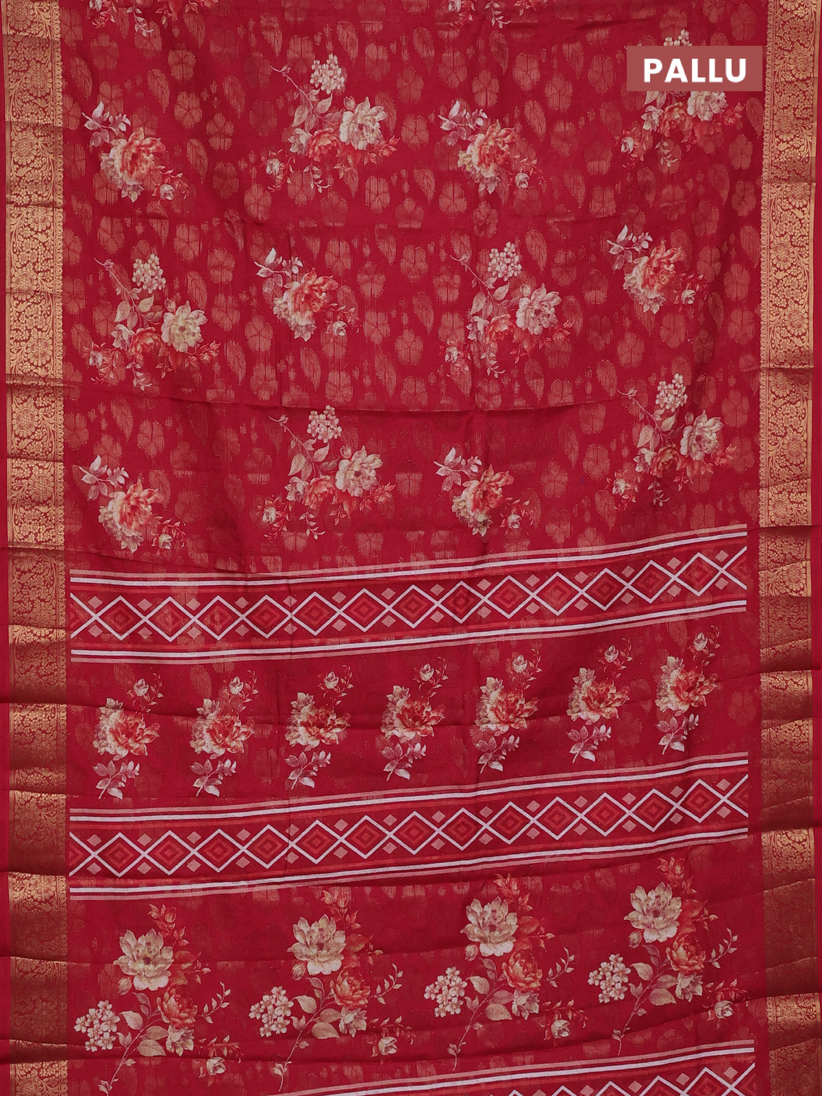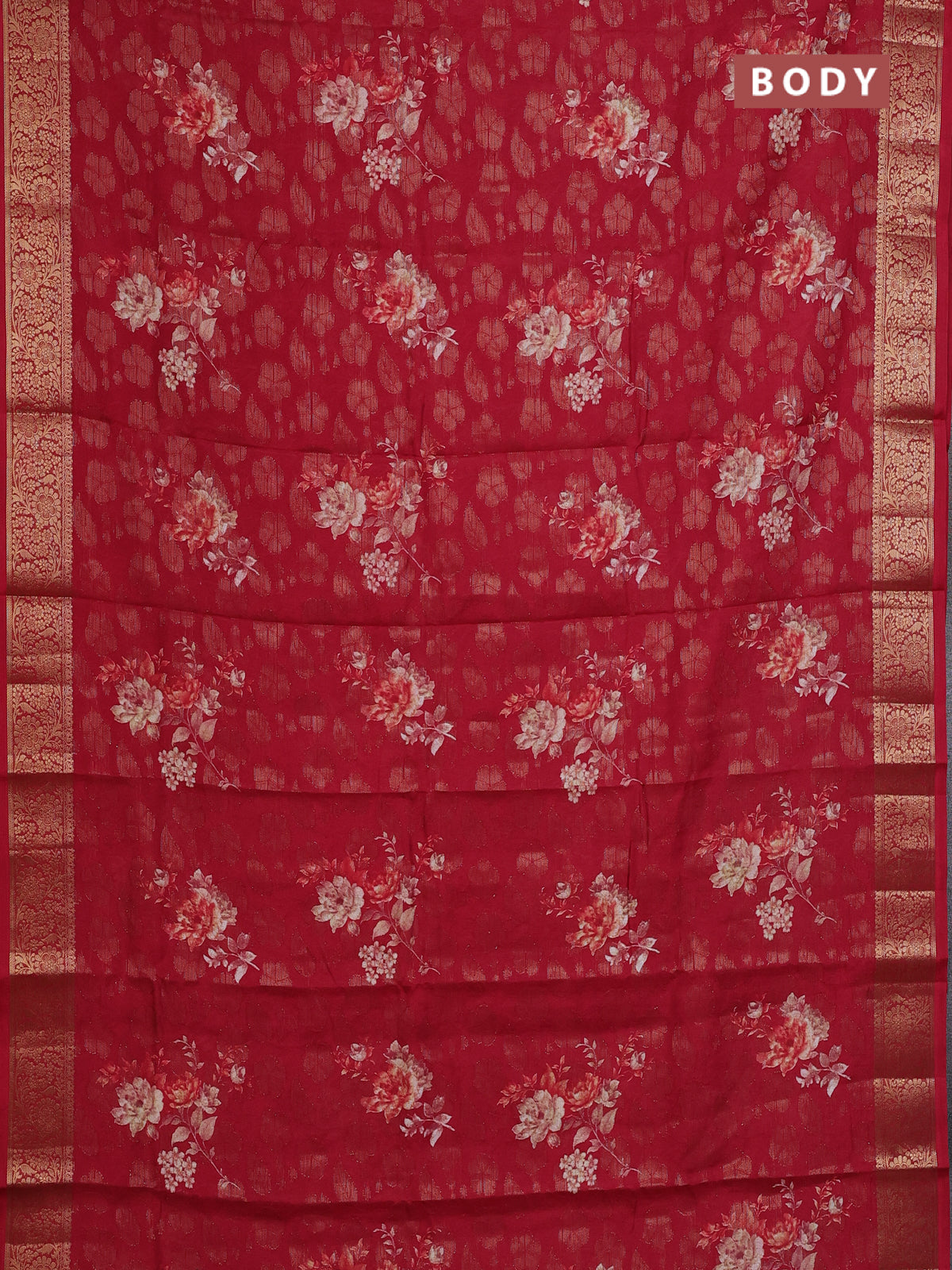 Semi dola saree maroon with floral prints & zari weaves and zari woven border