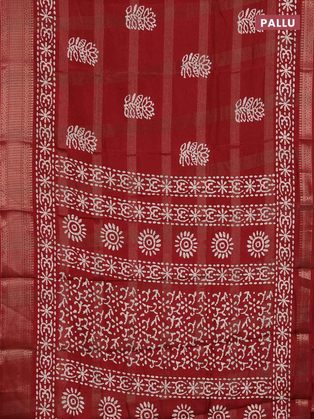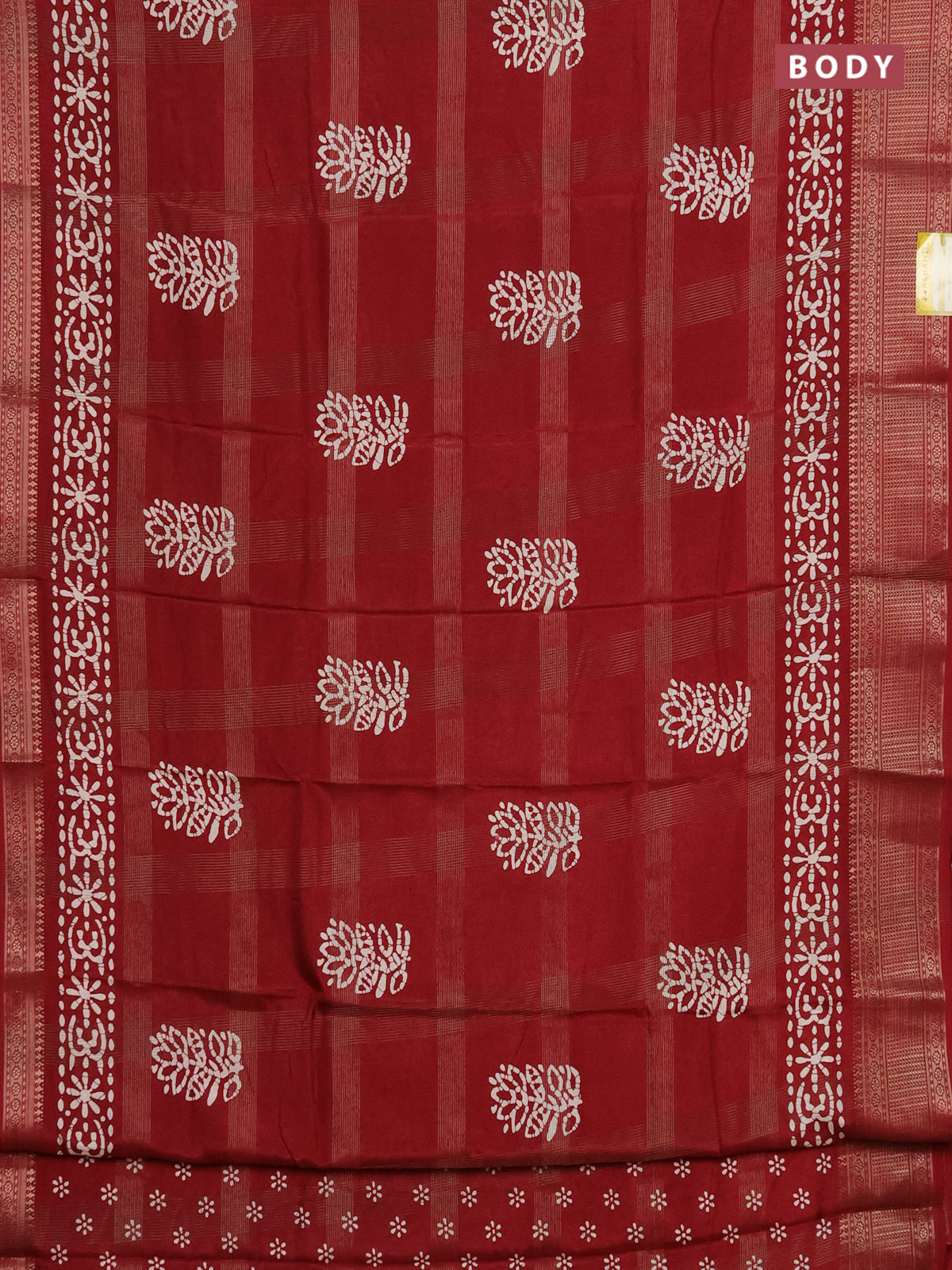 Semi dola saree maroon with zari weaves & batik prints and zari woven border