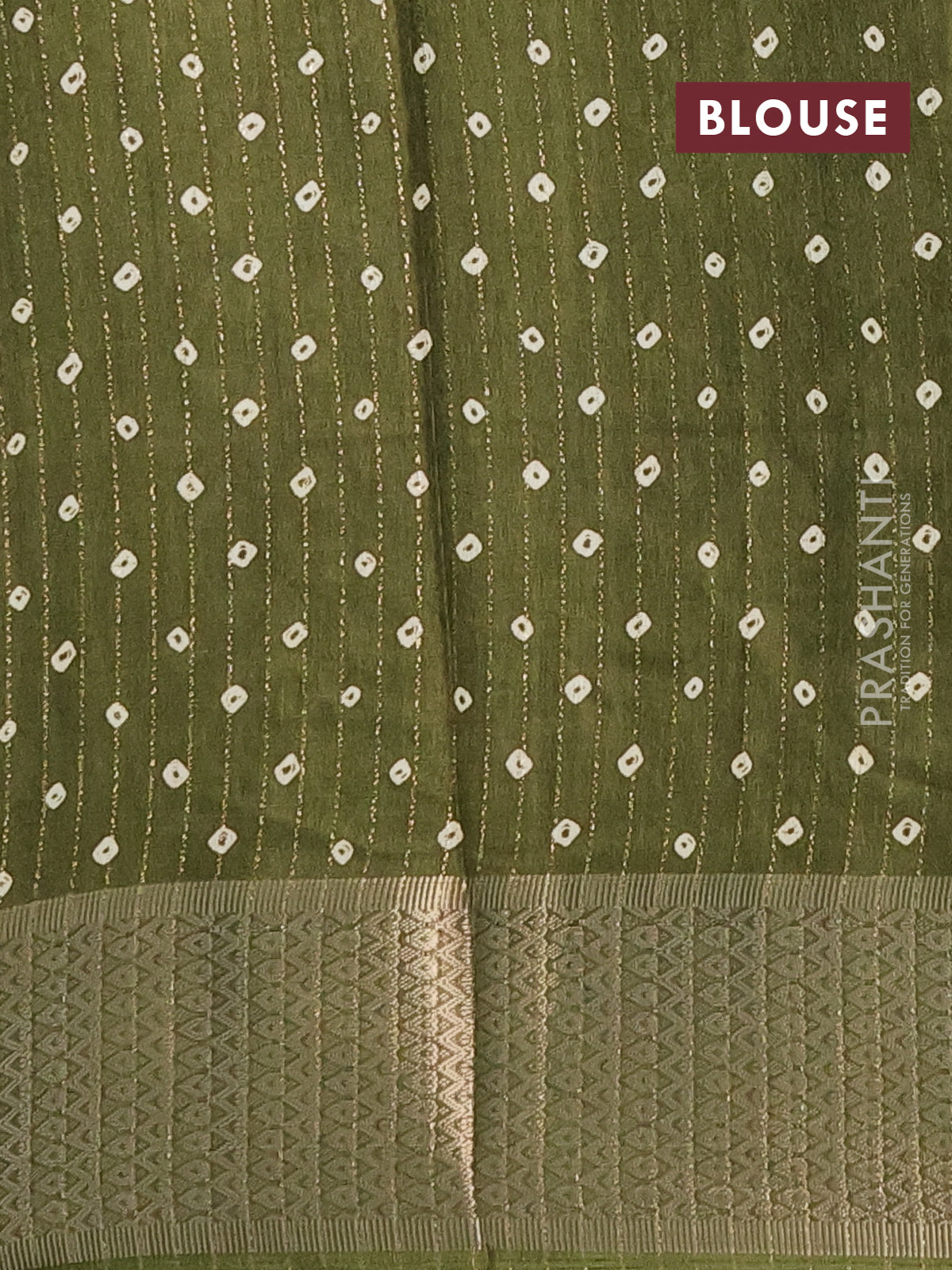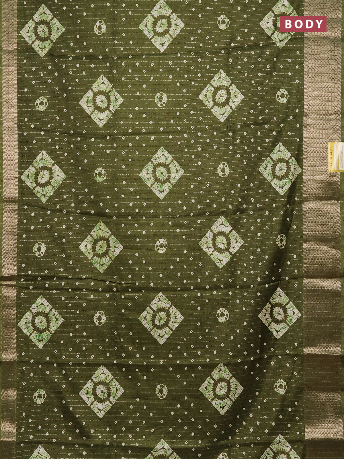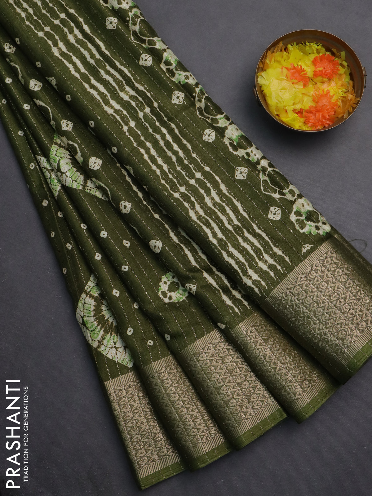 Semi dola saree mehendi green with allover zari weaves & batik prints and zari woven border