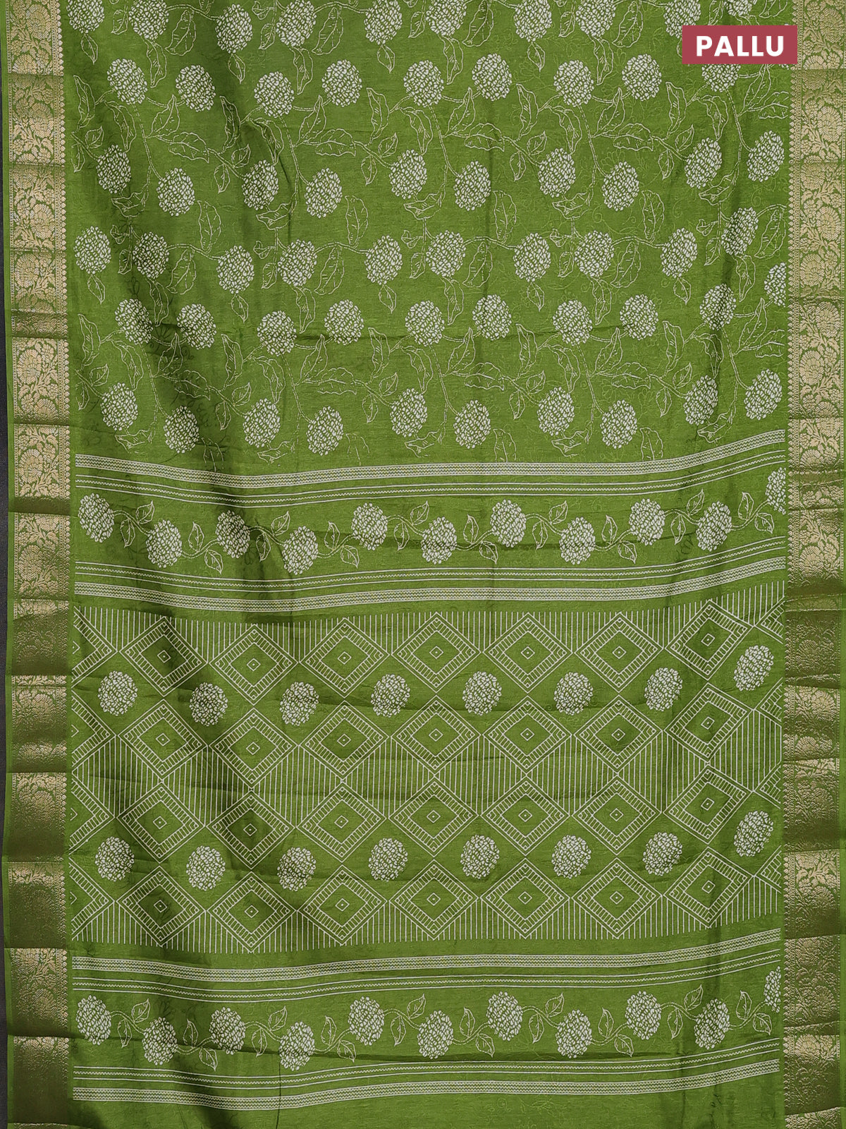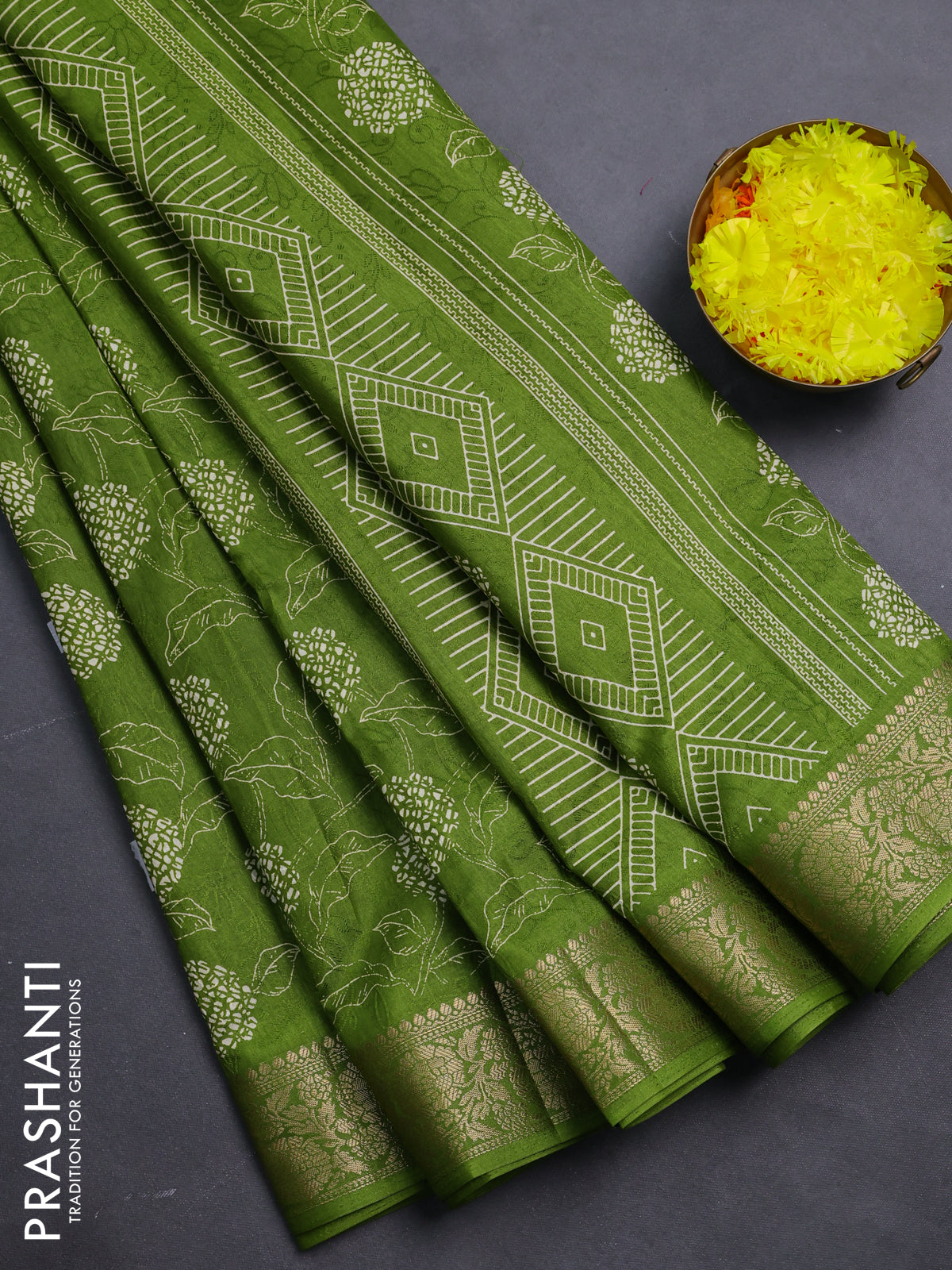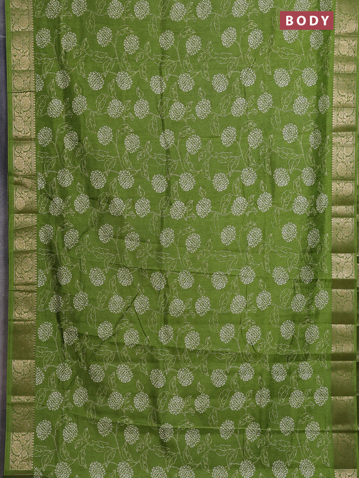 Semi dola saree mehendi green with floral prints & self emboss and zari woven border