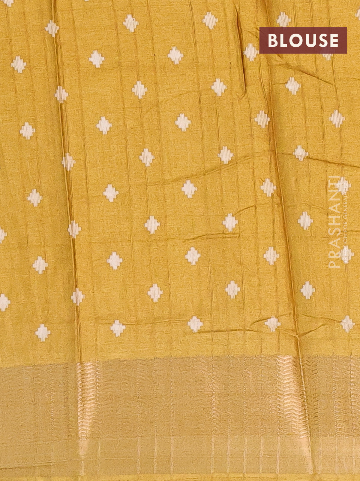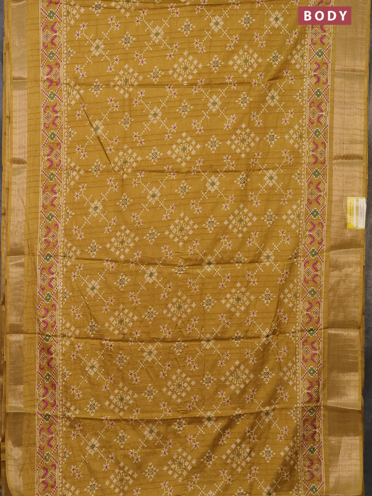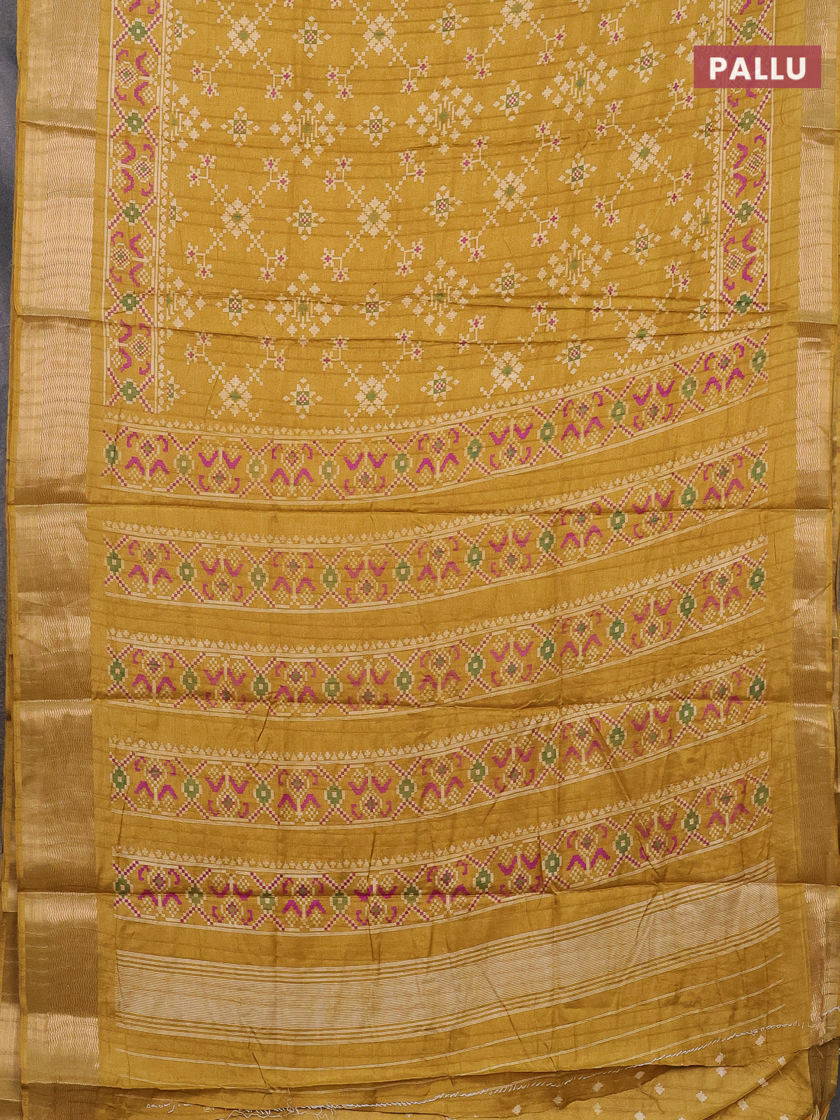 Semi dola saree mustard shade with ikat prints and zari woven border