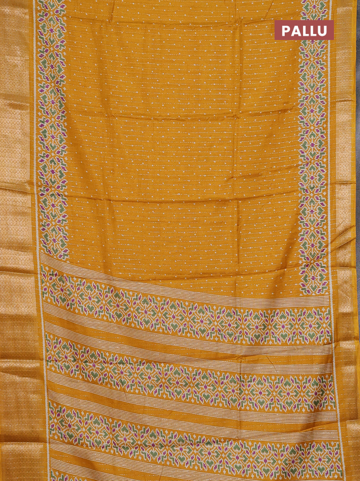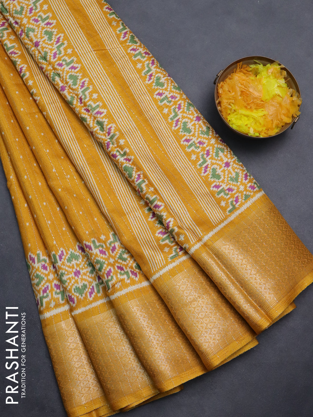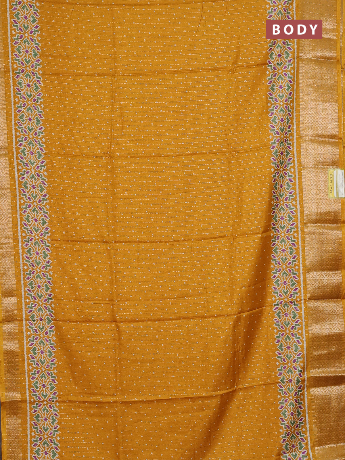 Semi dola saree mustard yellow with allover ikat butta prints & zari weaves and zari woven border