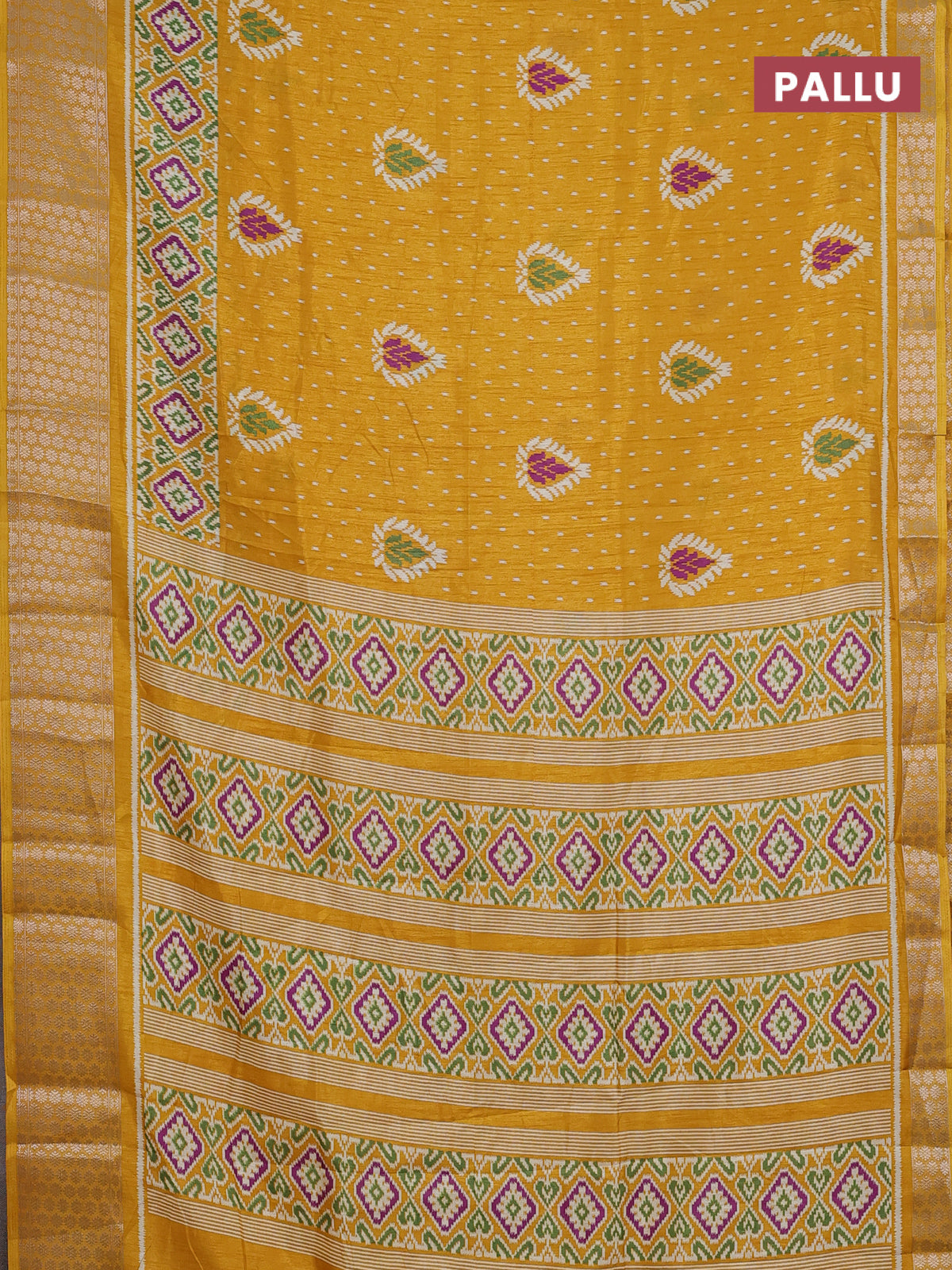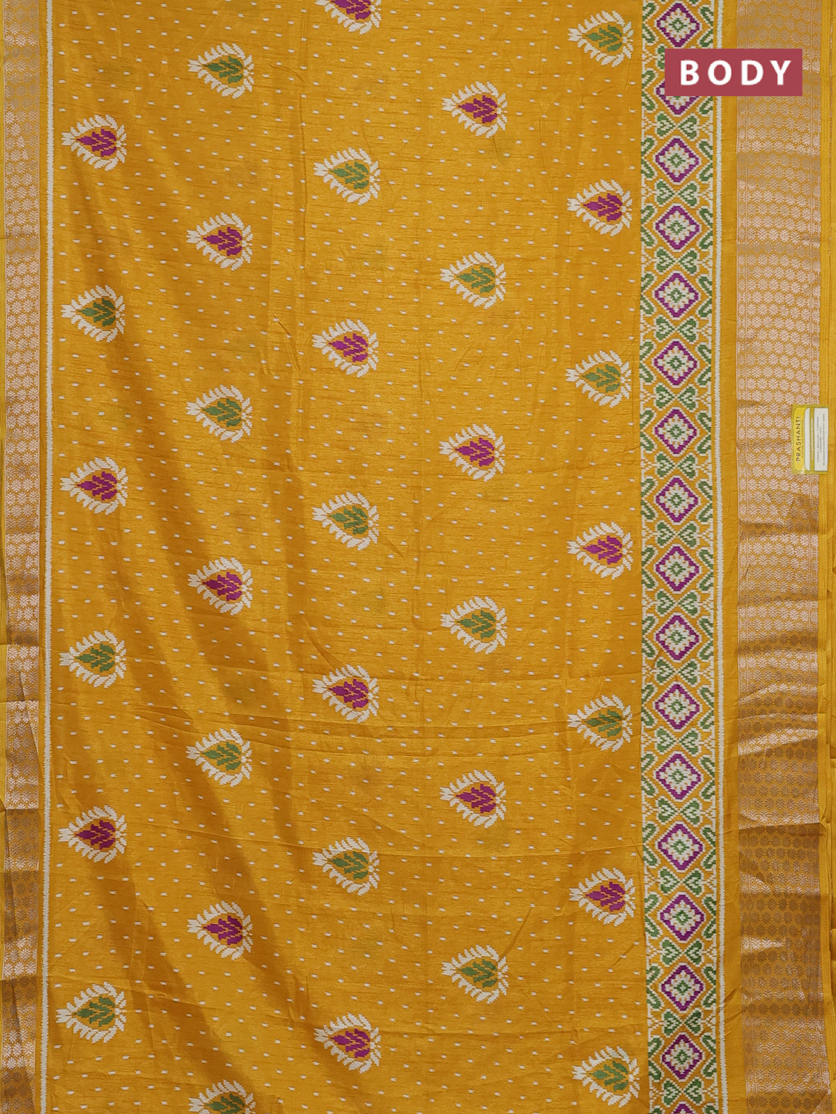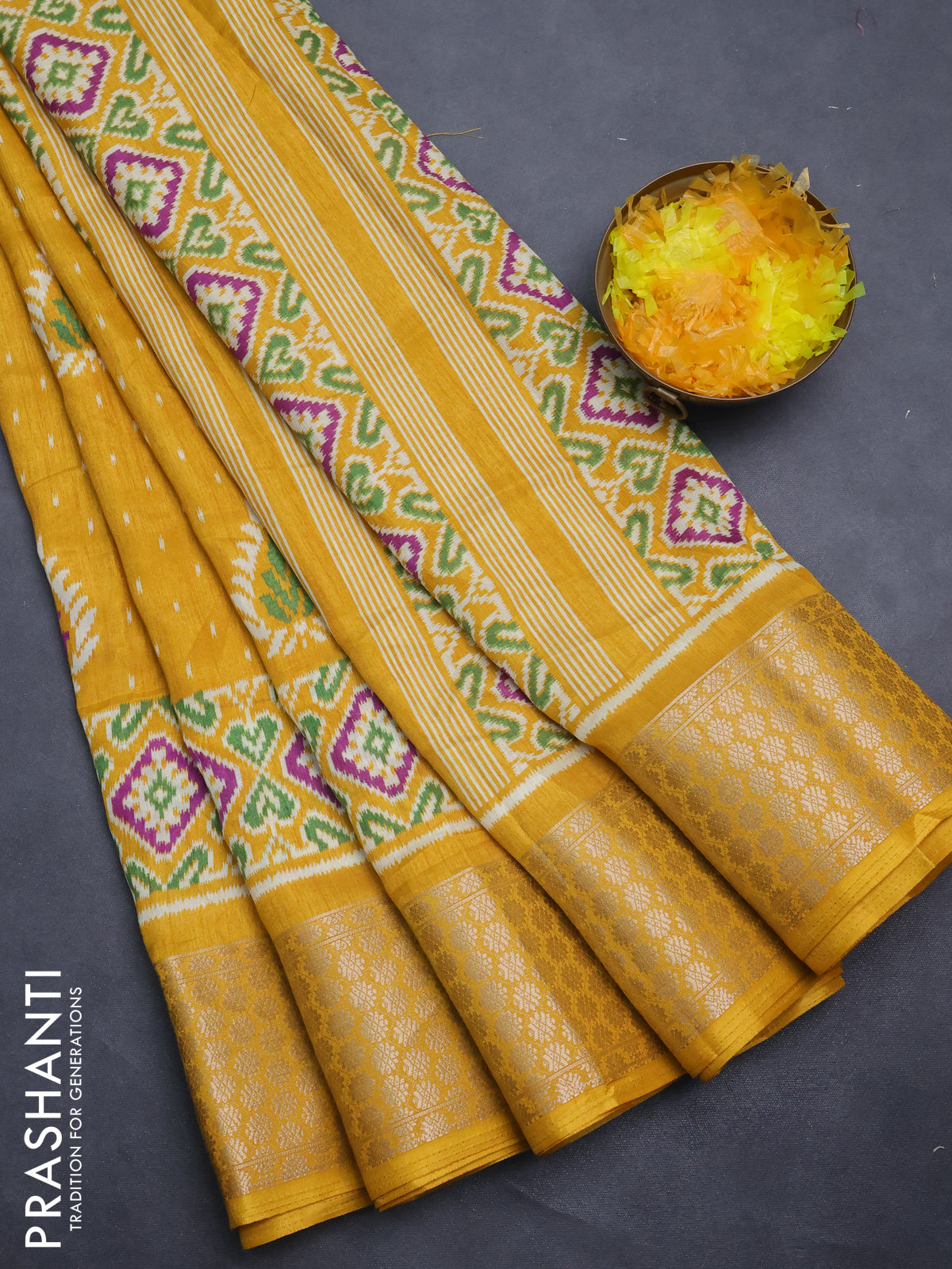 Semi dola saree mustard yellow with allover prints and zari woven border