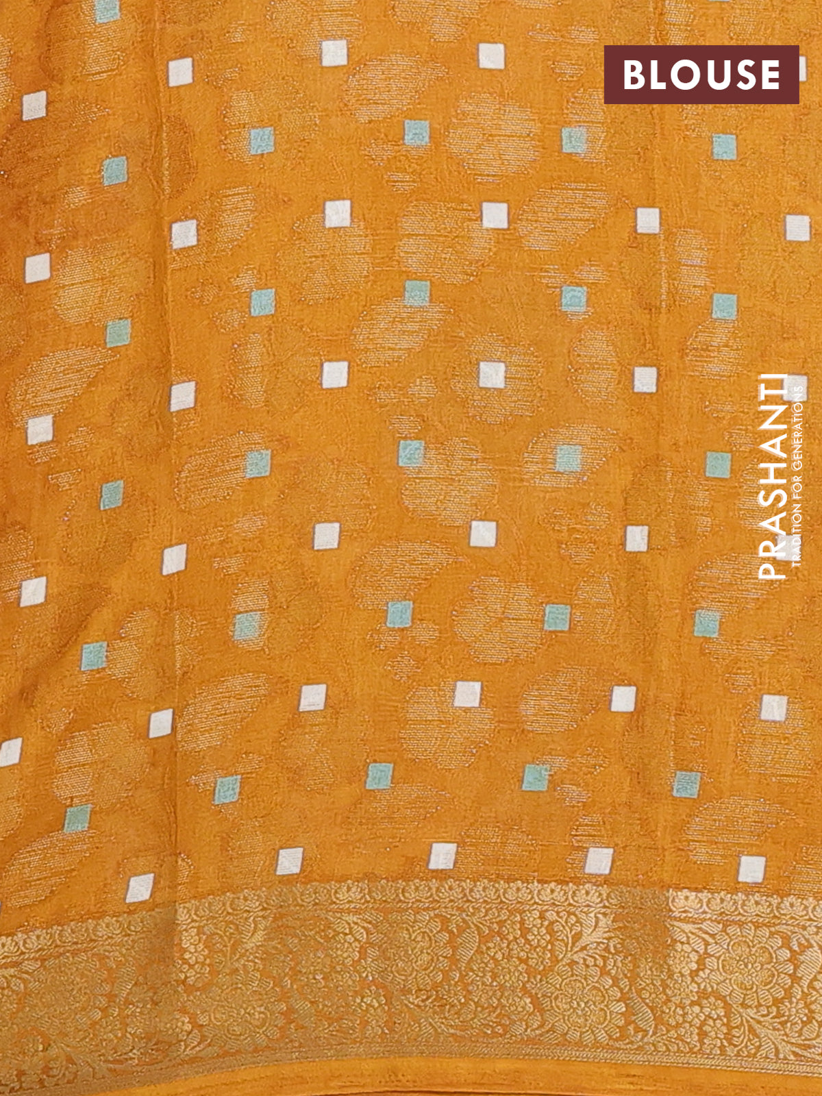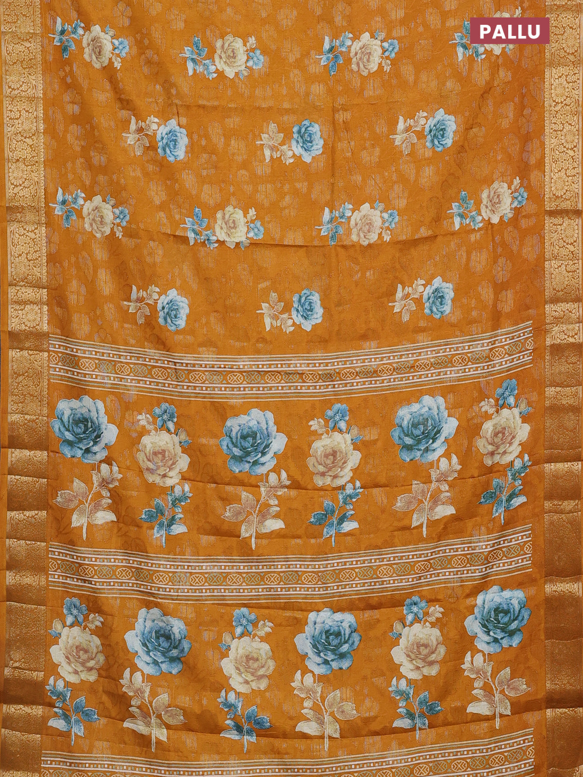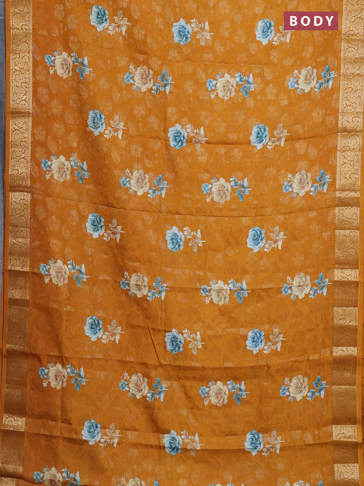 Semi dola saree mustard yellow with floral prints & zari weaves and zari woven border