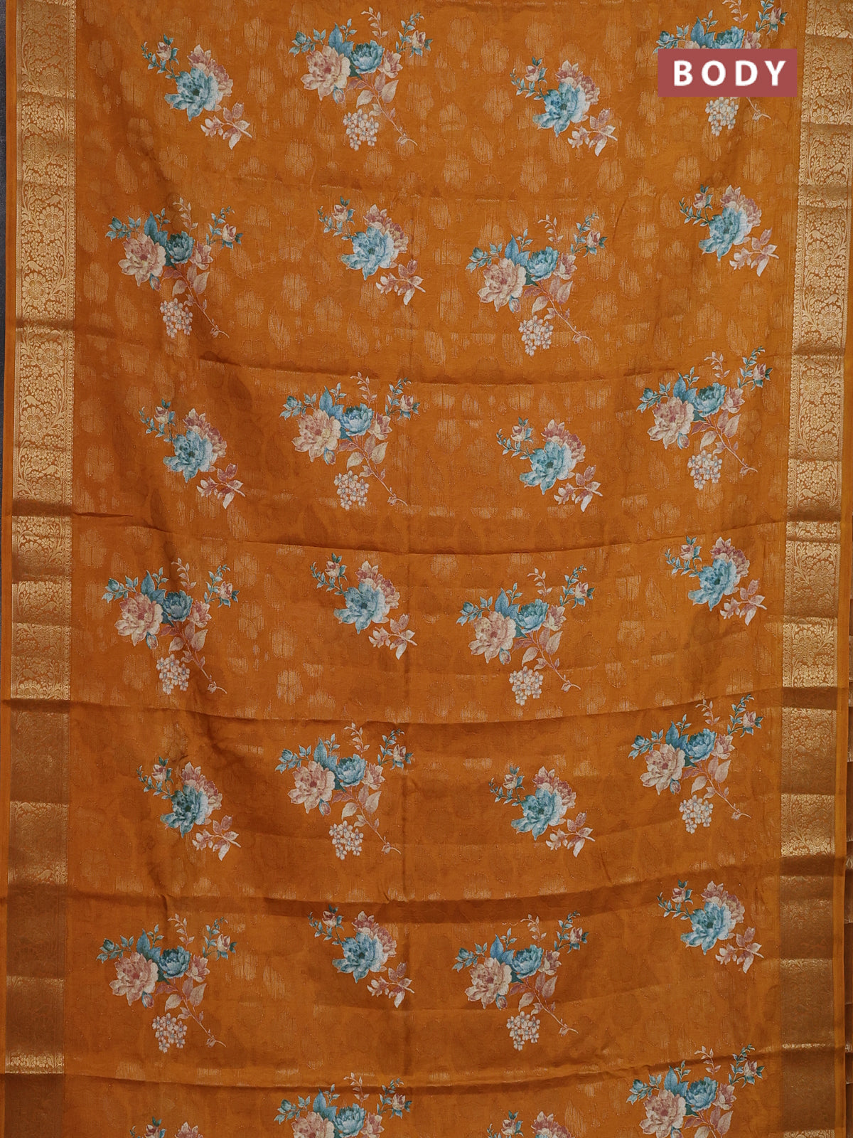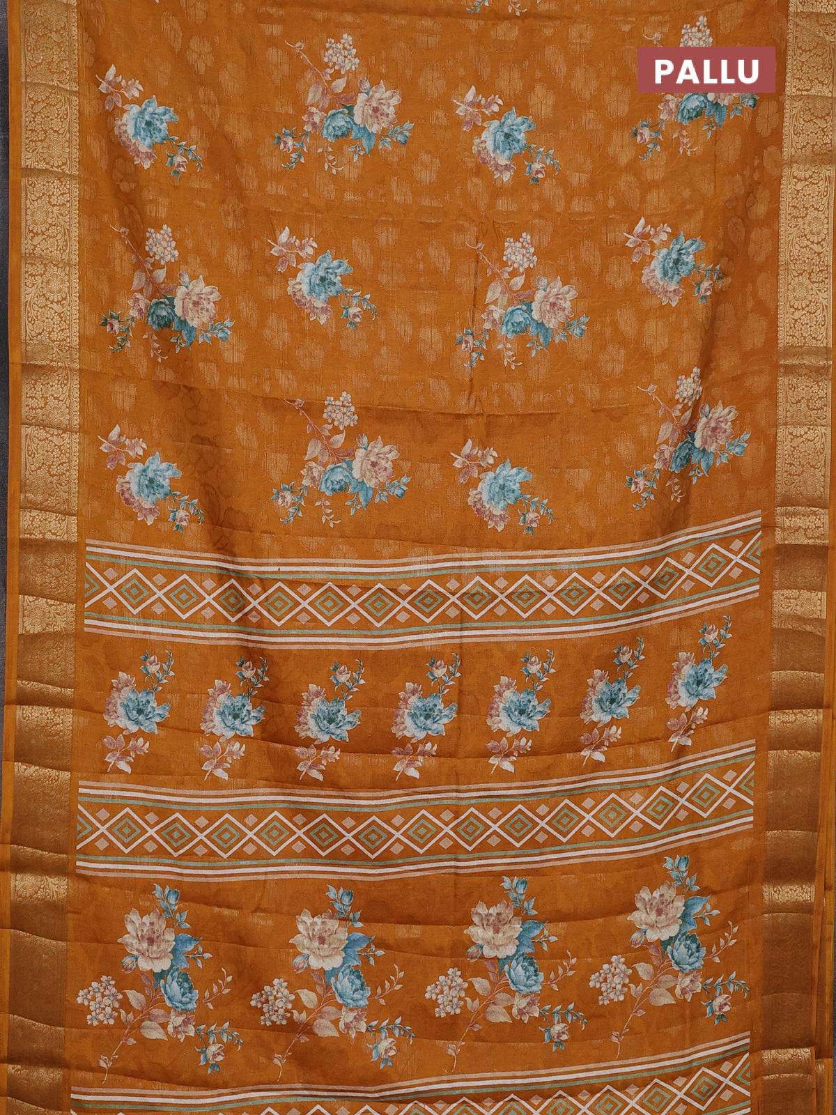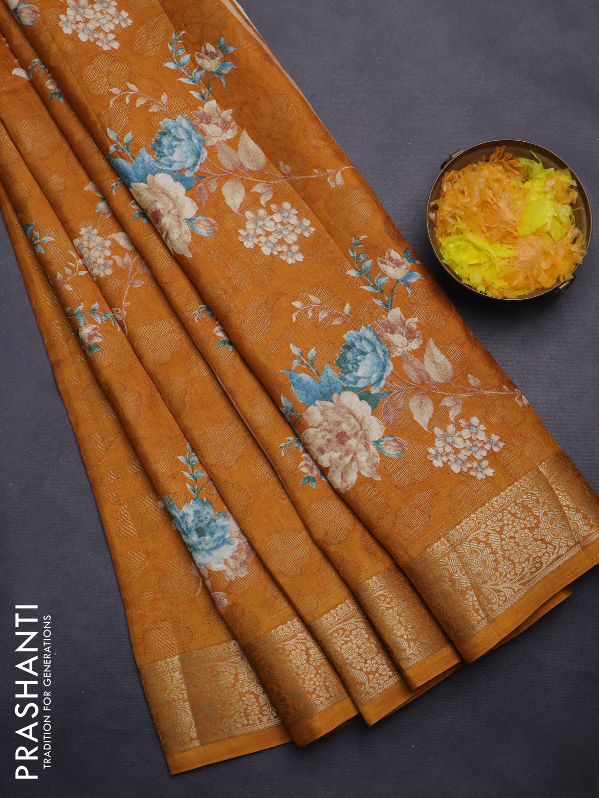 Semi dola saree mustard yellow with floral prints & zari weaves and zari woven border