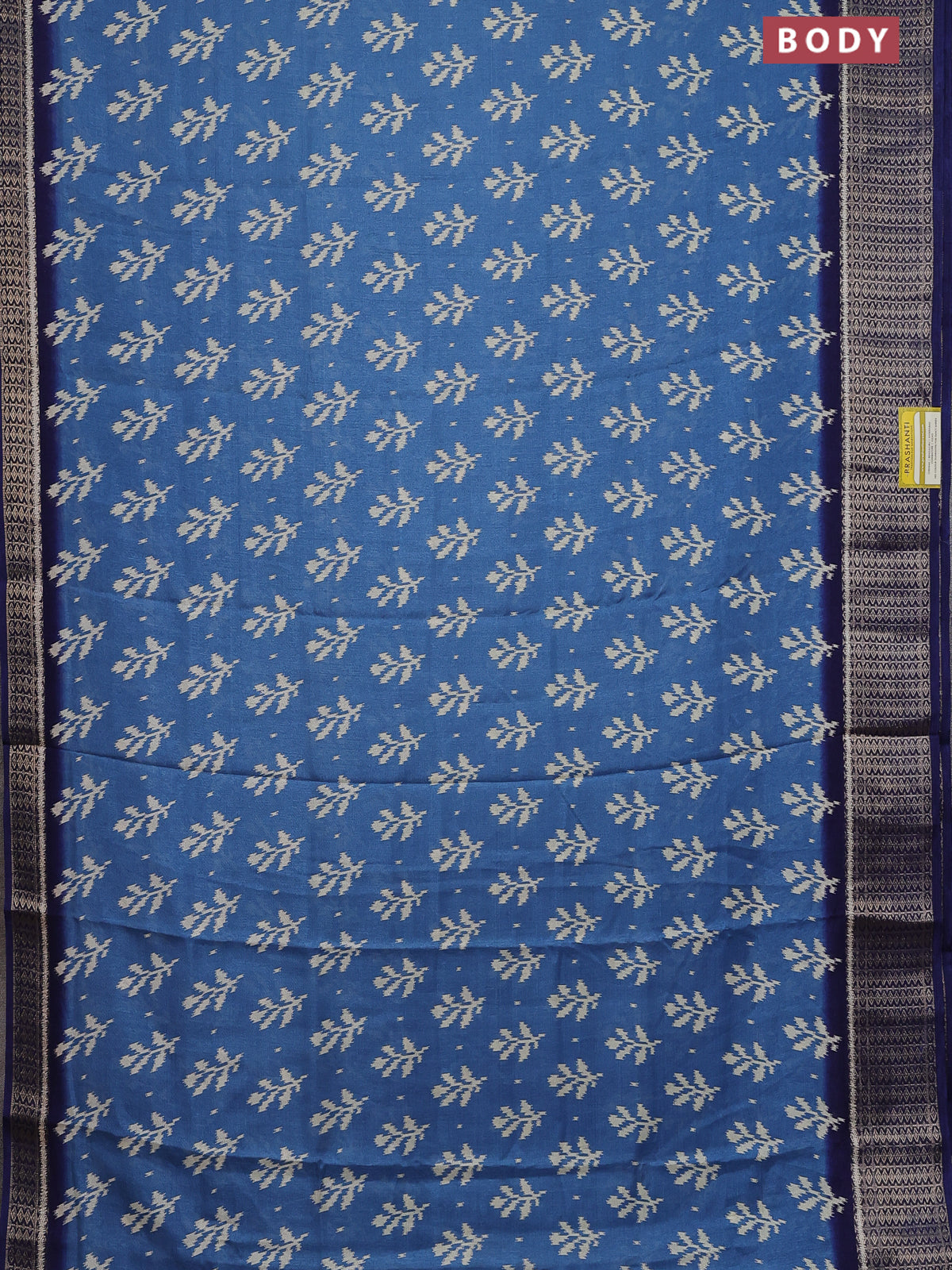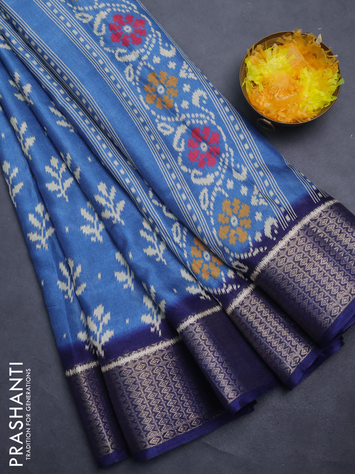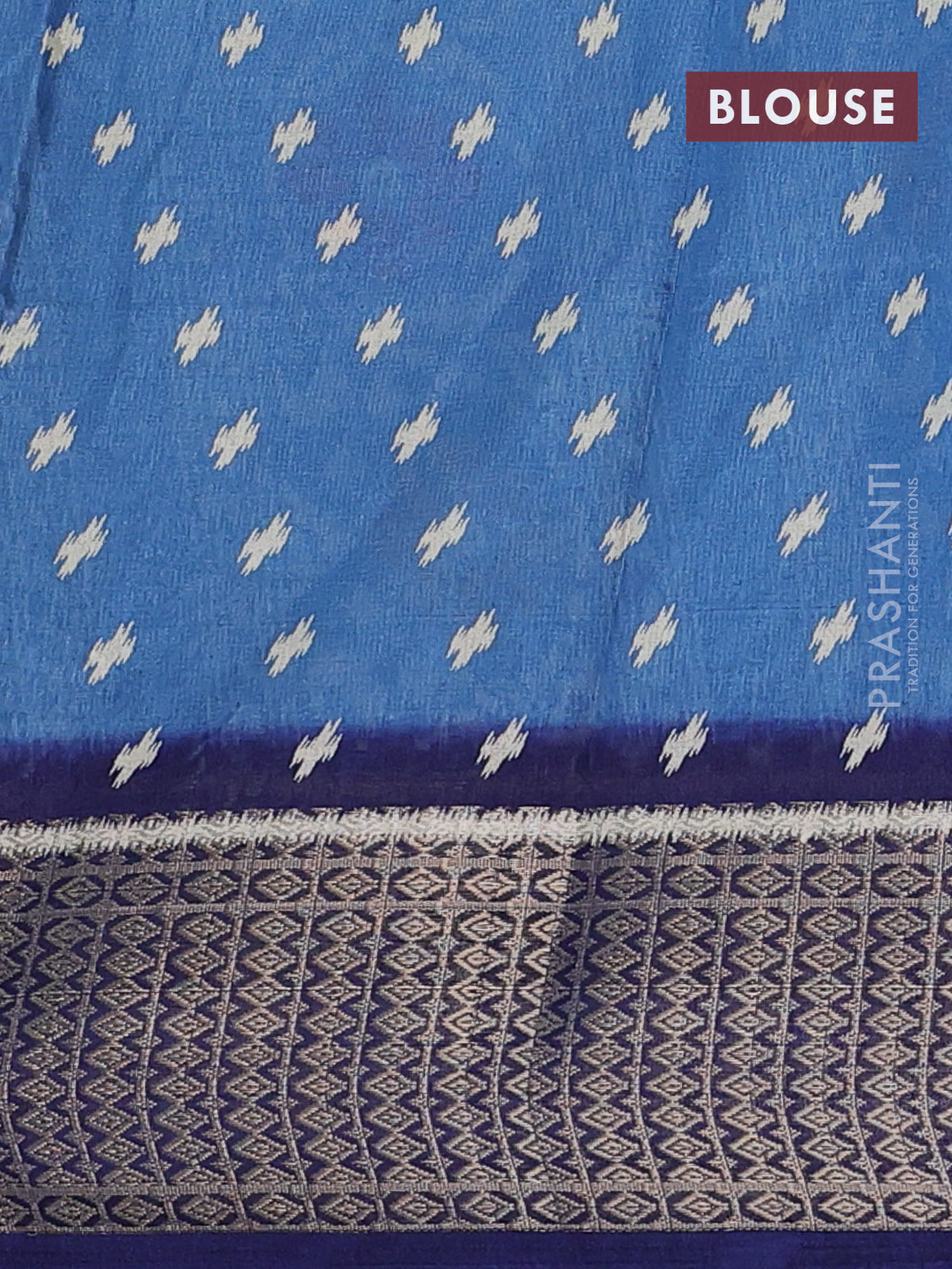 Semi dola saree pastel blue and dark blue with allover ikat butta prints and zari woven border