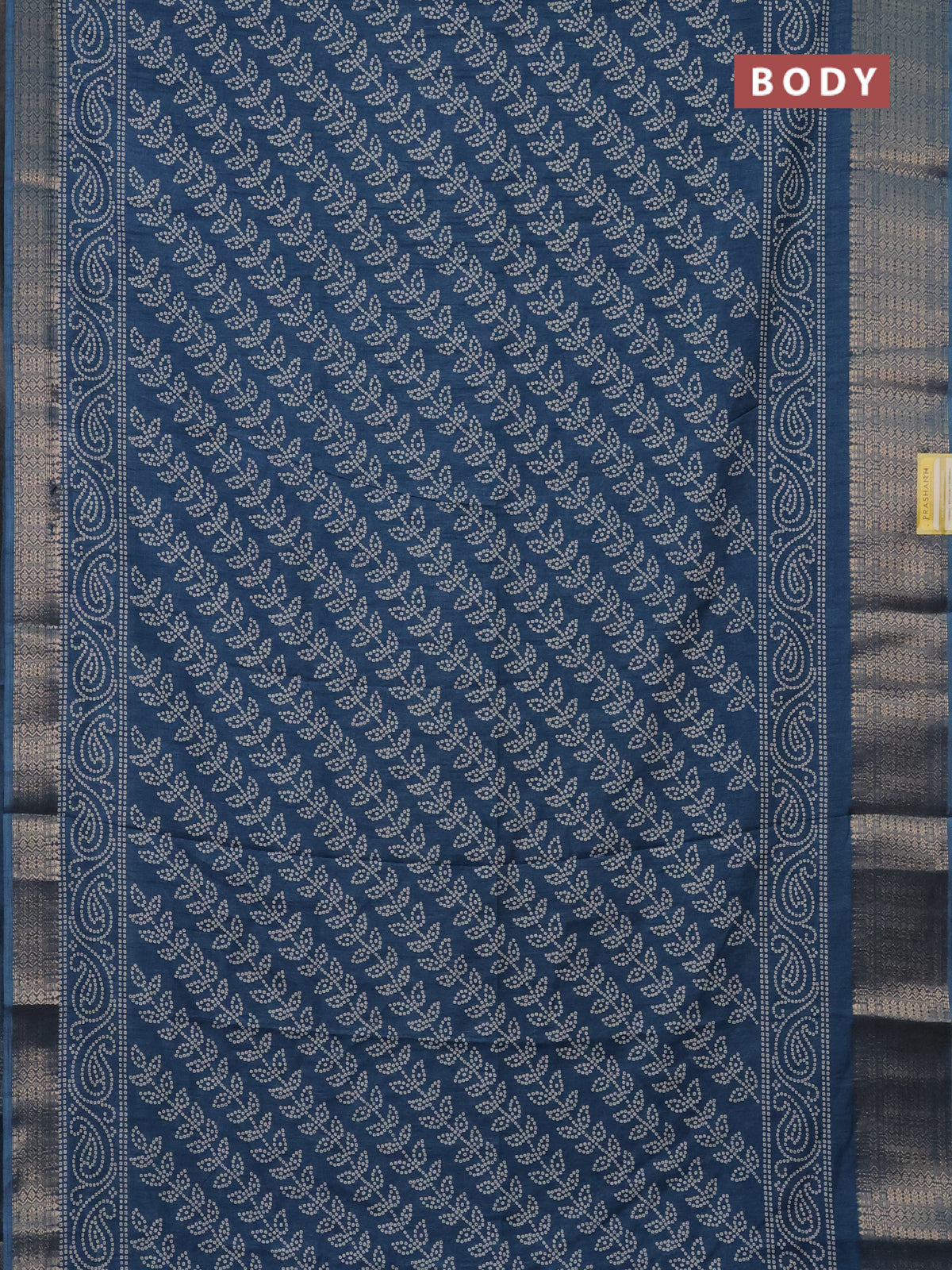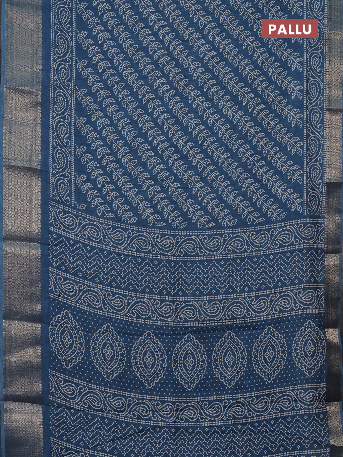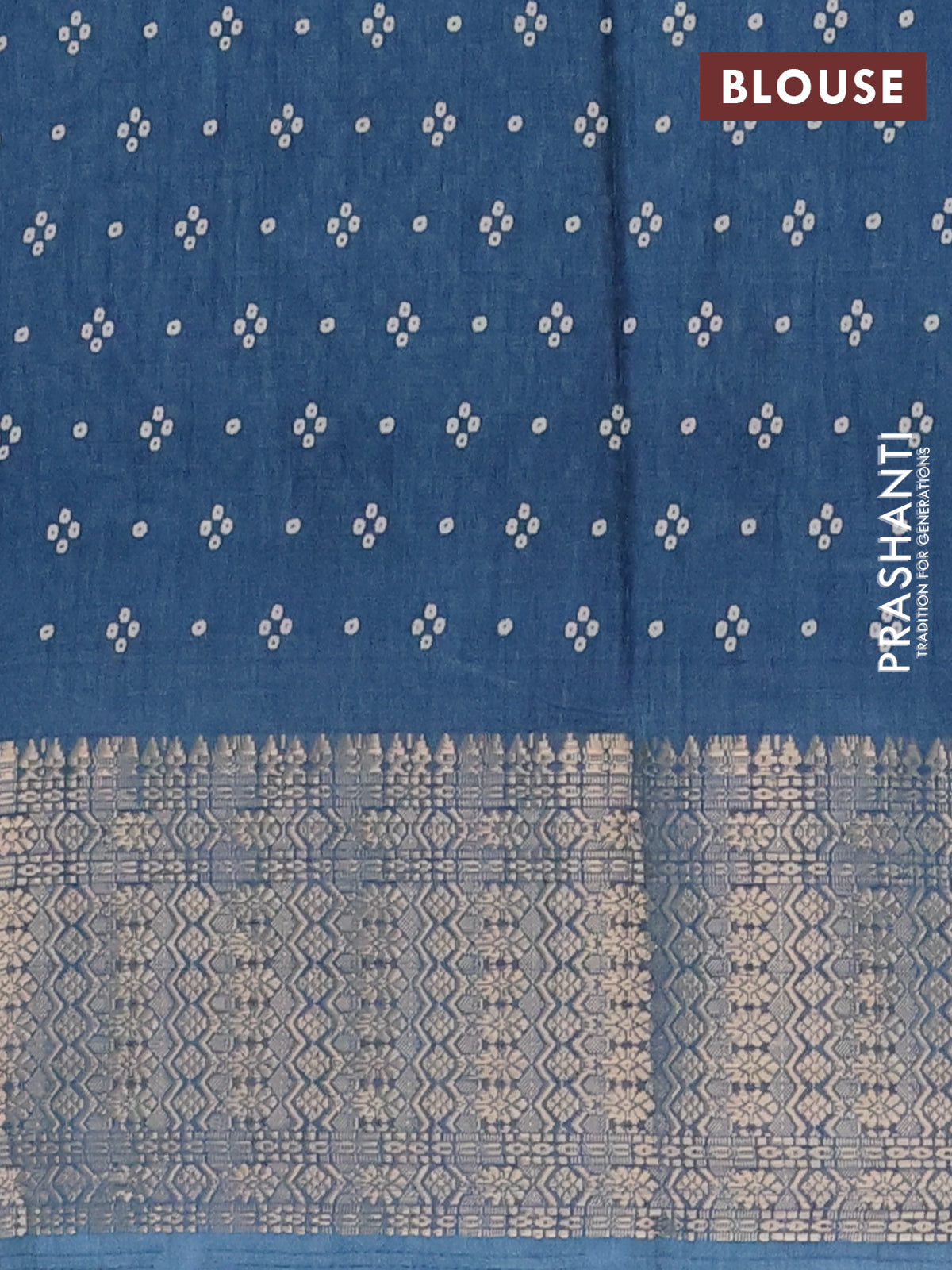 Semi dola saree peacock blue shade with allover bandhani prints and zari woven border