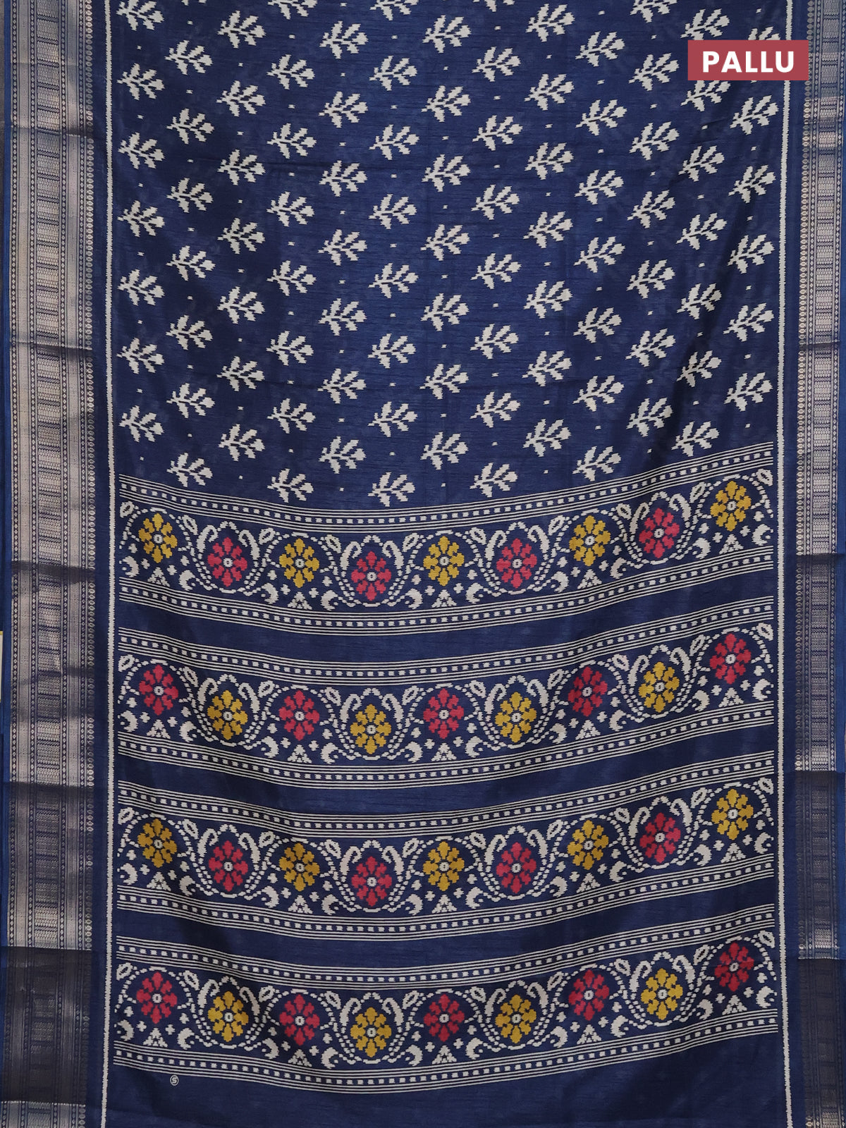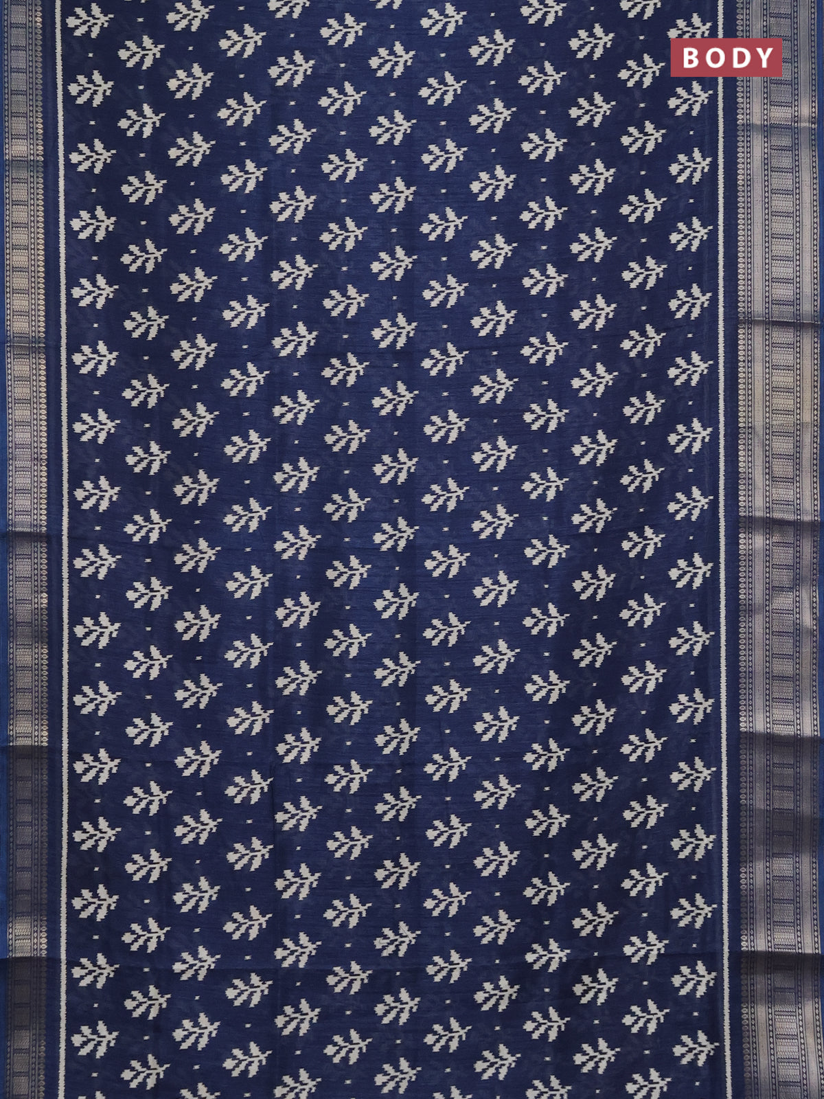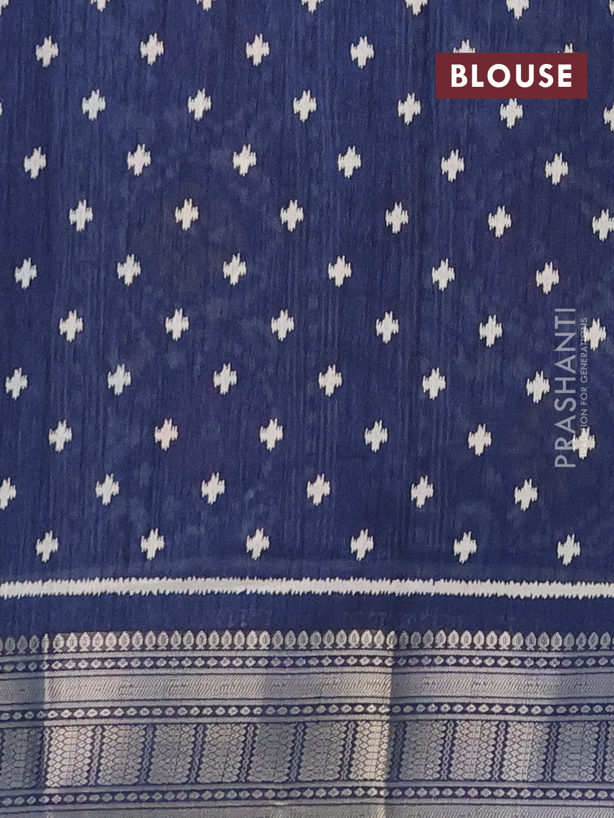 Semi dola saree peacock blue with allover ikat butta prints and zari woven border