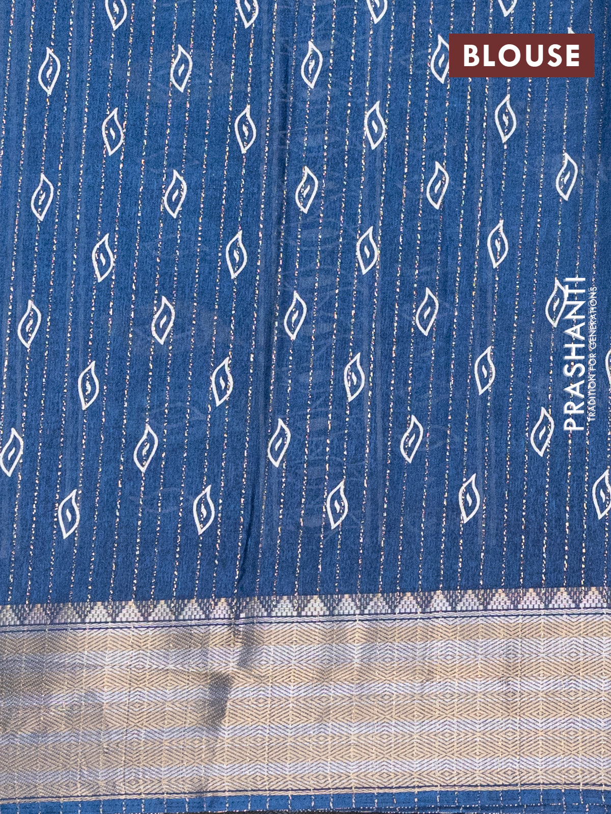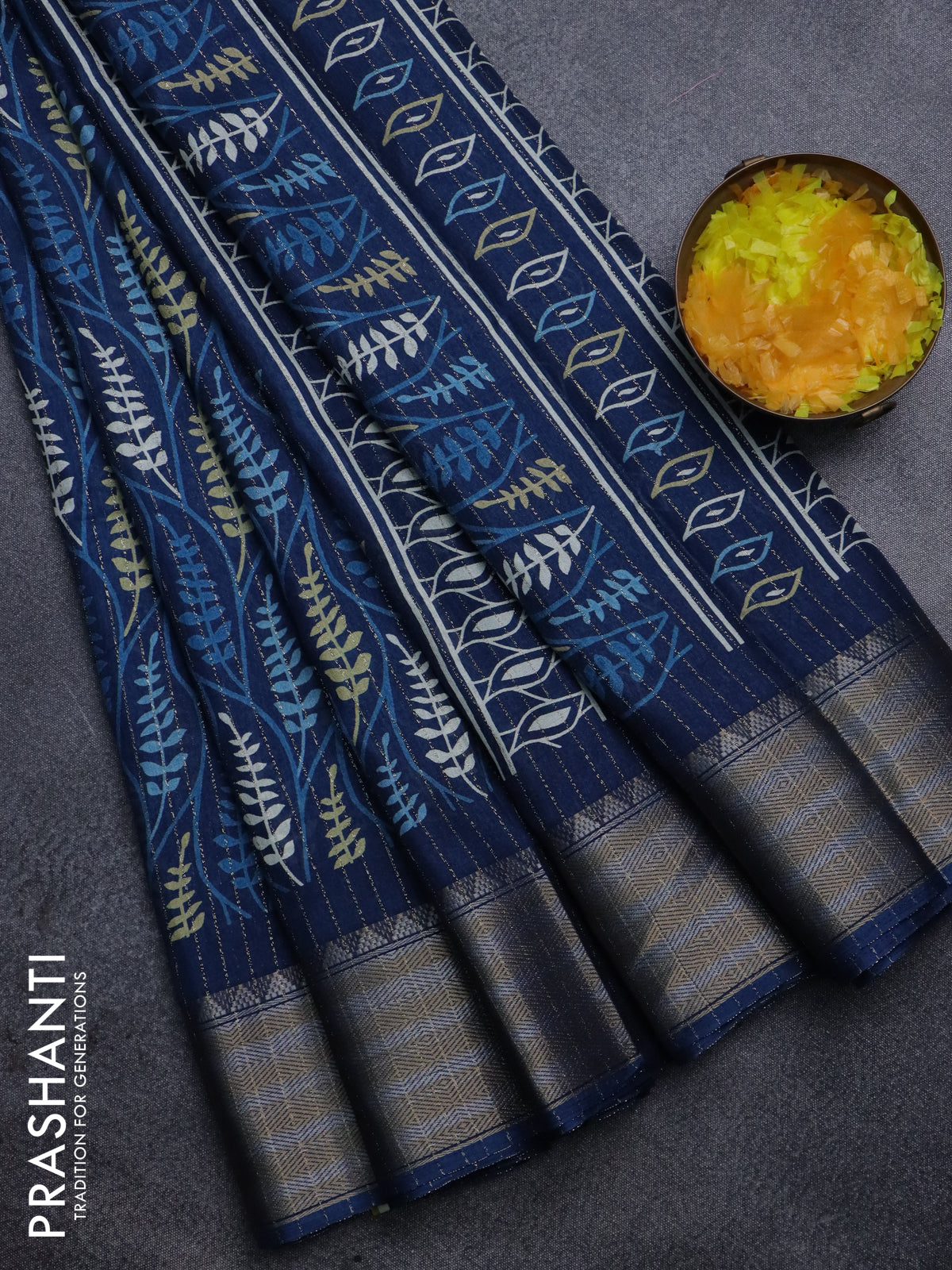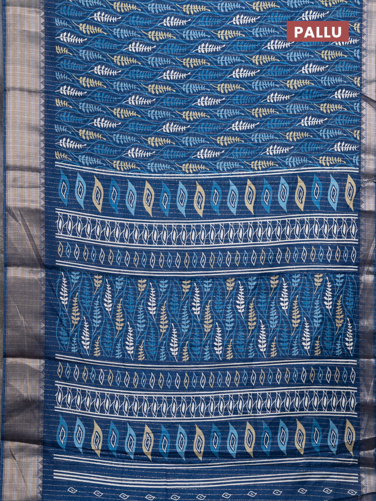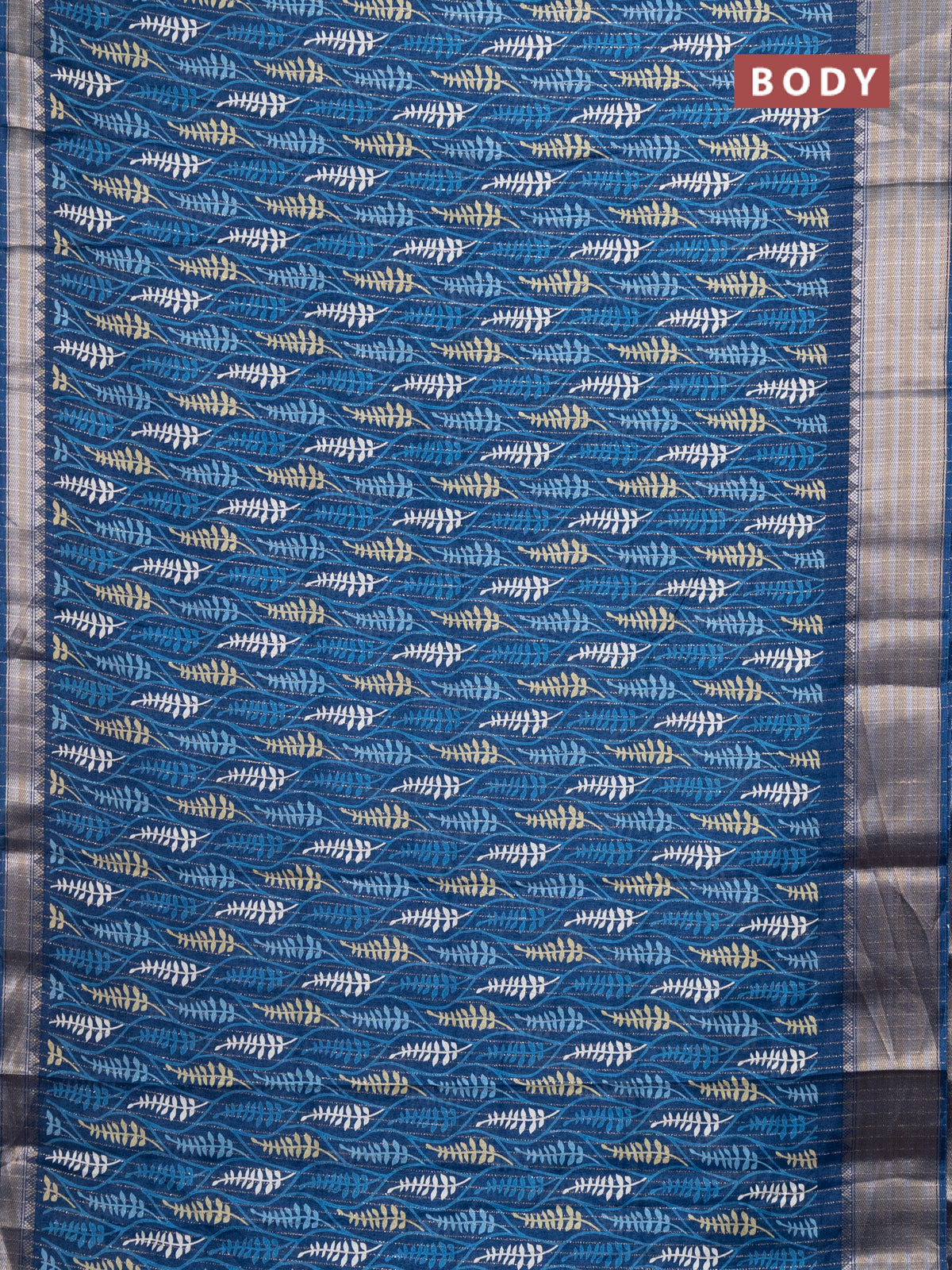 Semi dola saree peacock blue with allover zari weaves & leaf prints and zari woven border
