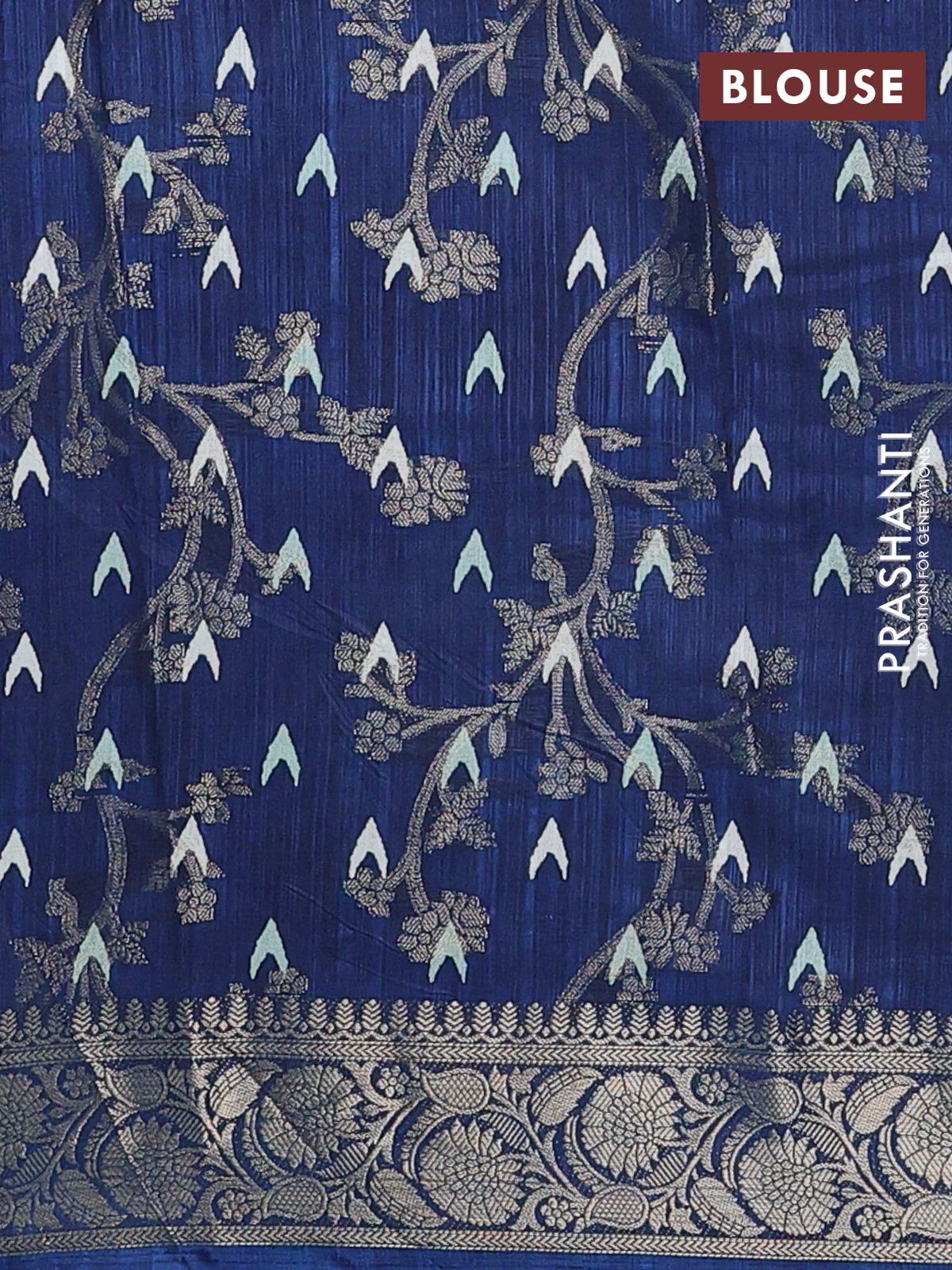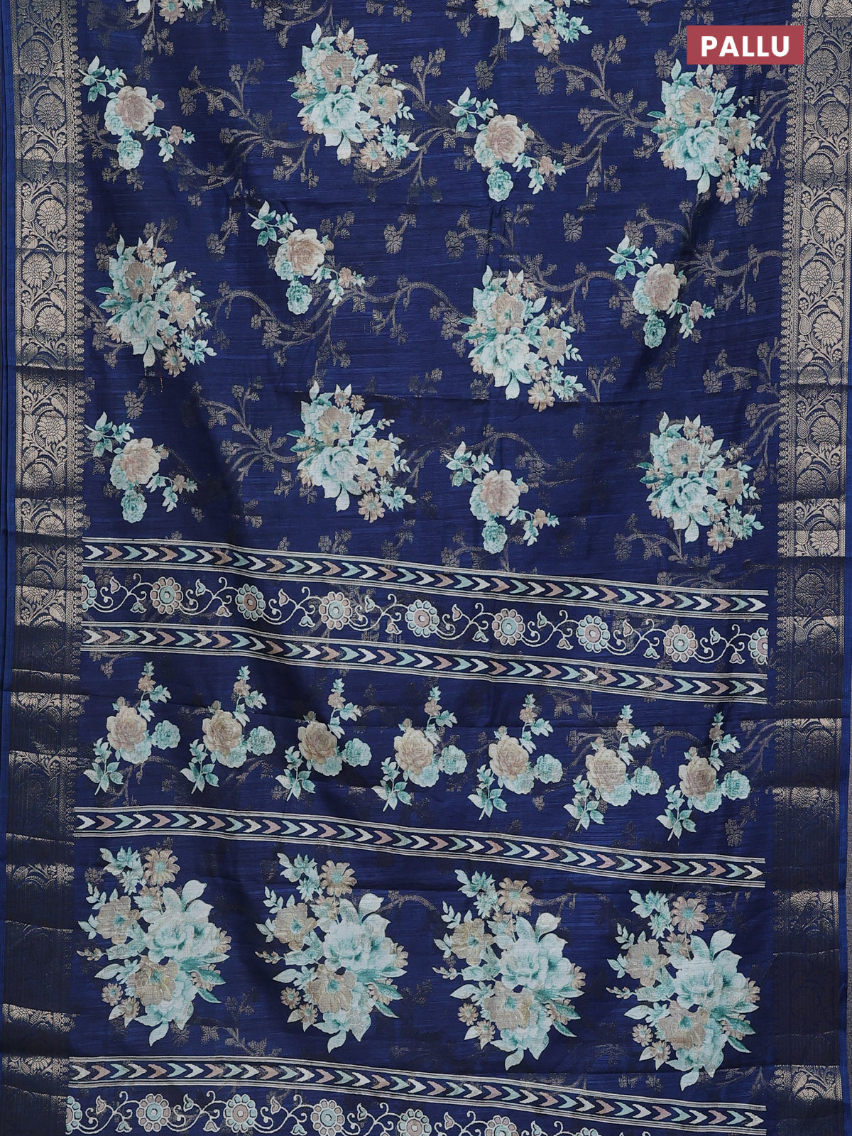 Semi dola saree peacock blue with floral prints & zari weaves and zari woven border