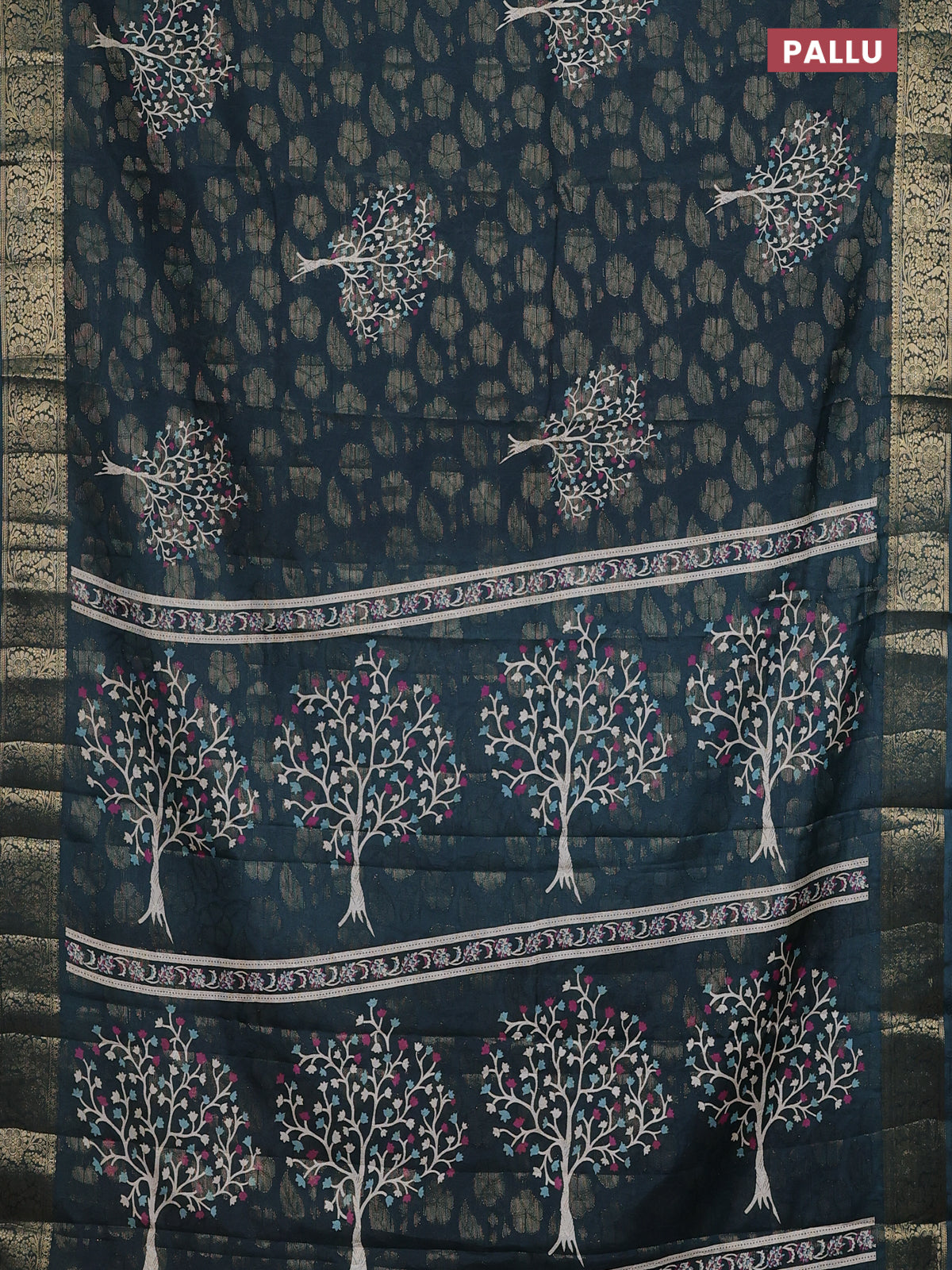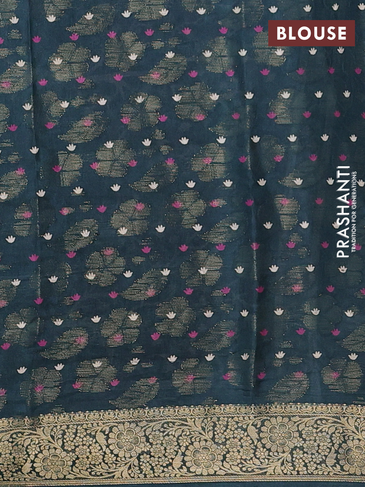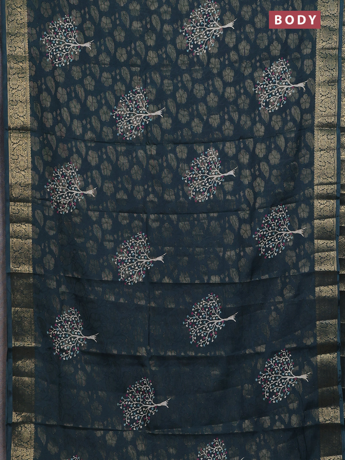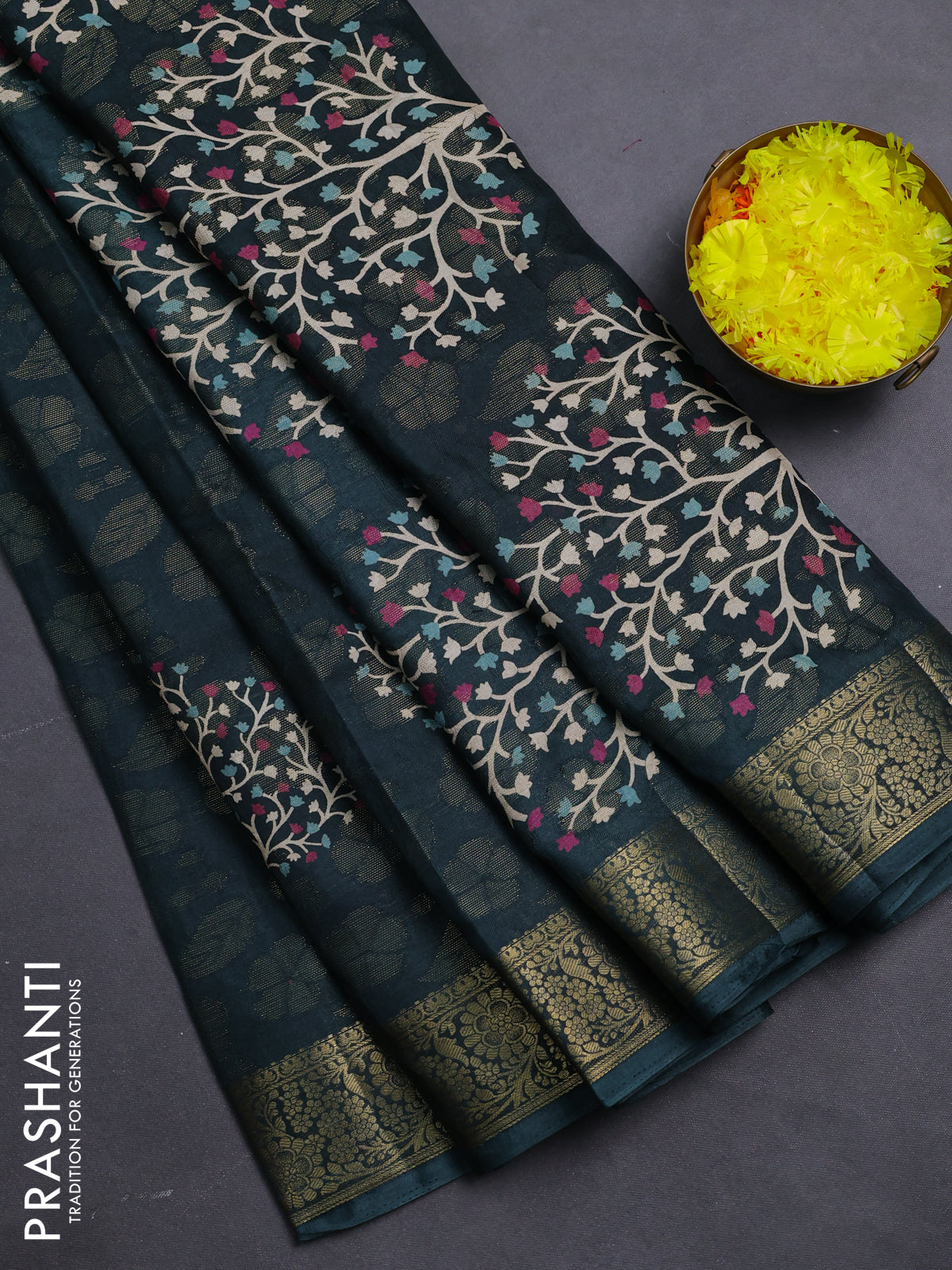 Semi dola saree peacock green with butta prints & zari weaves and zari woven border