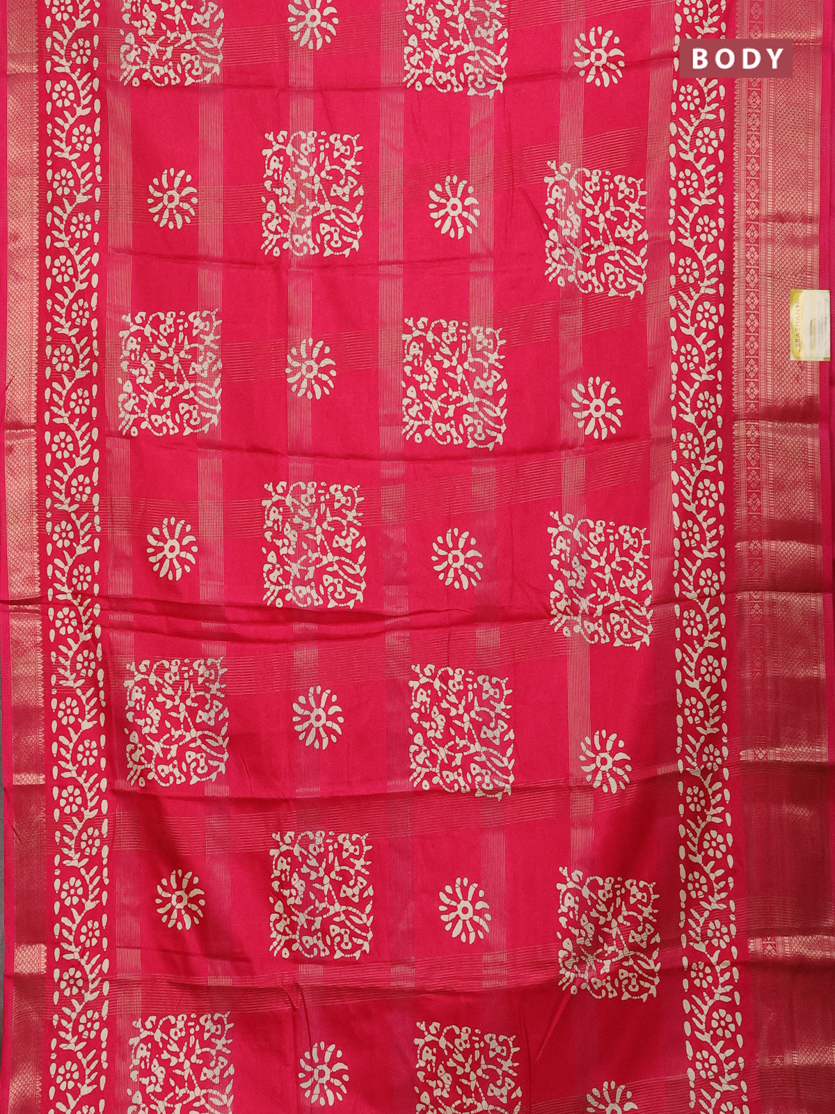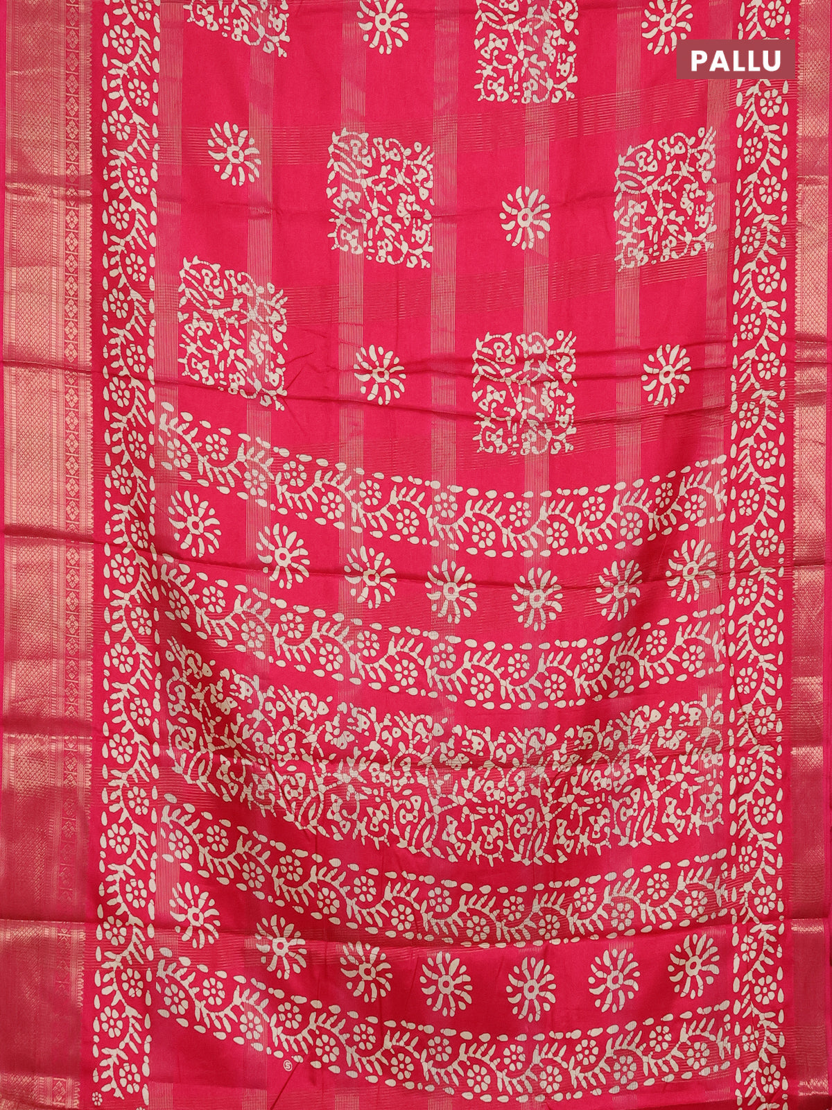 Semi dola saree pink with allover zari weaves & batik prints and zari woven border