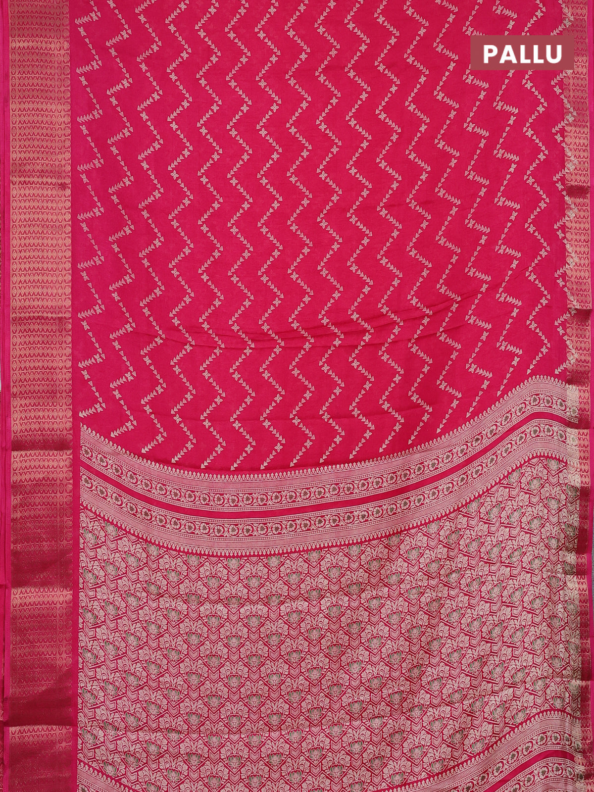 Semi dola saree pink with allover zig zag prints and zari woven border