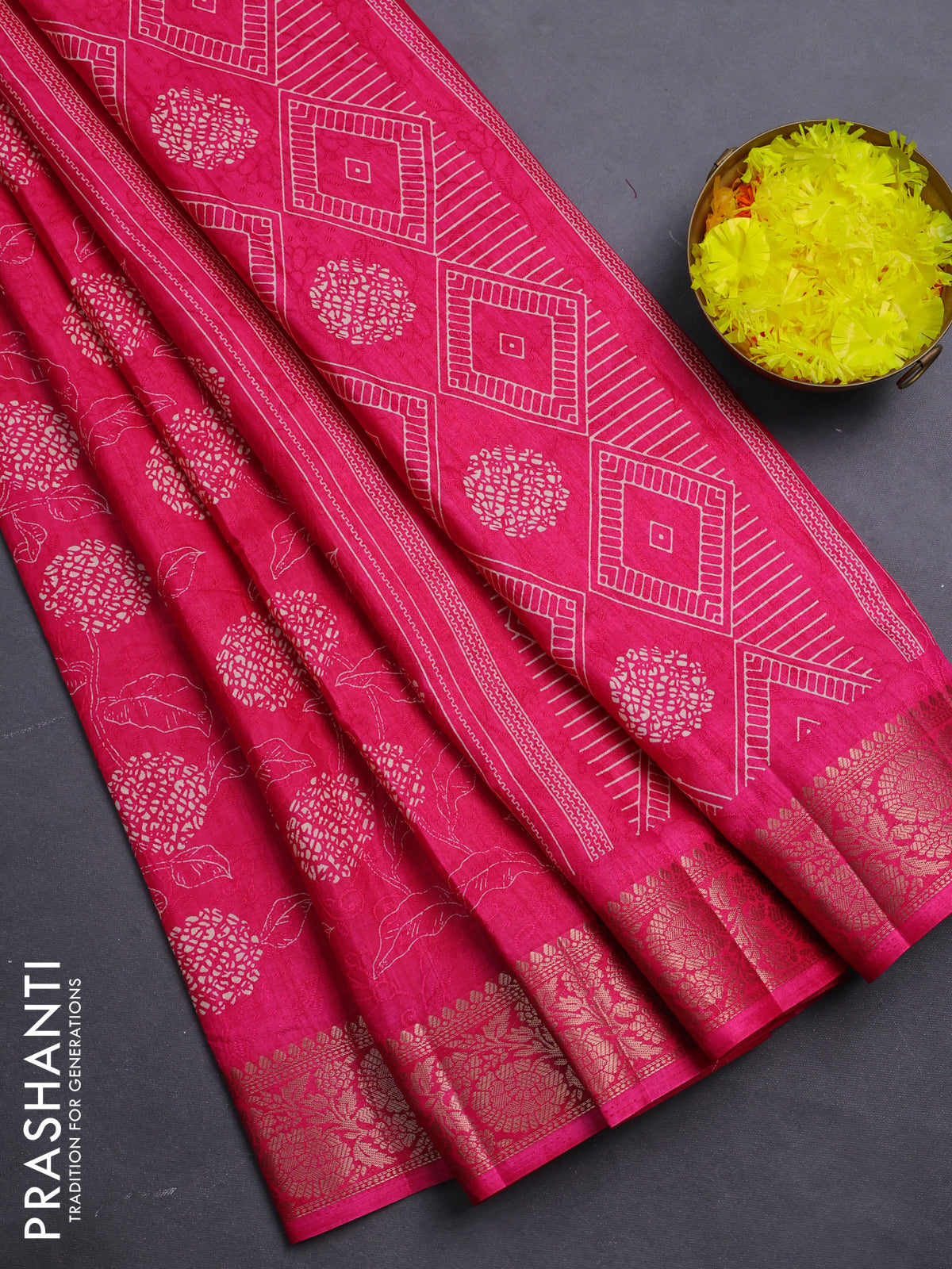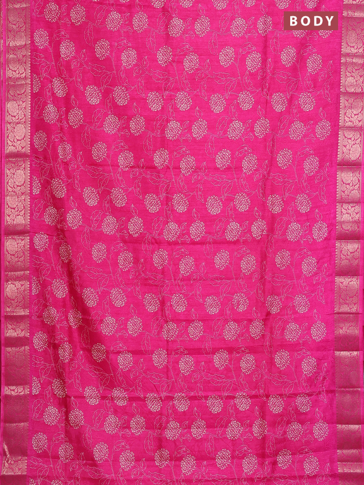 Semi dola saree pink with floral prints & self emboss and zari woven border