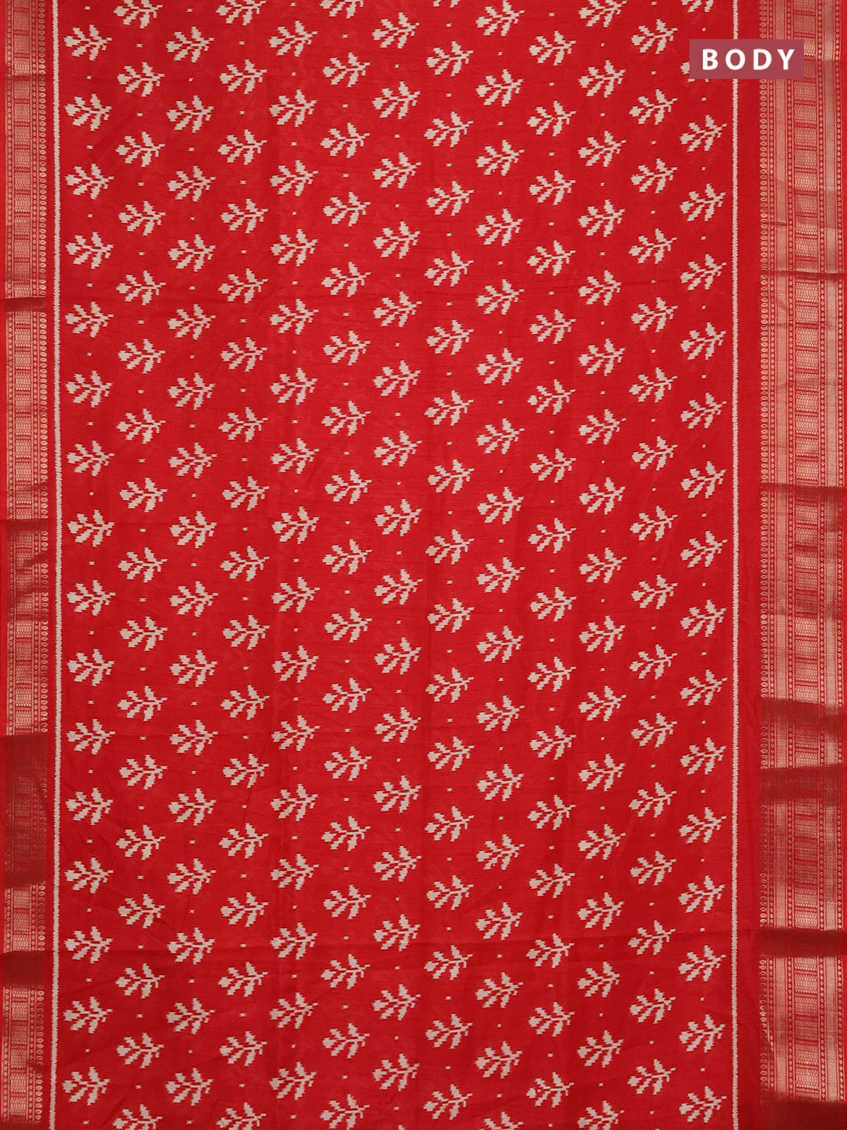 Semi dola saree red with allover ikat butta prints and zari woven border