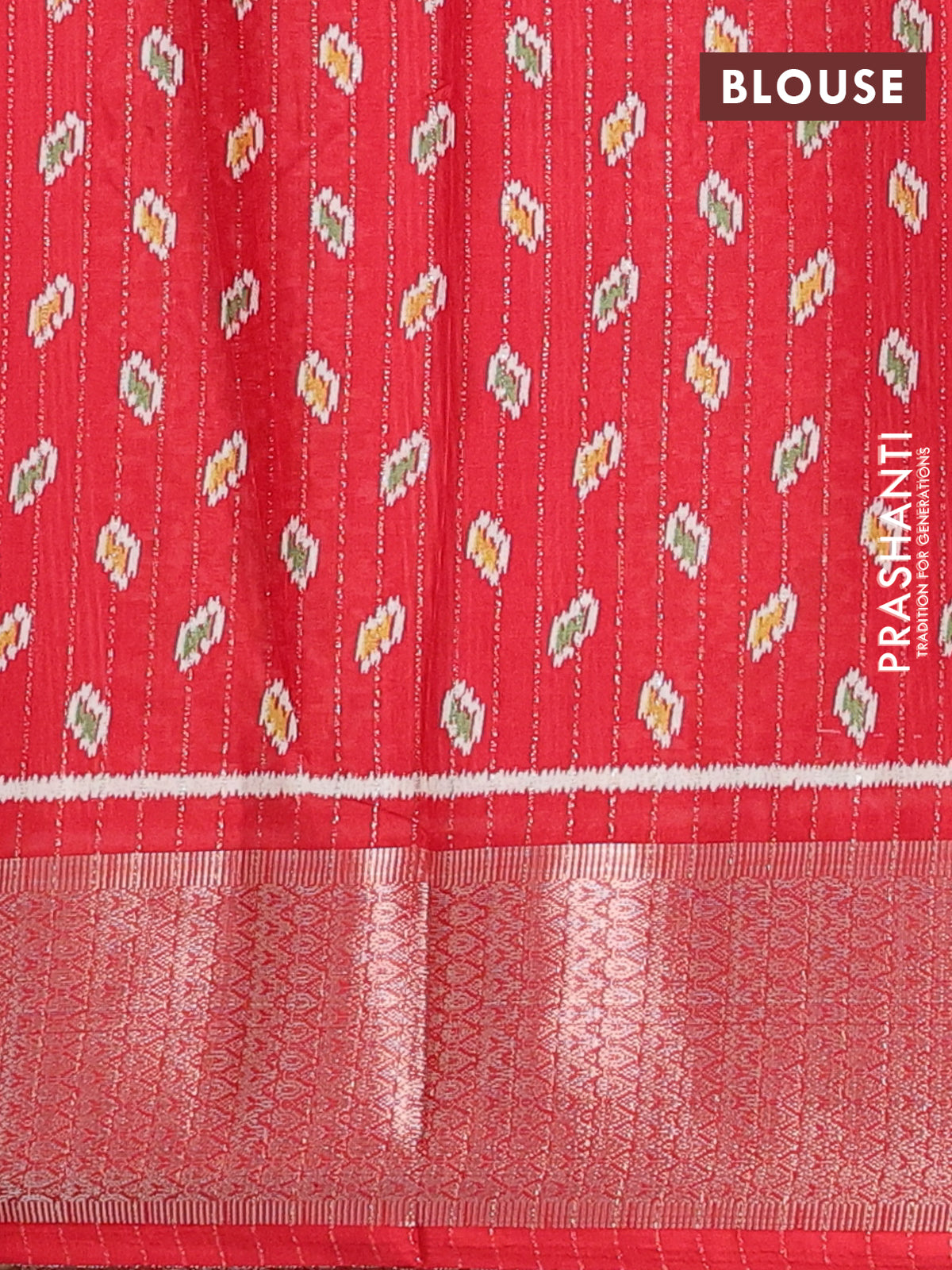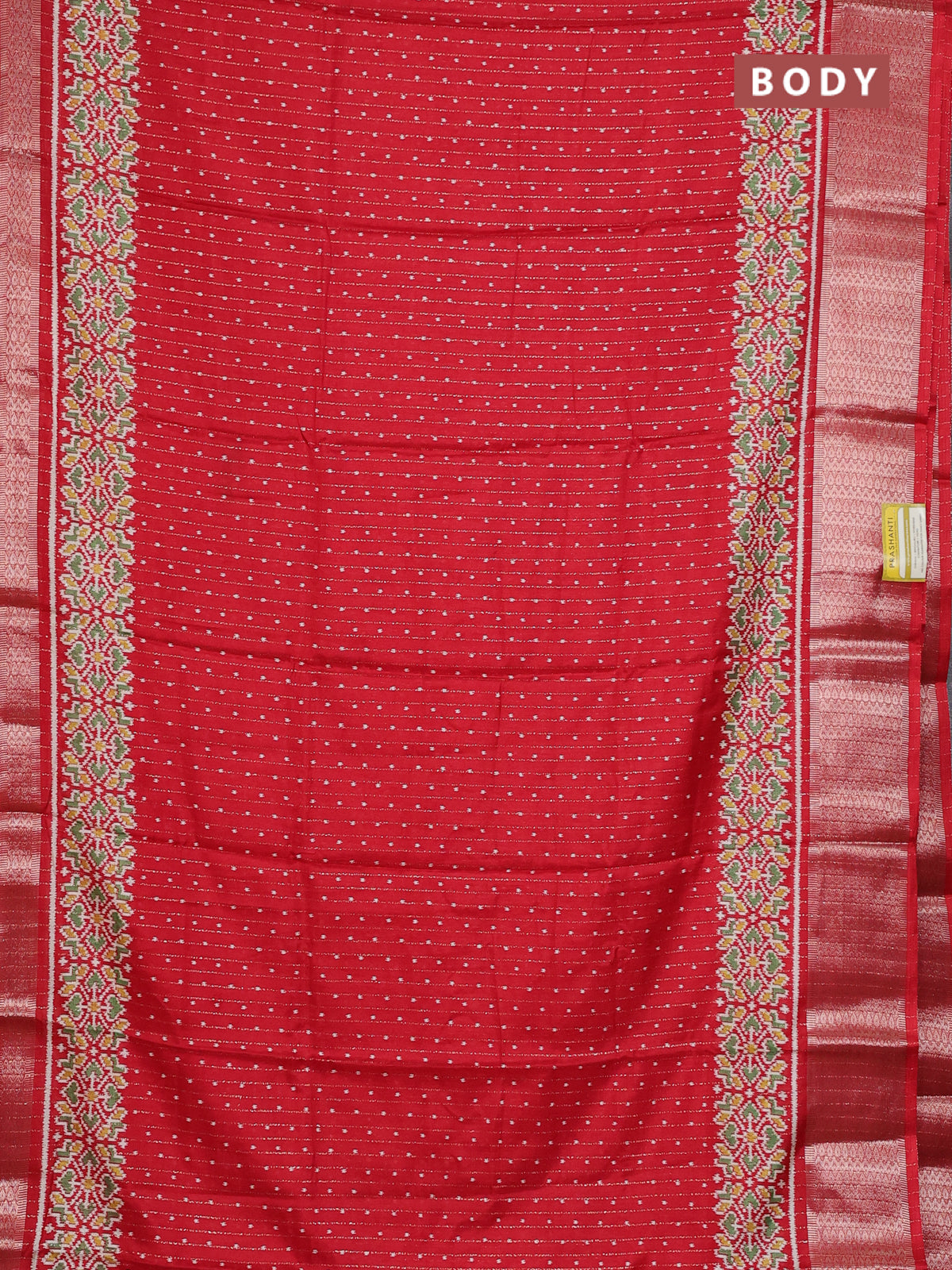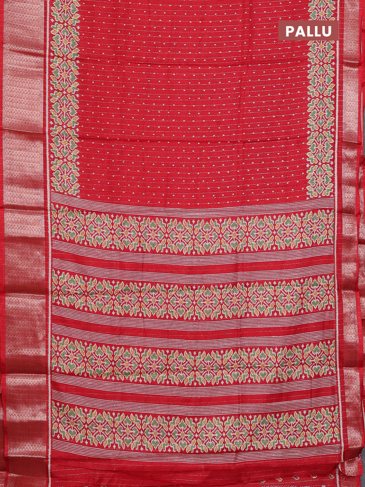 Semi dola saree red with allover ikat butta prints & zari weaves and zari woven border