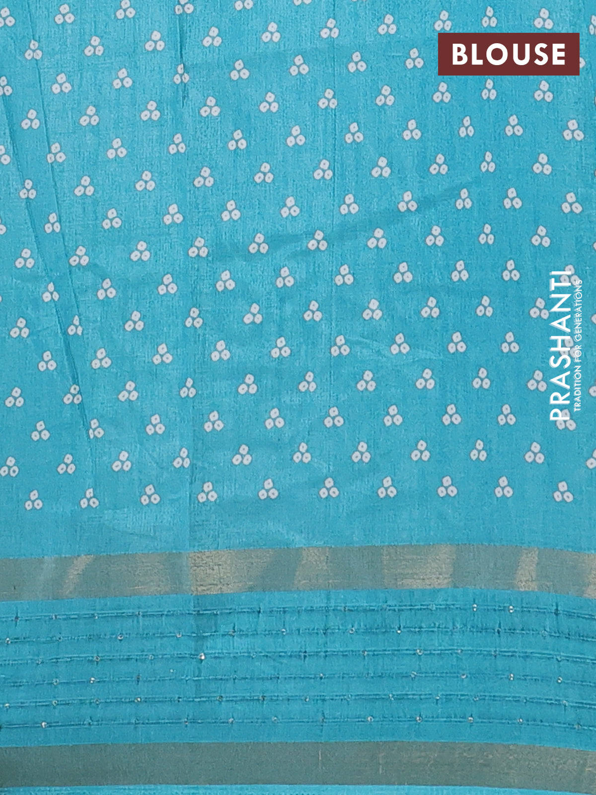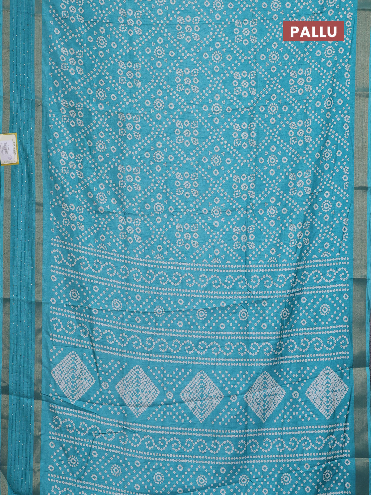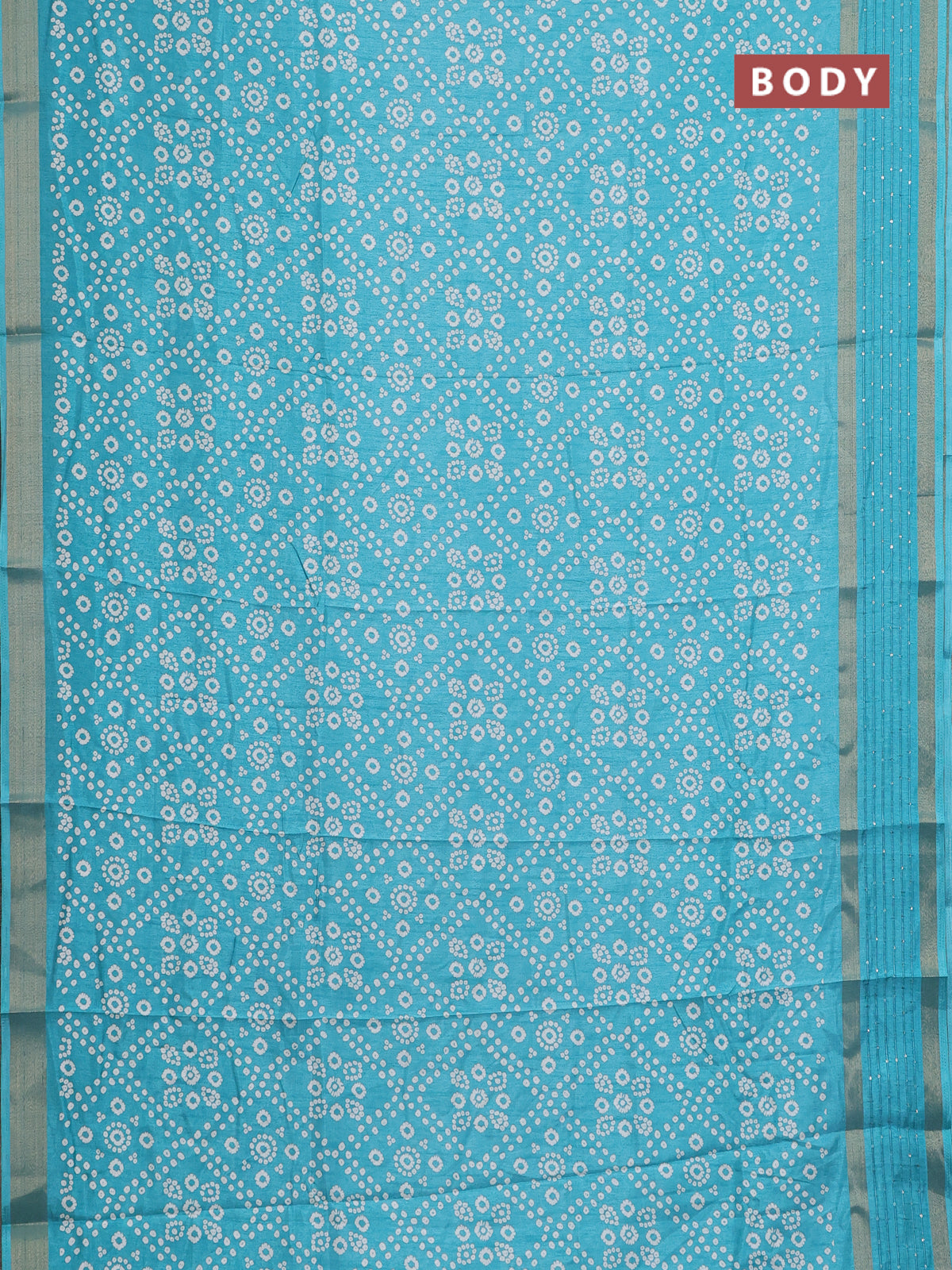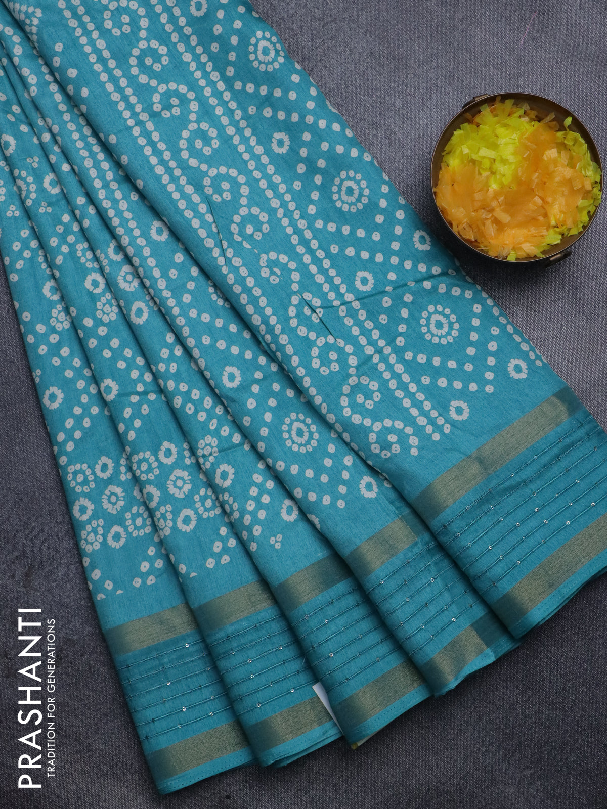 Semi dola saree teal blue with allover bandhani prints and zari woven border