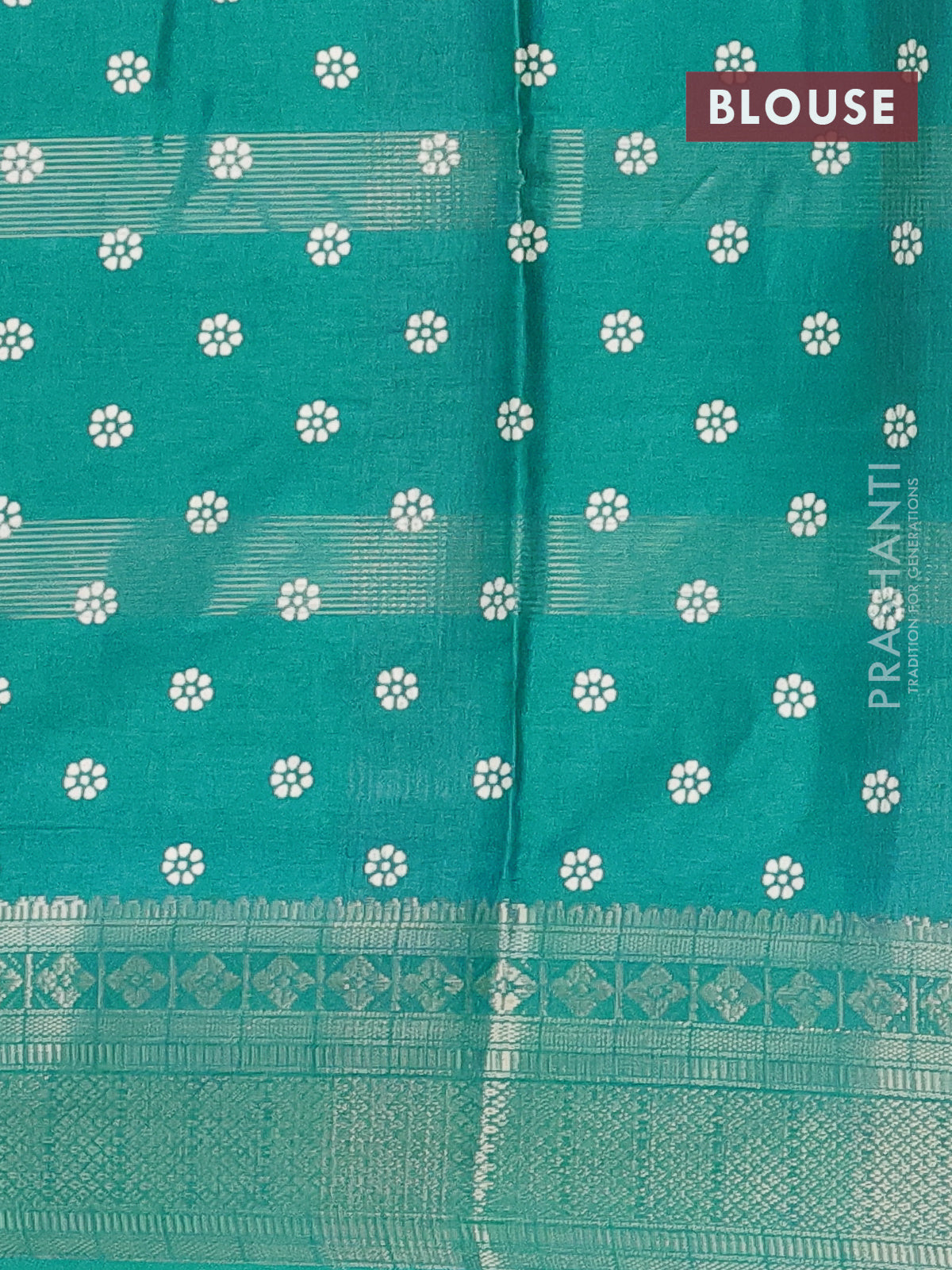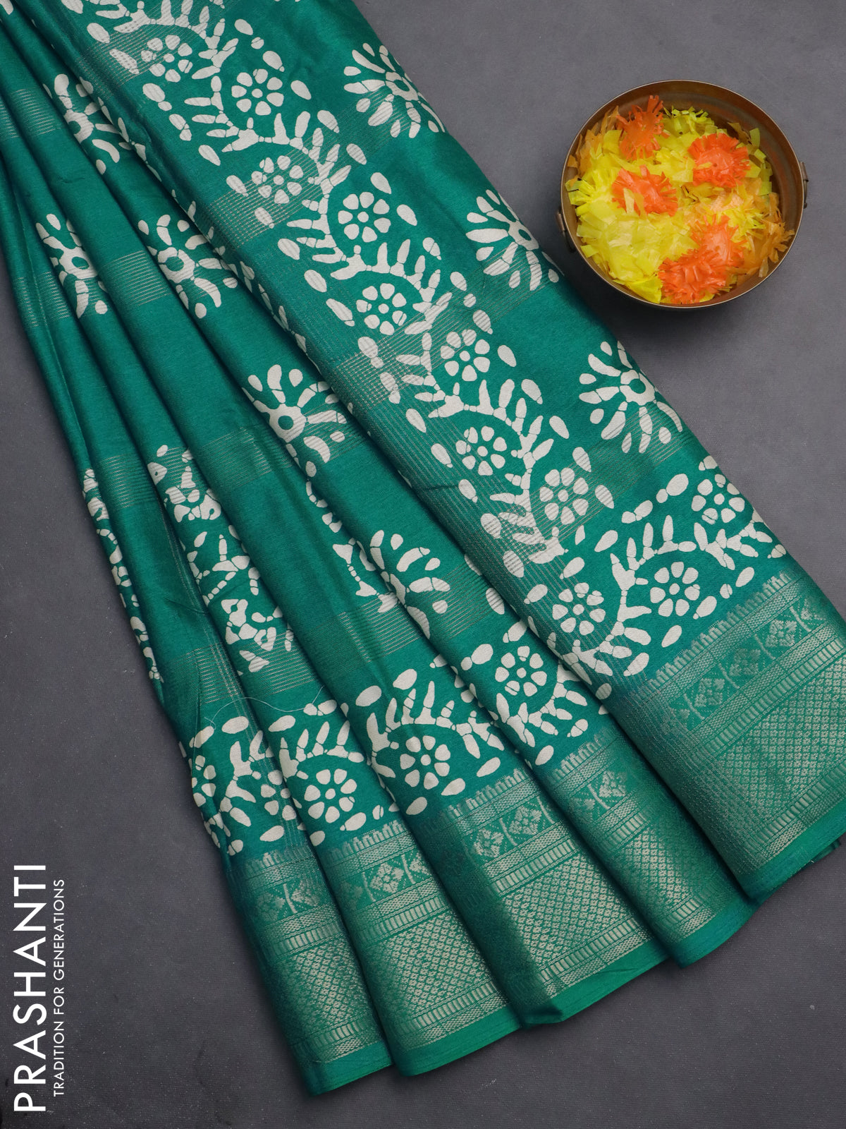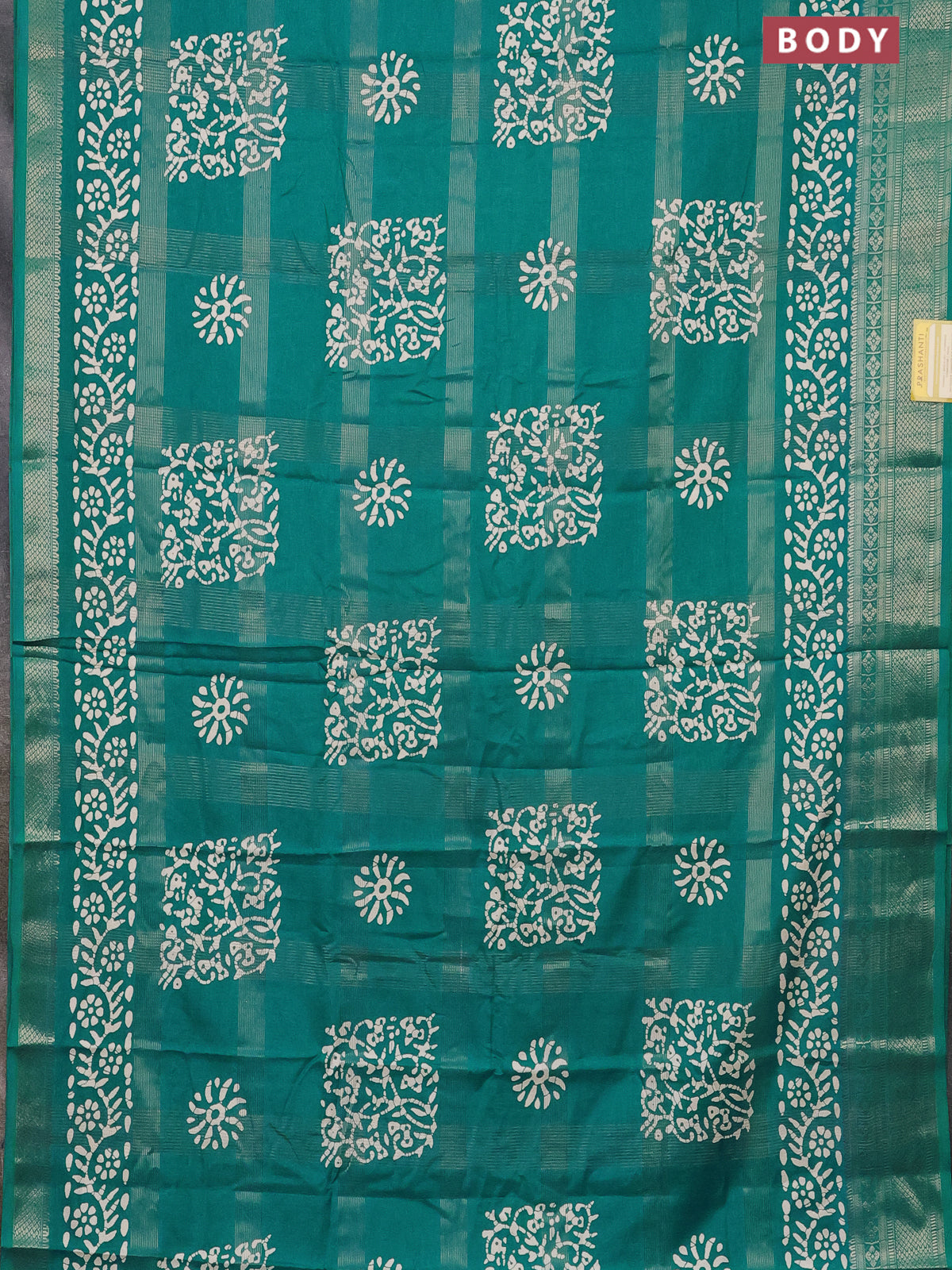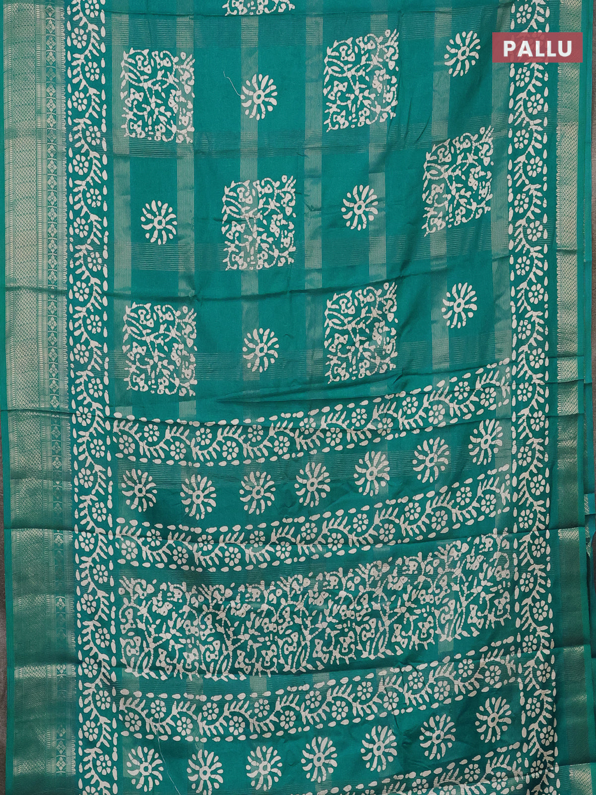 Semi dola saree teal blue with allover zari weaves & batik prints and zari woven border