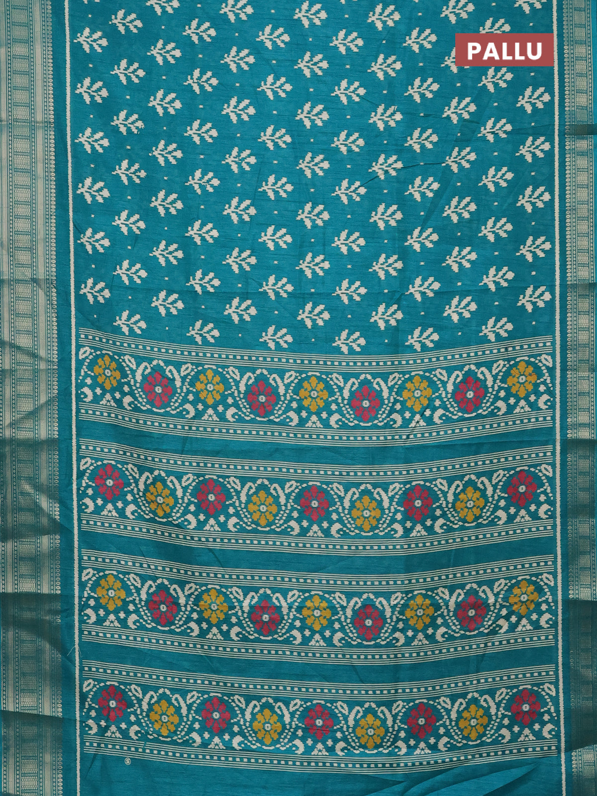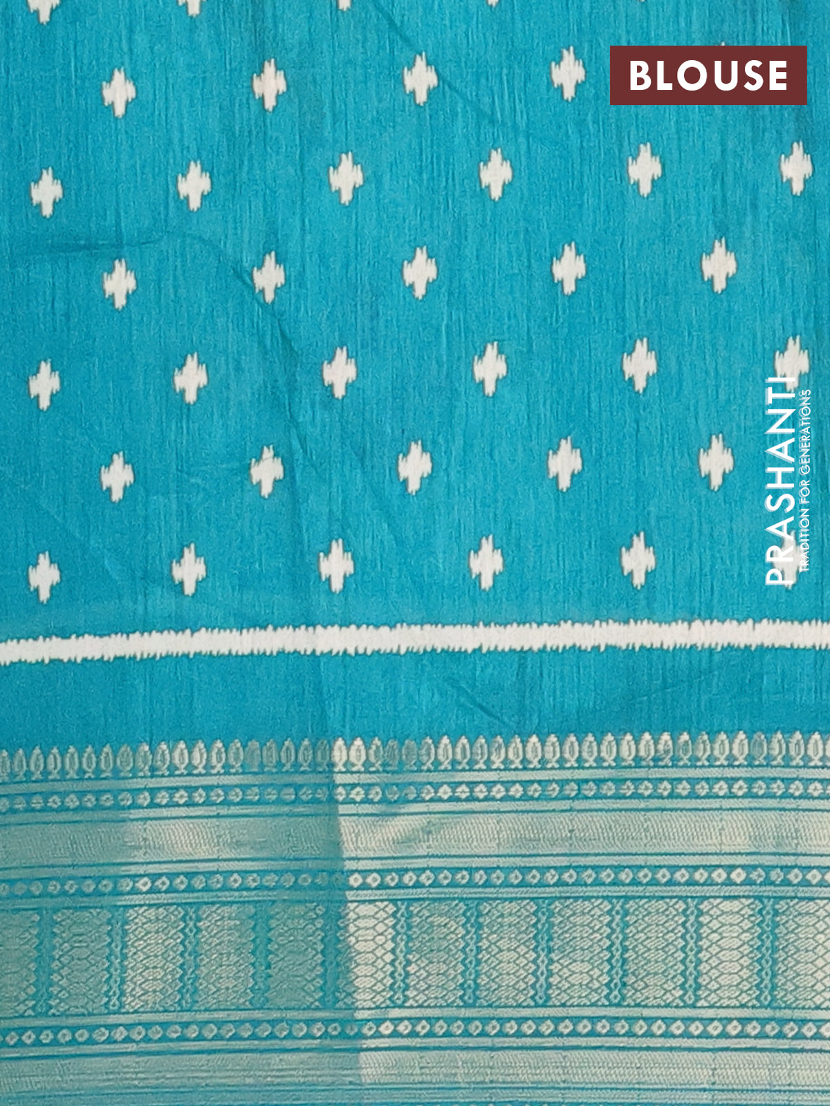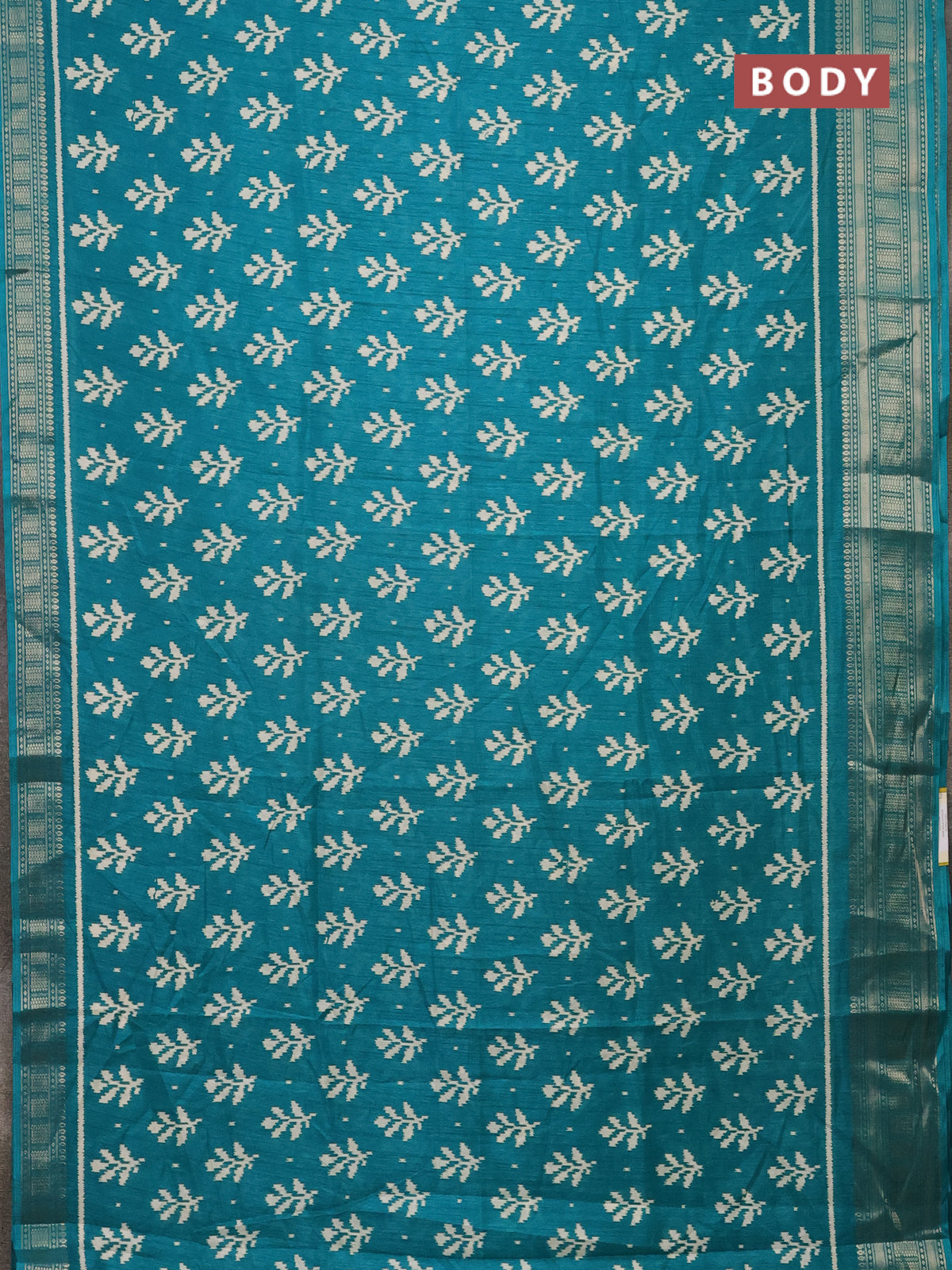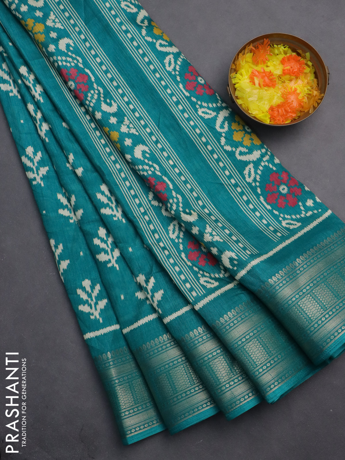 Semi dola saree teal green with allover ikat butta prints and zari woven border
