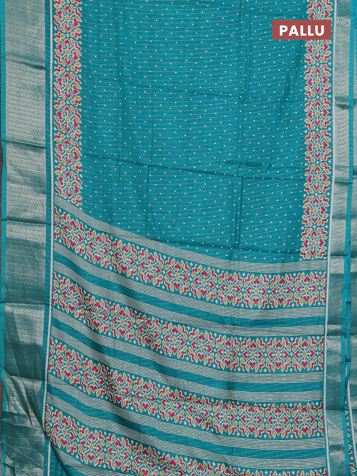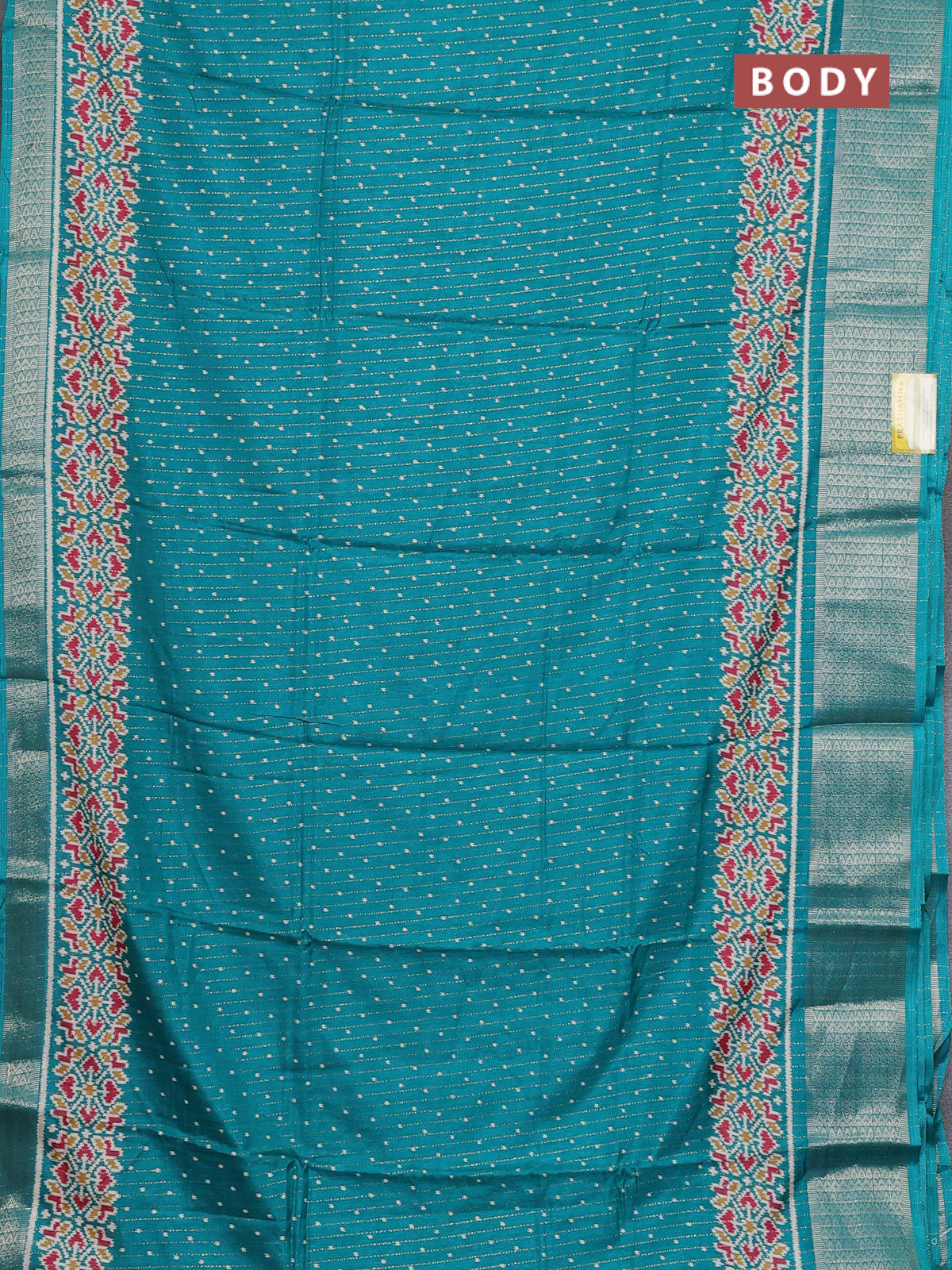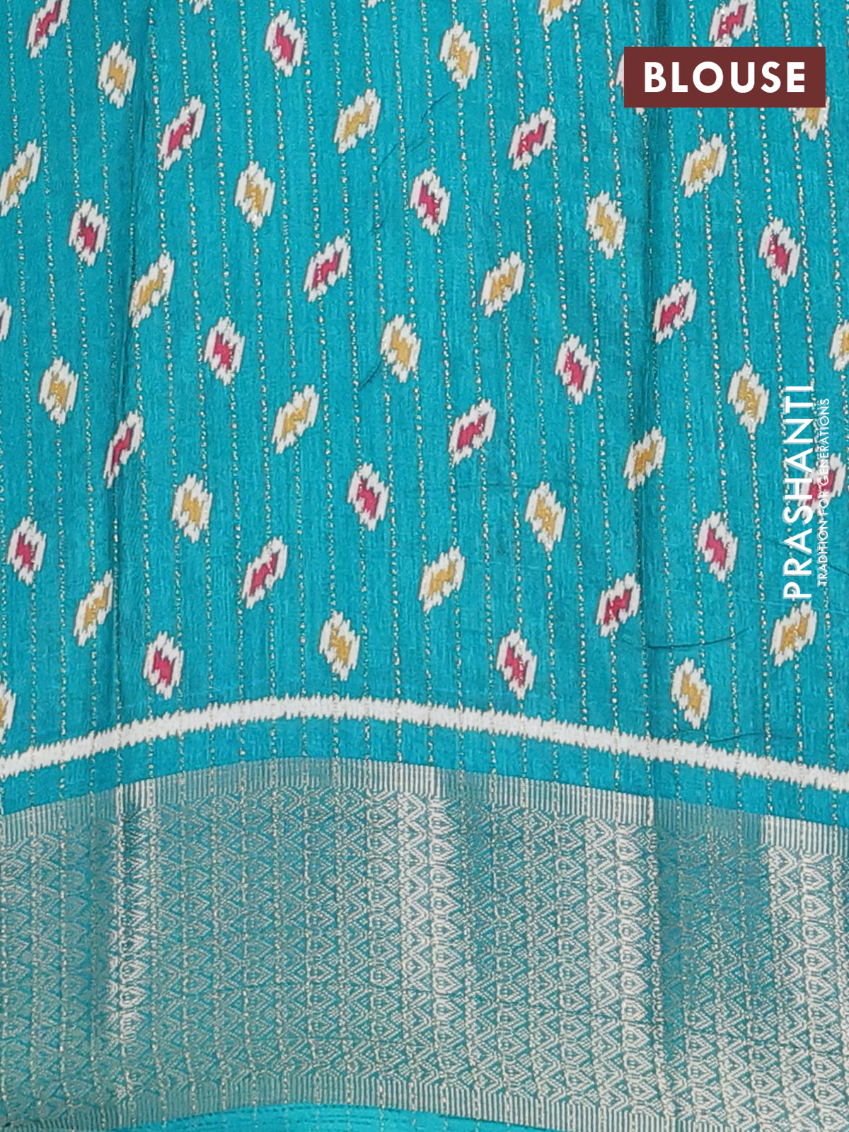 Semi dola saree teal green with allover ikat butta prints & zari weaves and zari woven border
