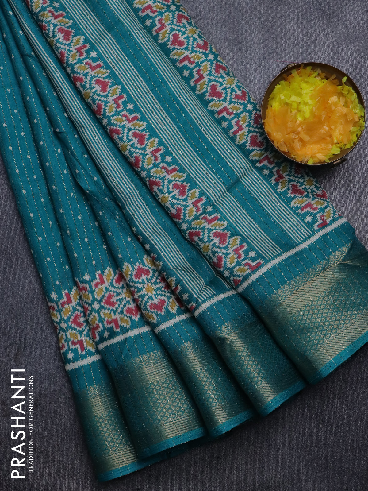 Semi dola saree teal green with zari weaves & butta prints and zari woven border