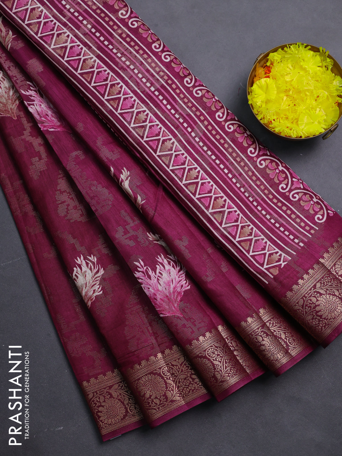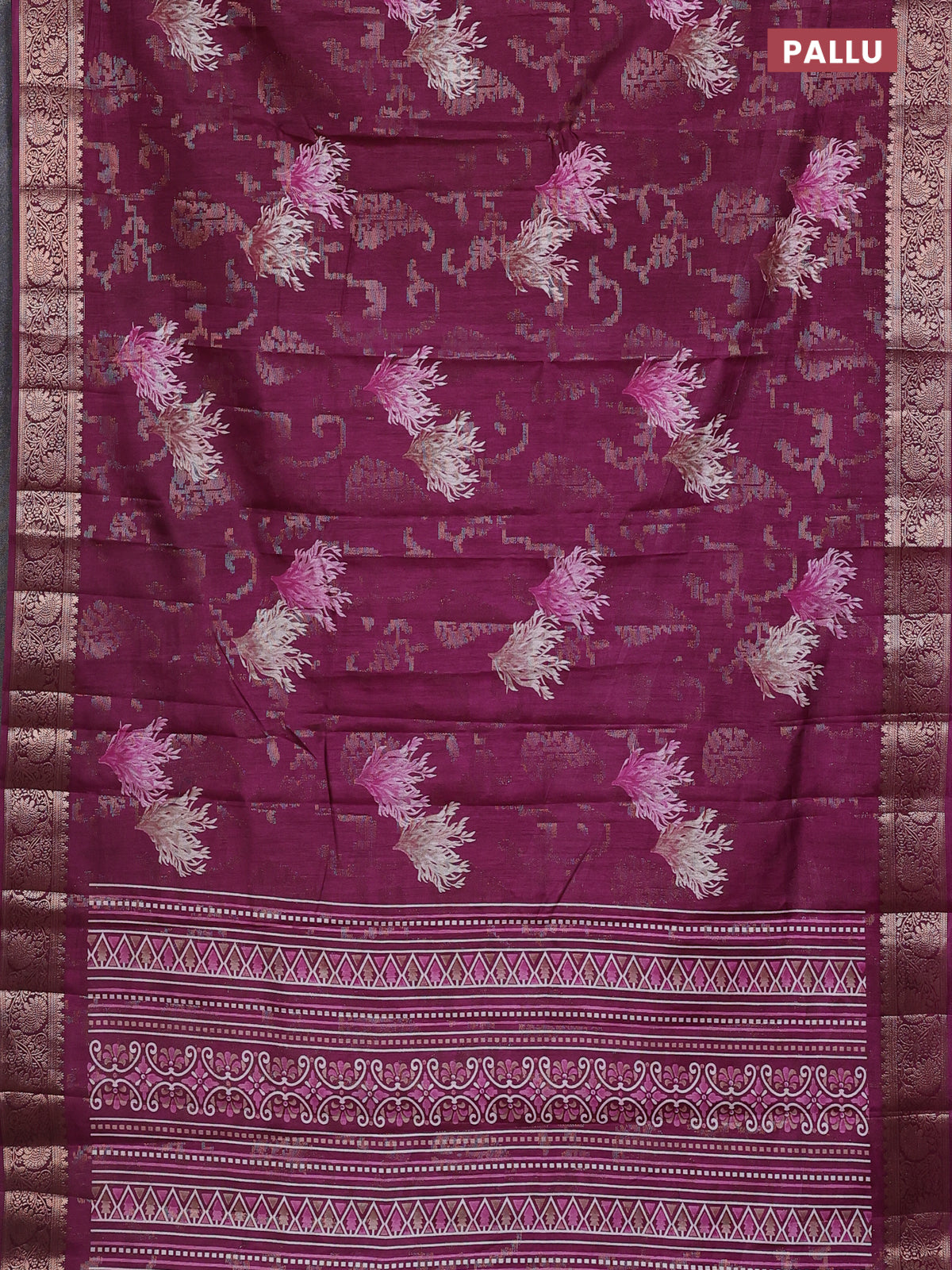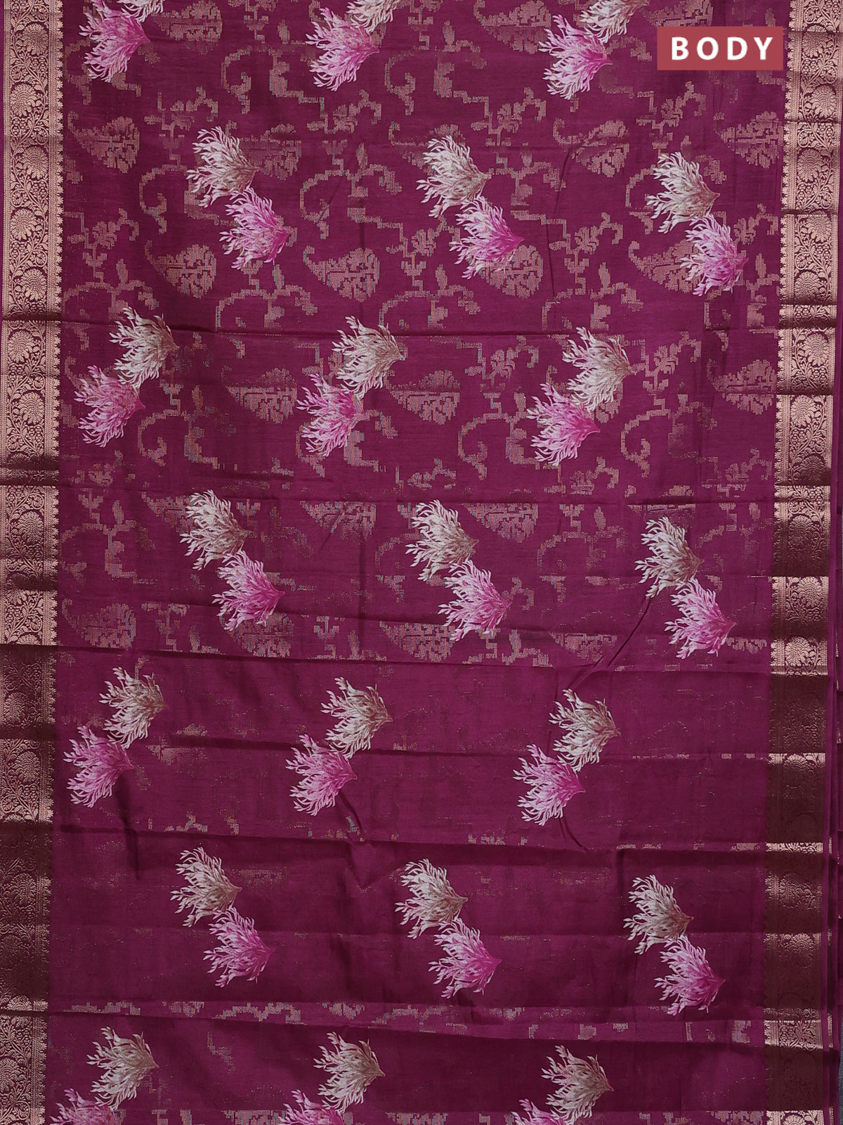 Semi dola saree wine shade with floral prints & zari weaves and zari woven border