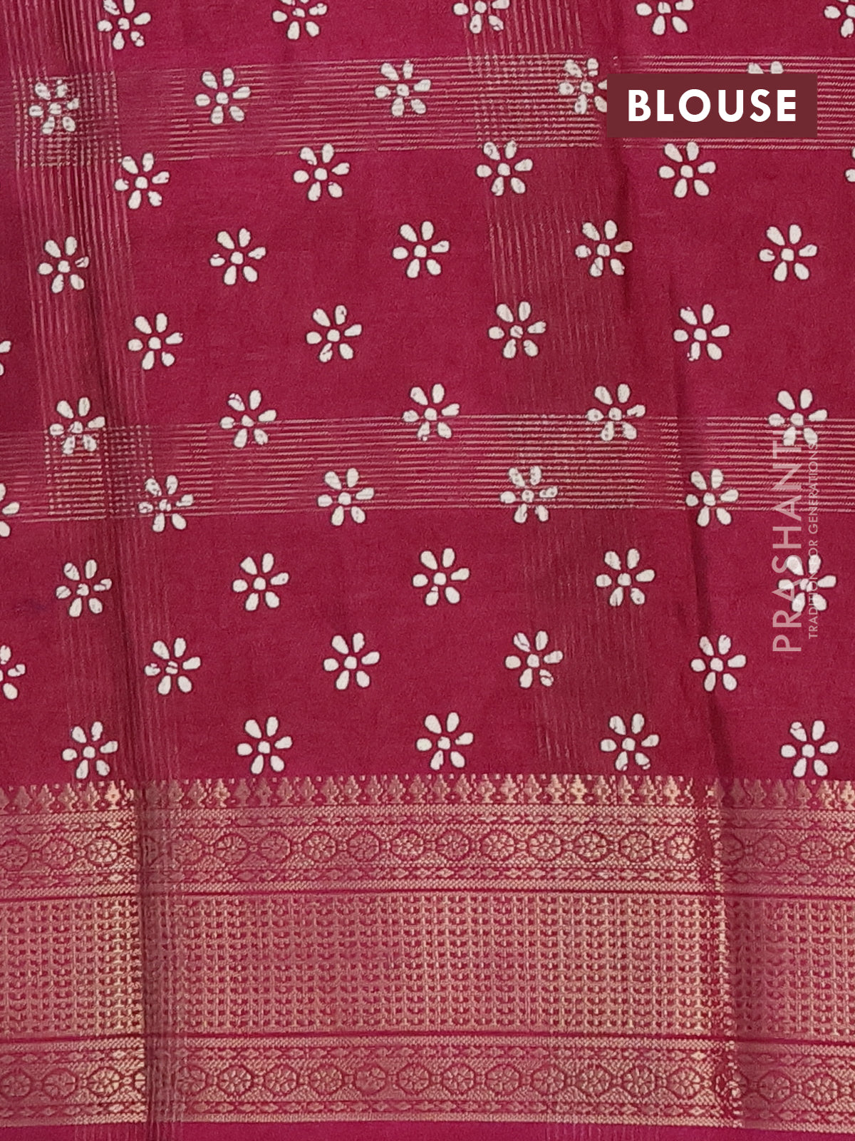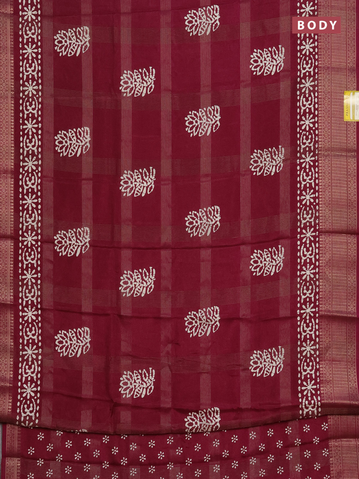 Semi dola saree wine shade with zari weaves & batik prints and zari woven border