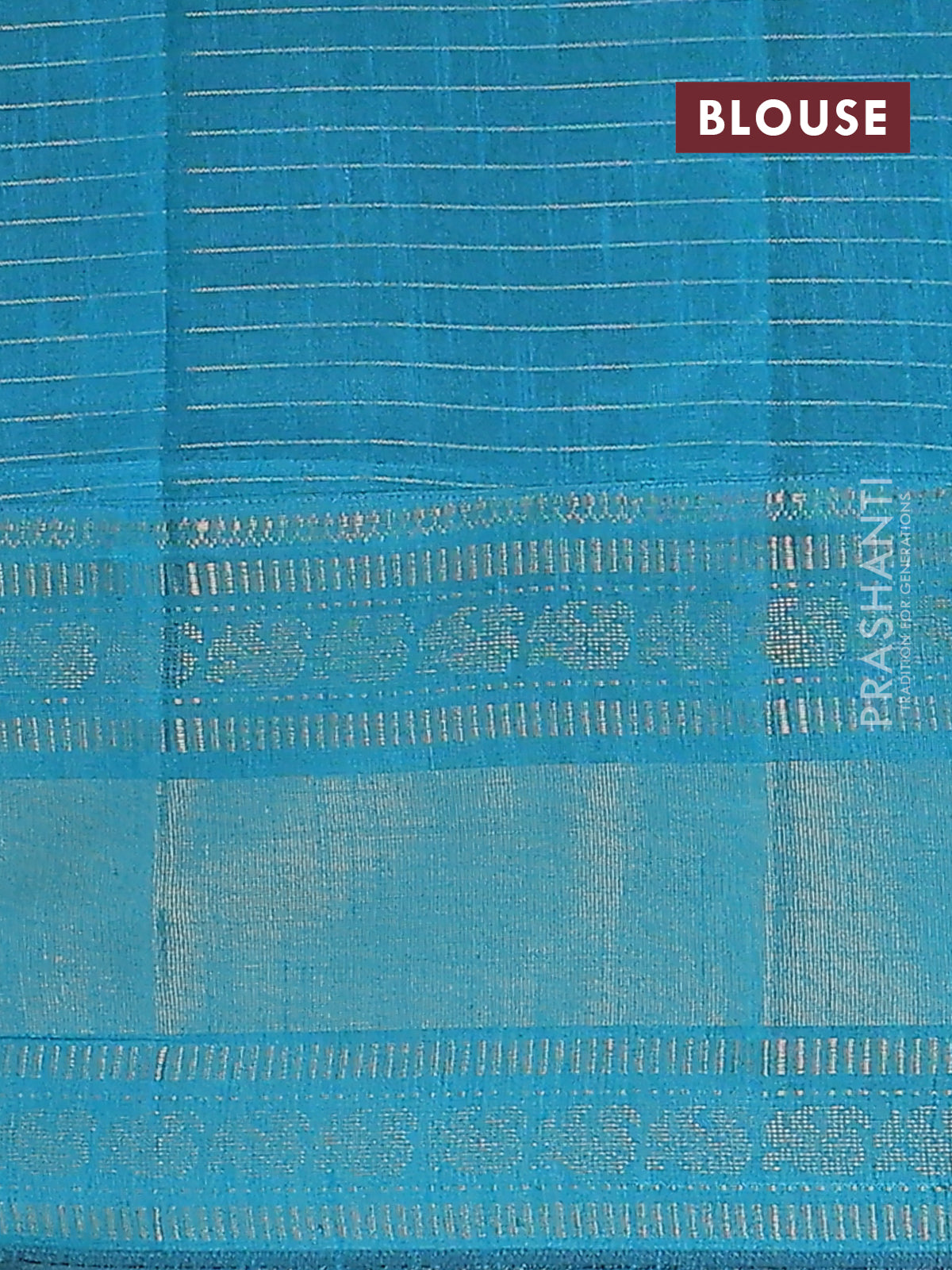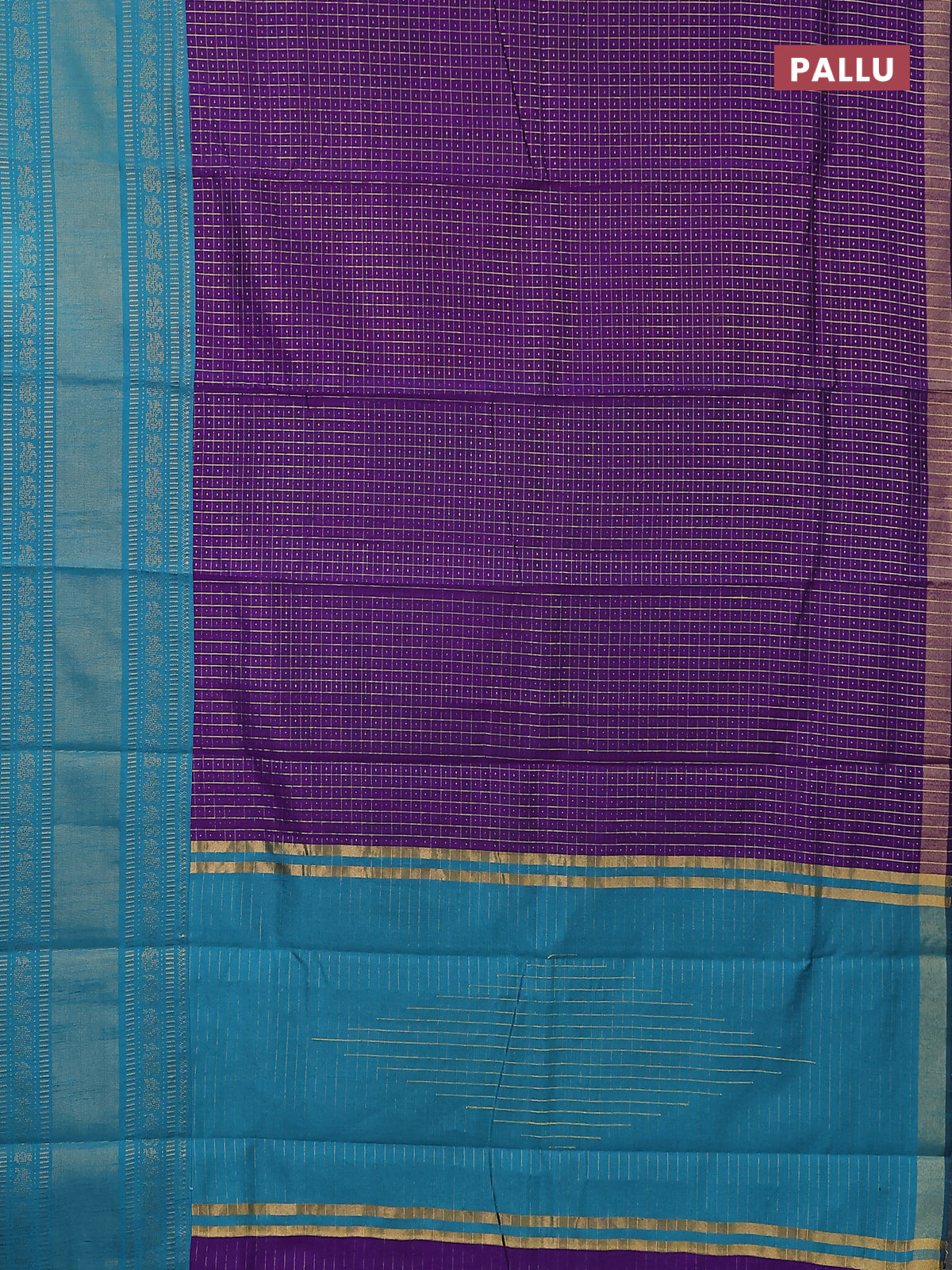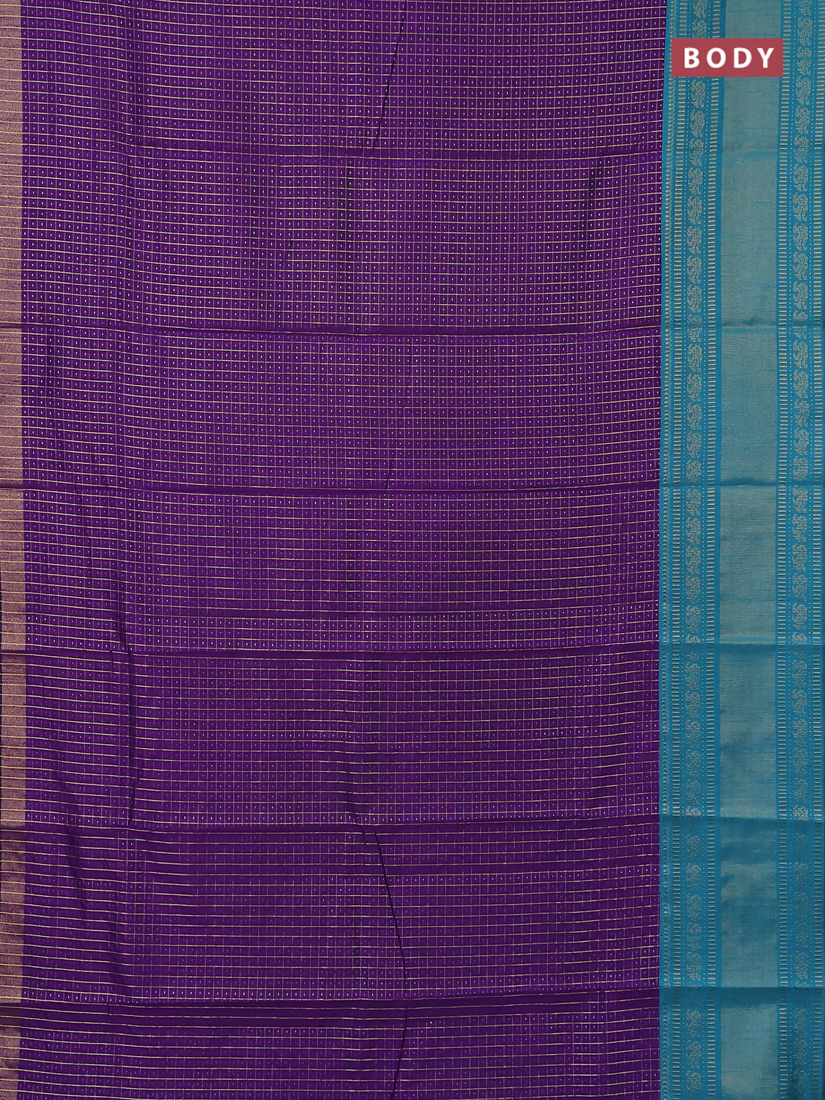 Semi dupion saree violet and teal blue with allover zari checks & buttas and long zari woven border