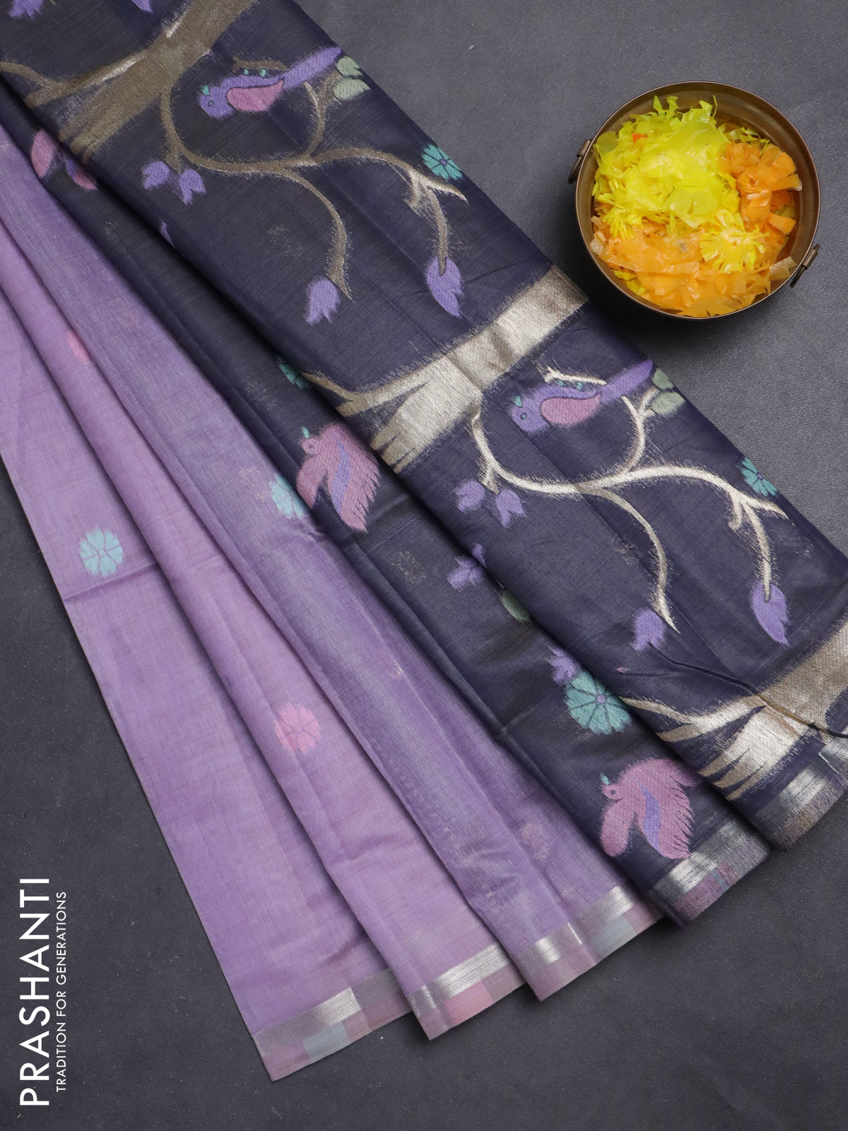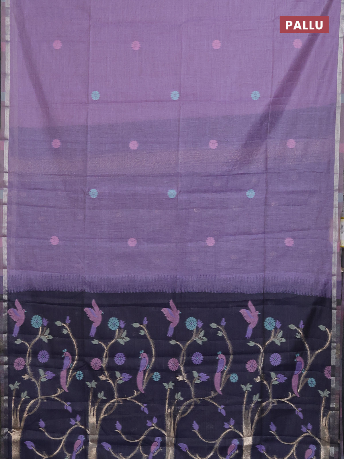 Semi jute silk saree lavender and navy blue with thread & zari woven buttas and thread woven pallu