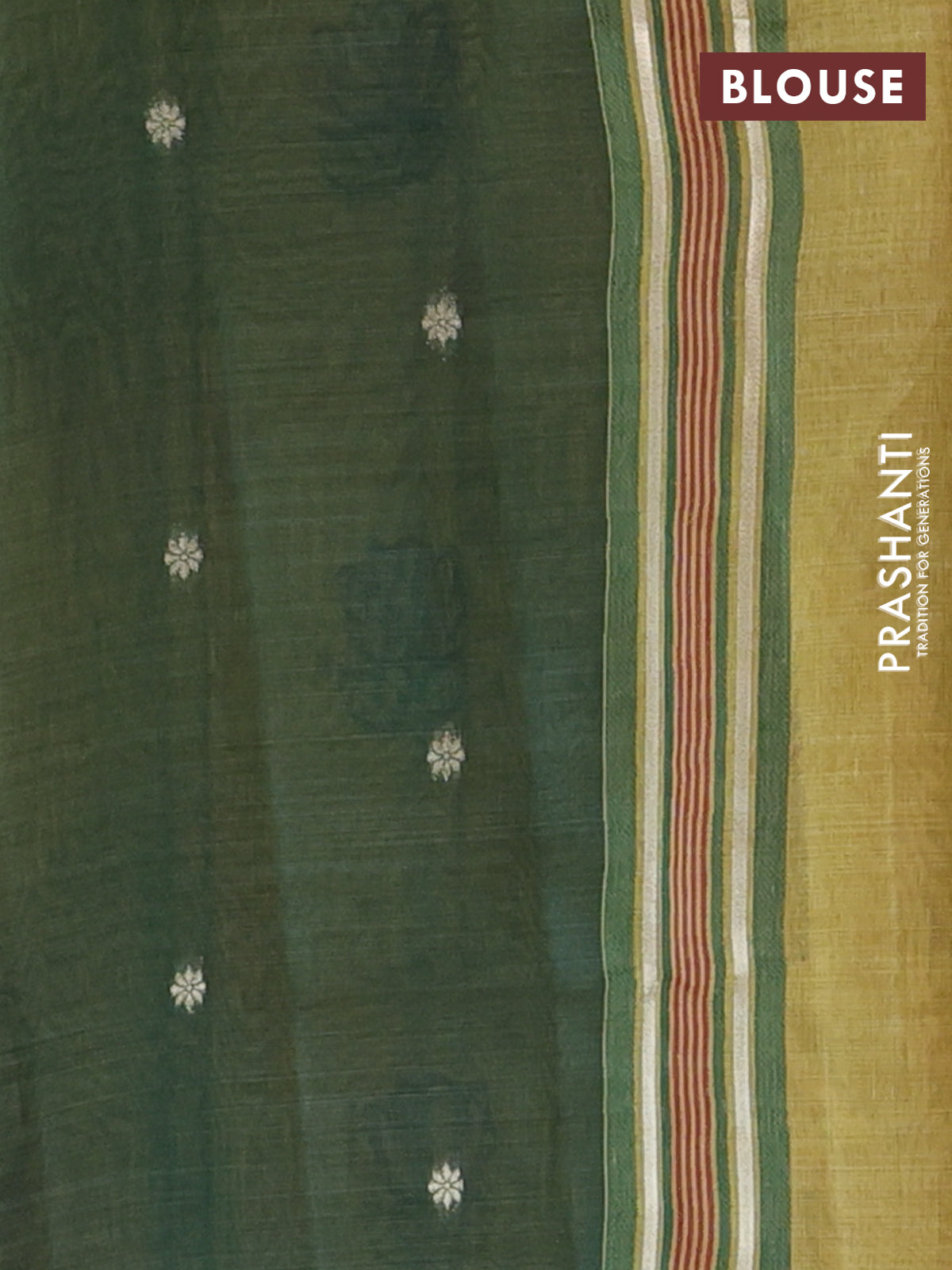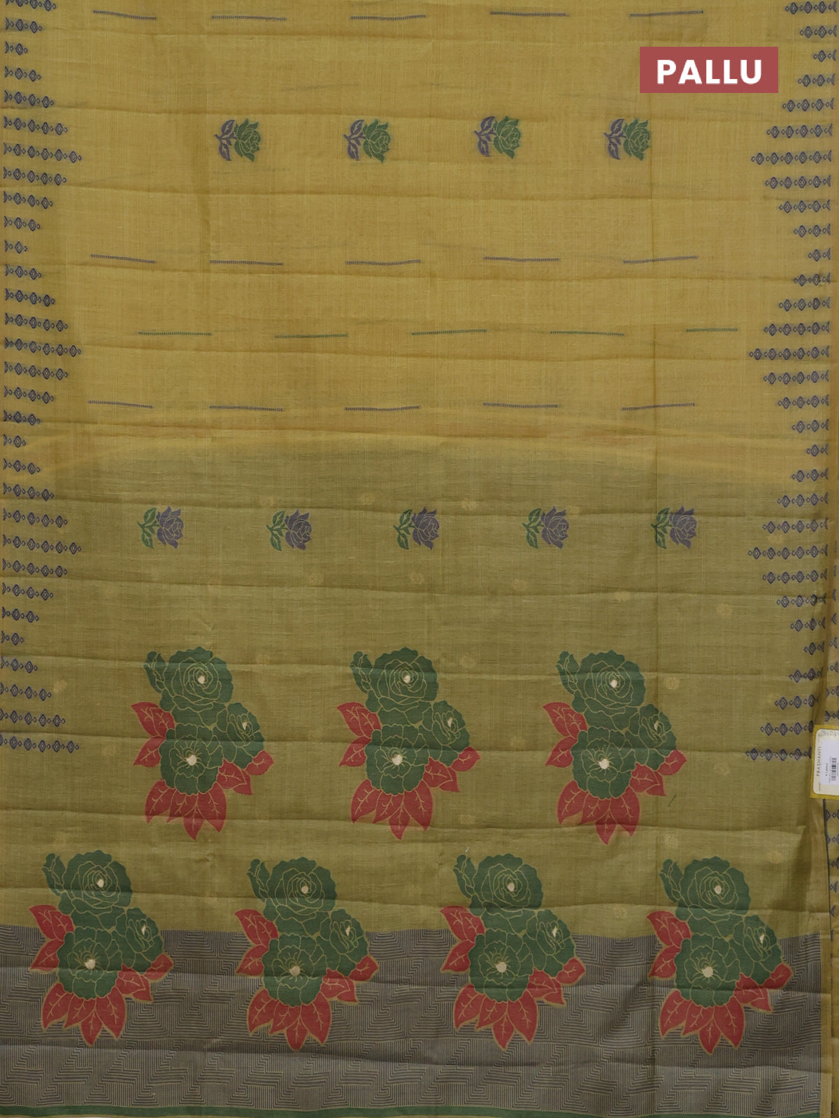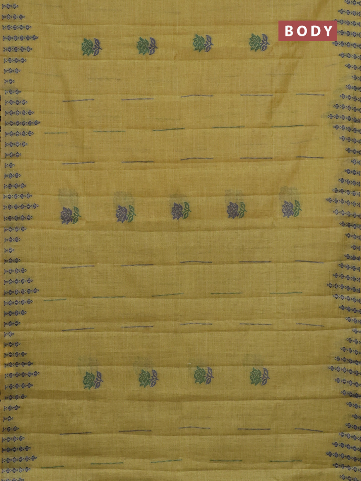 Semi jute silk saree yellow shade and green with thread woven floral buttas and floral design weaving pallu