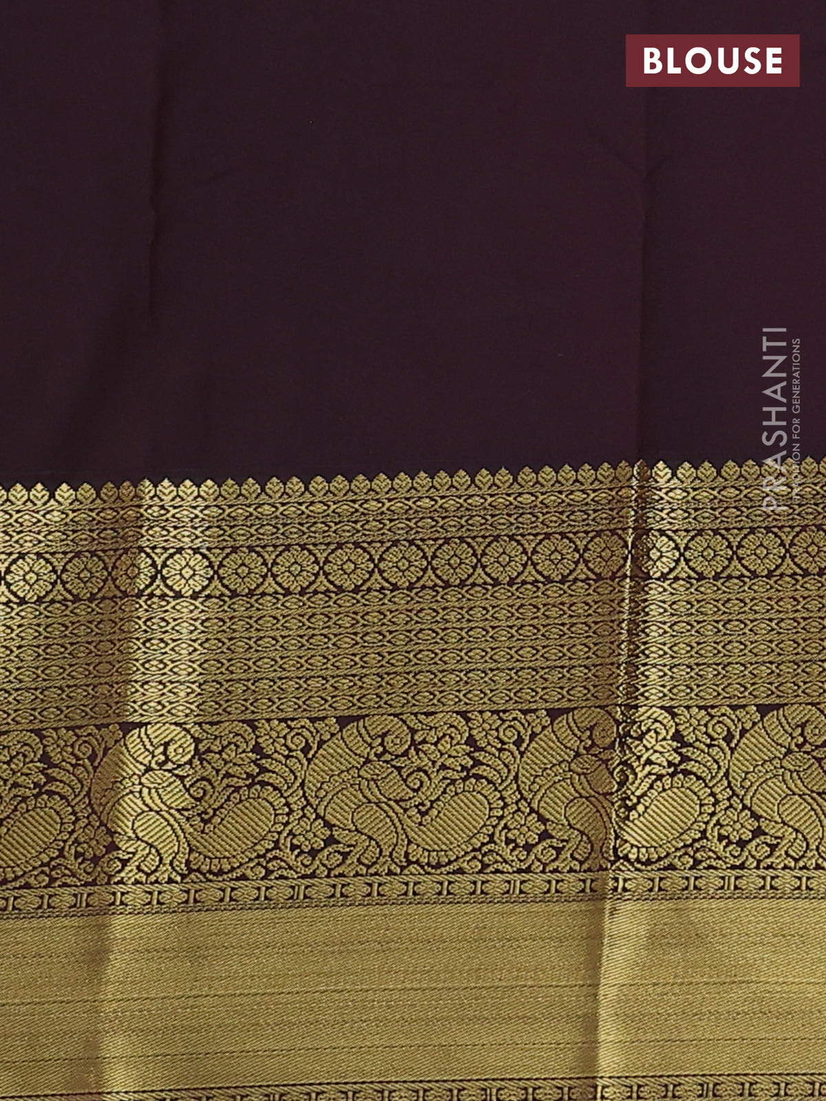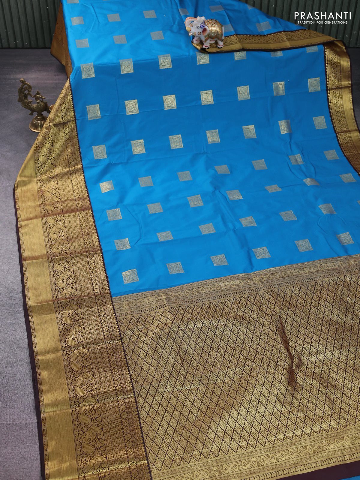 Semi kanchipuram silk saree cs blue and coffee brown with zari woven box type buttas and zari woven korvai border