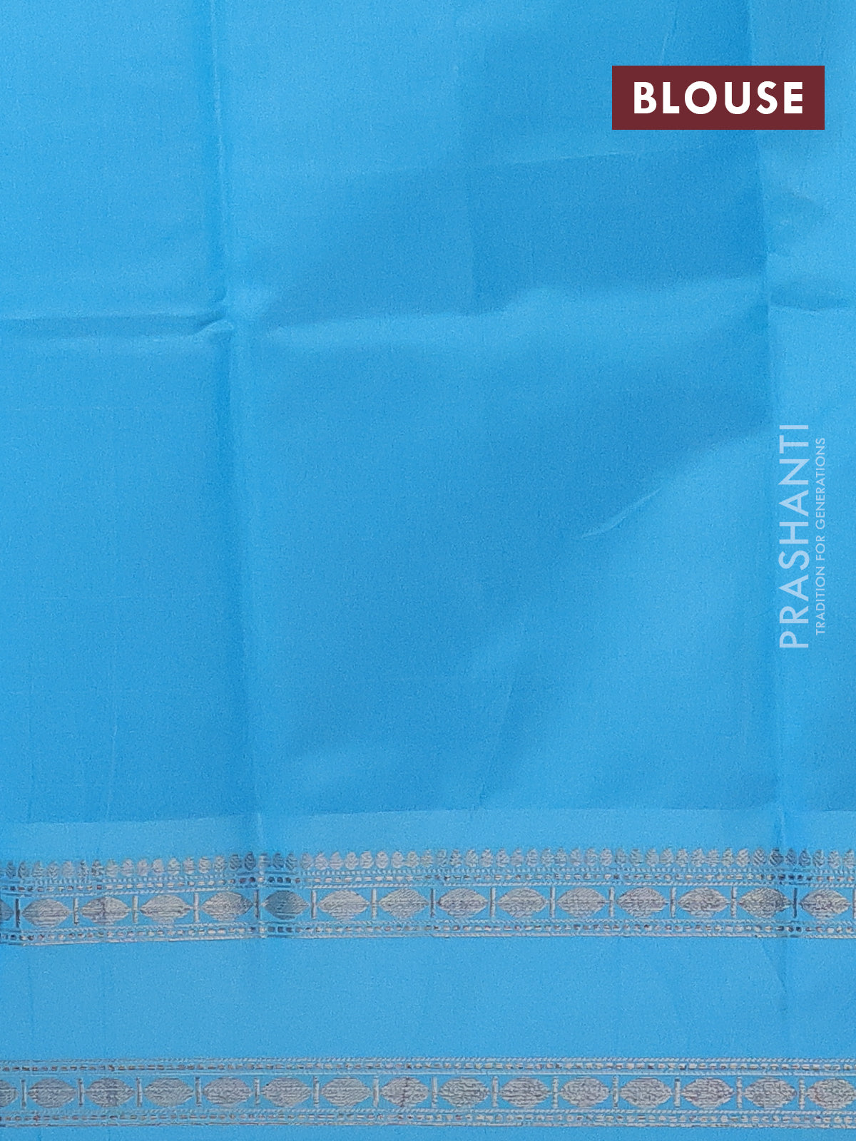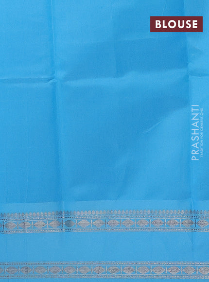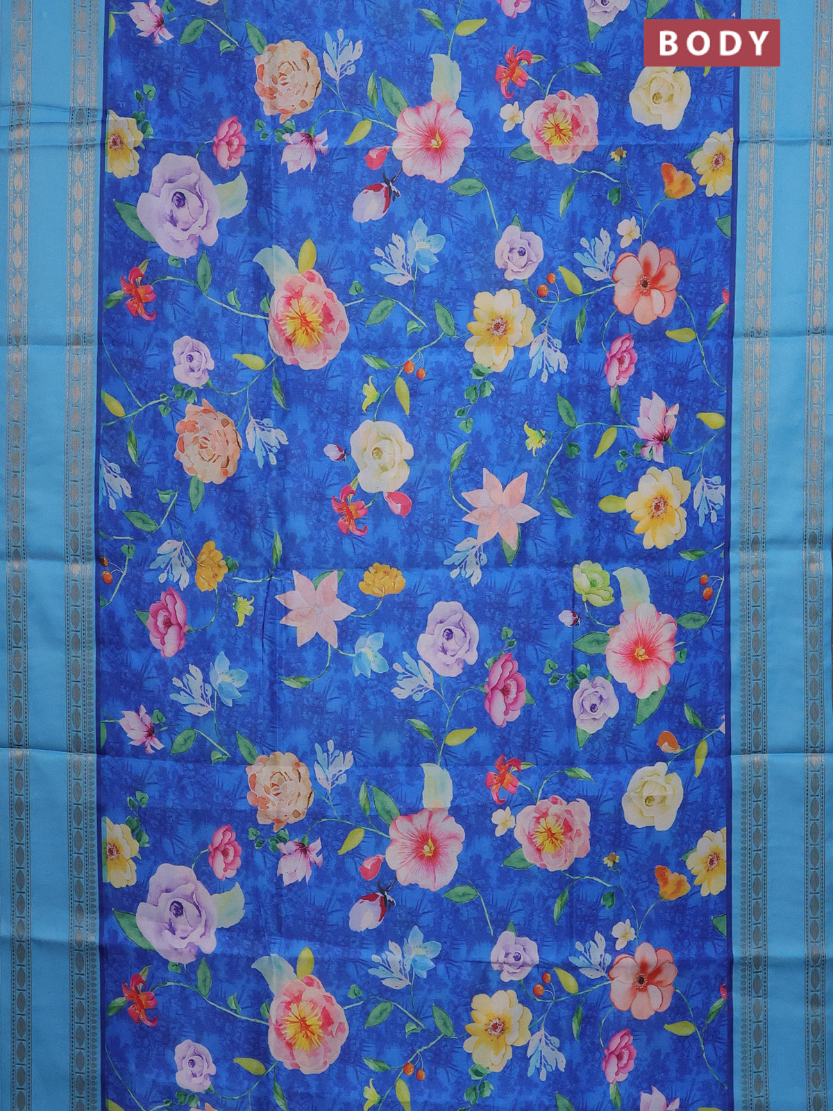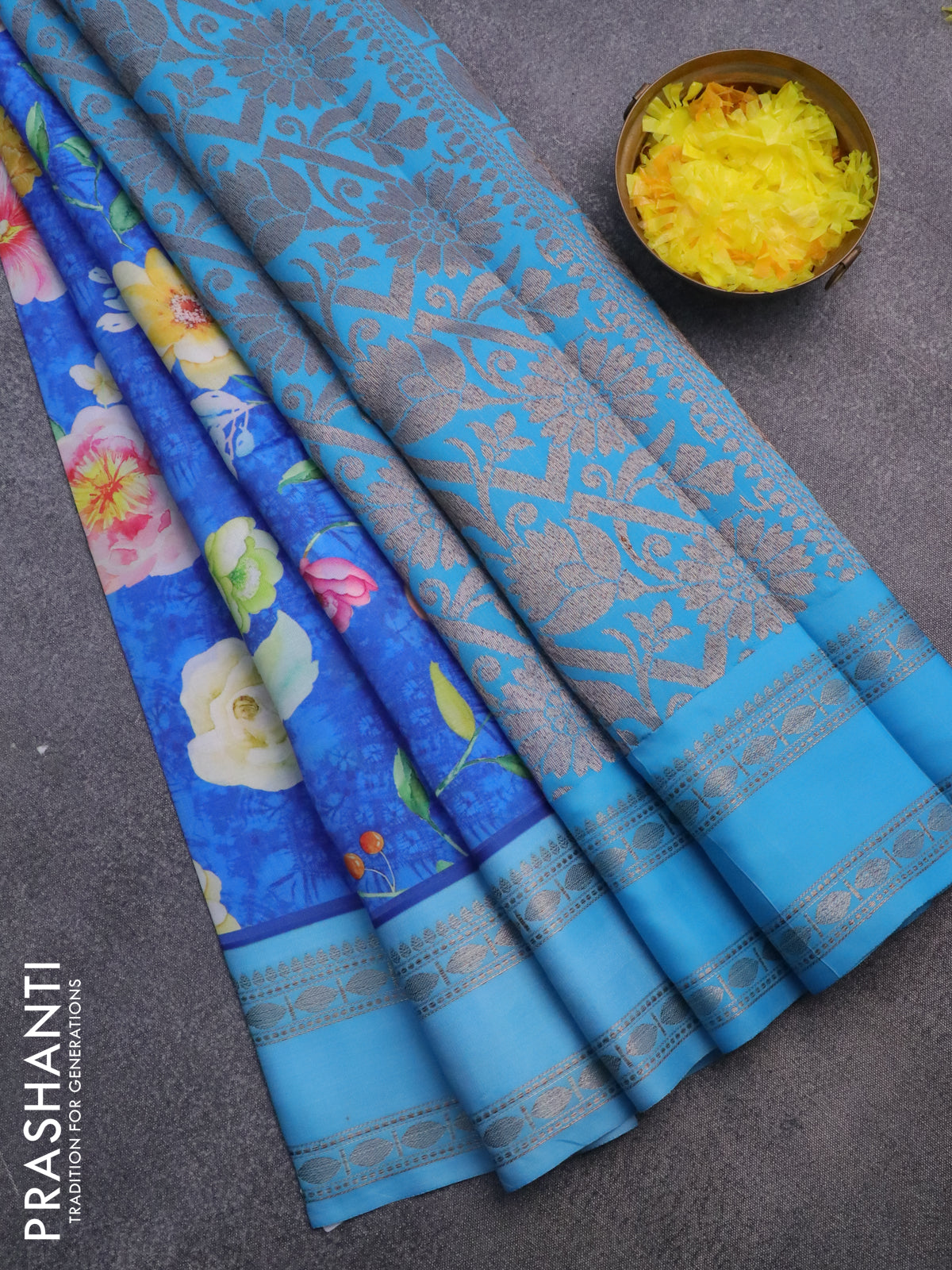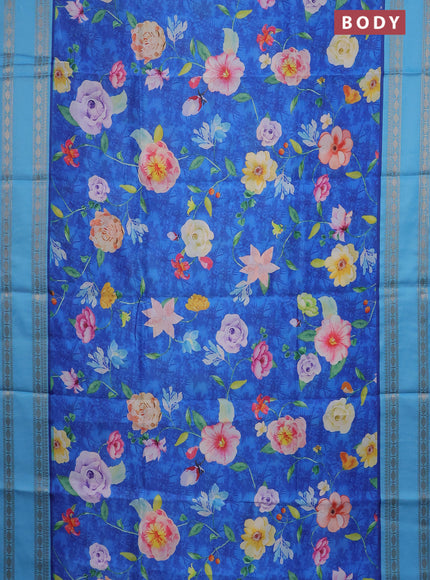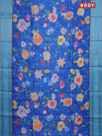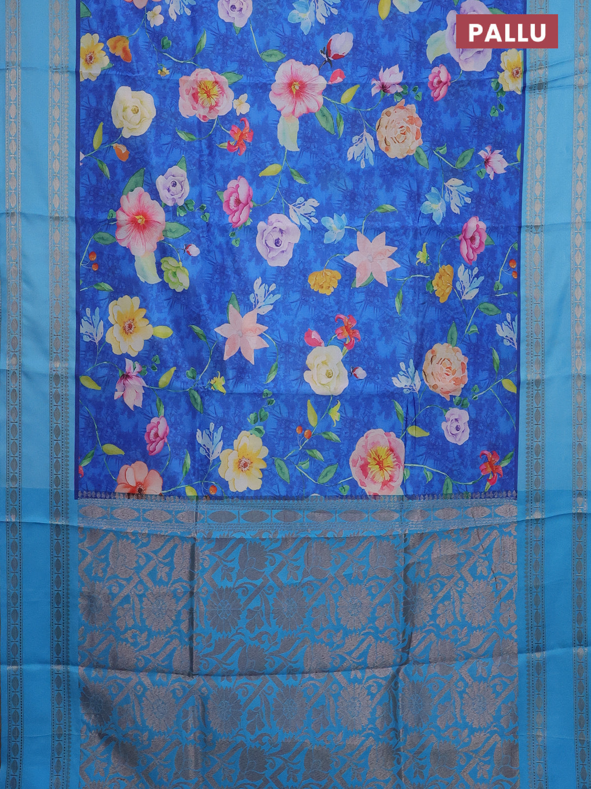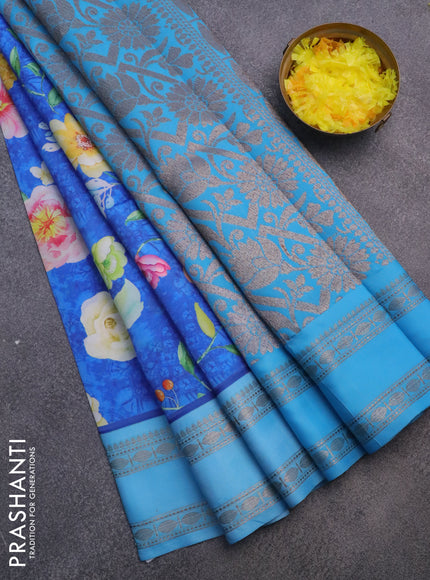 Semi kanchipuram silk saree royal blue and light blue with allover floral digital prints and rettapet woven border