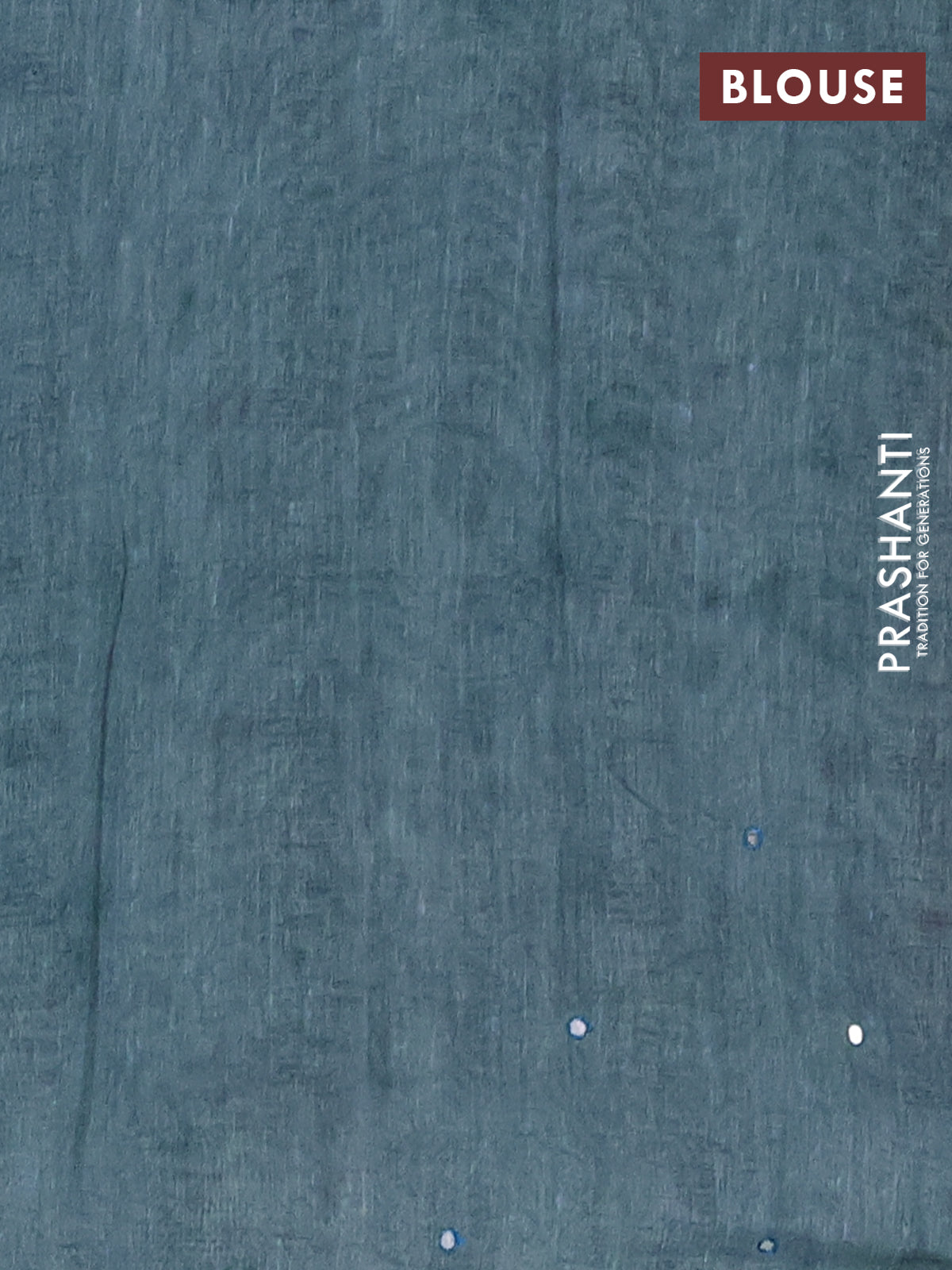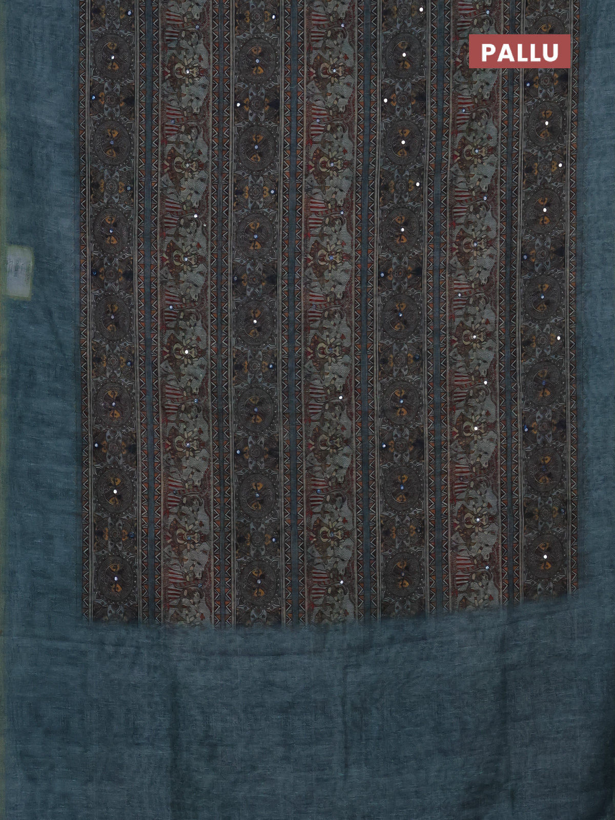 Semi linen saree blue shade with allover madhubani prints & mirror work