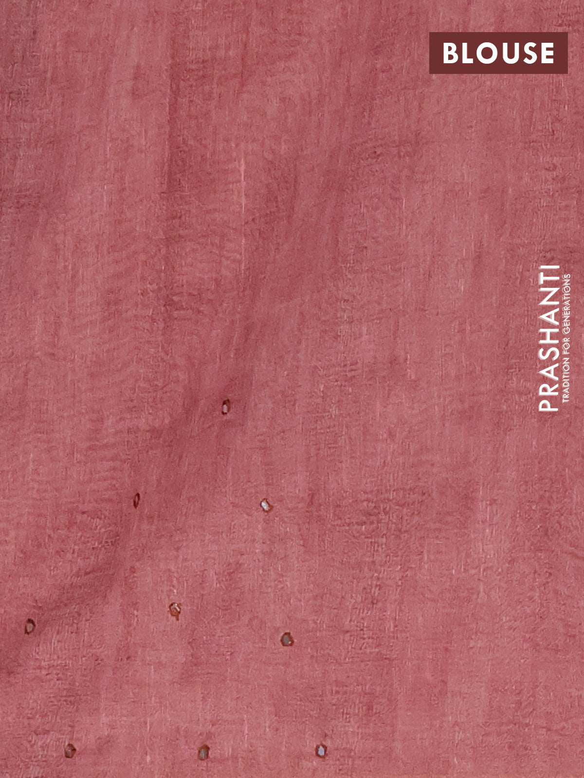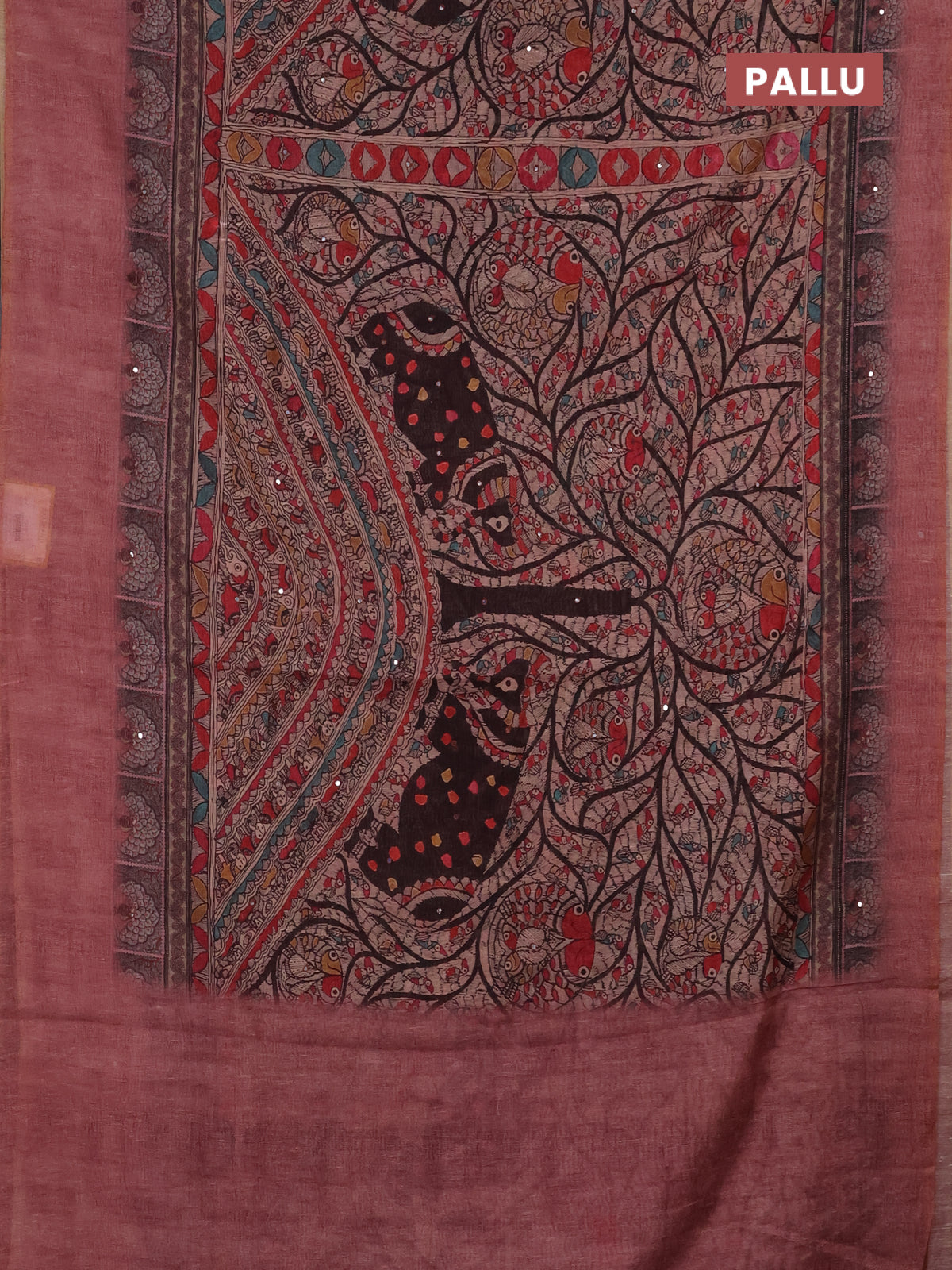 Semi linen saree maroon shade with allover madhubani prints & mirror work