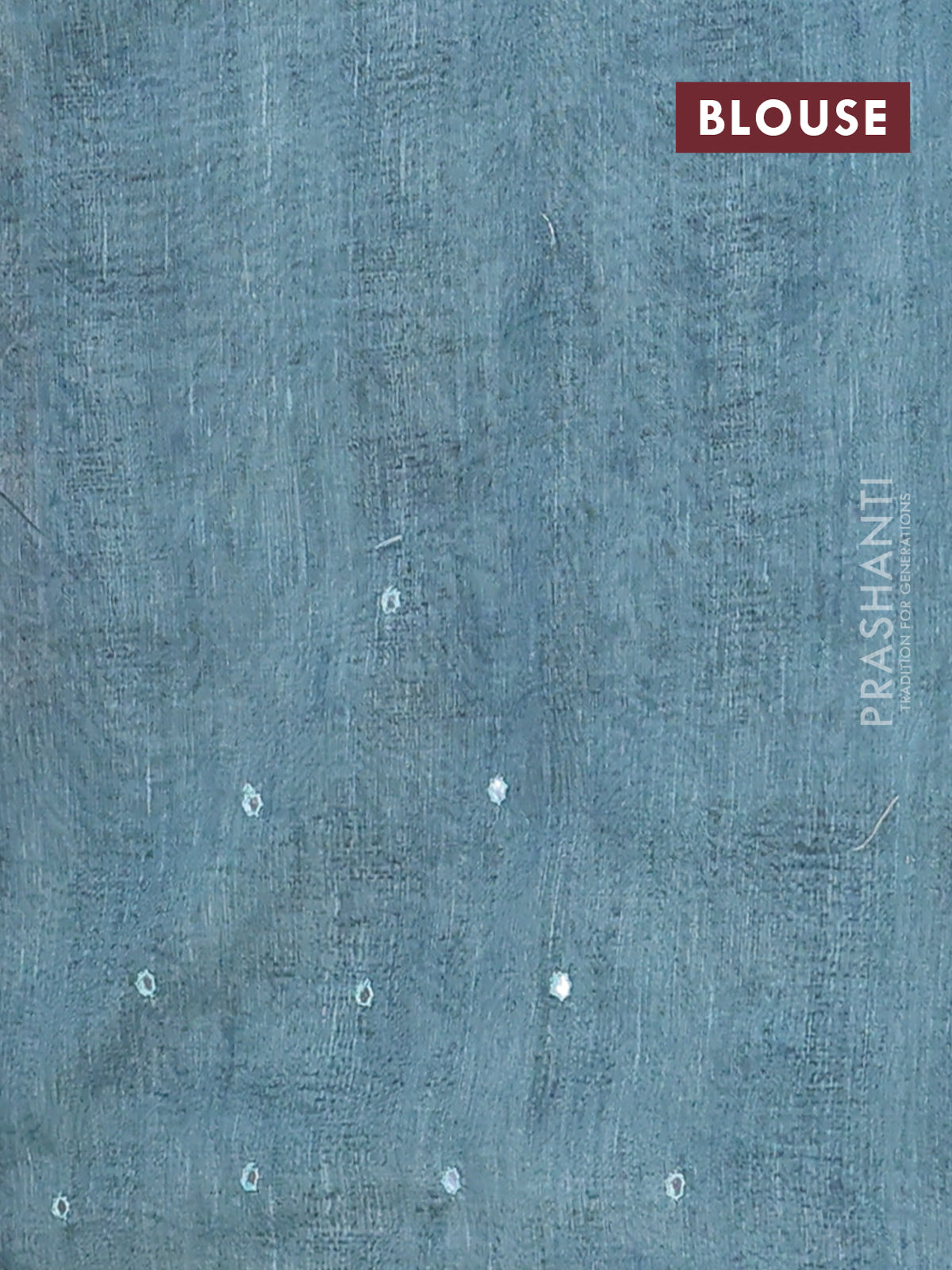 Semi linen saree teal blue with allover madhubani prints & mirror work