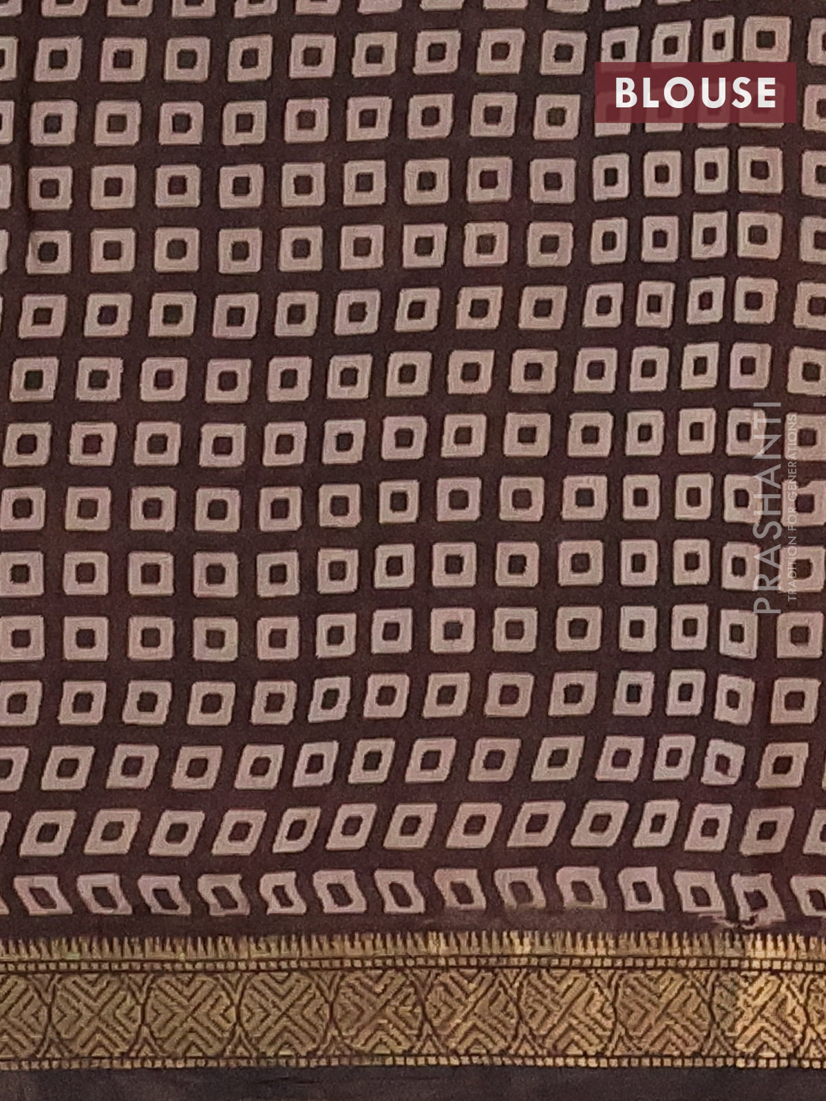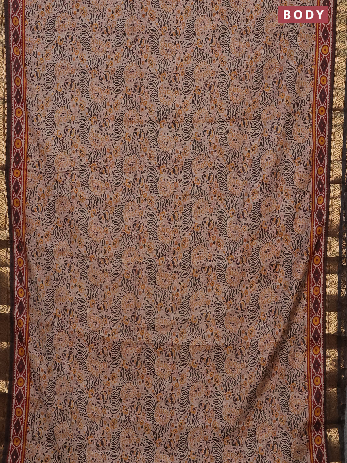 Semi maheshwari cotton saree beige and coffee brown with allover prints and zari woven border
