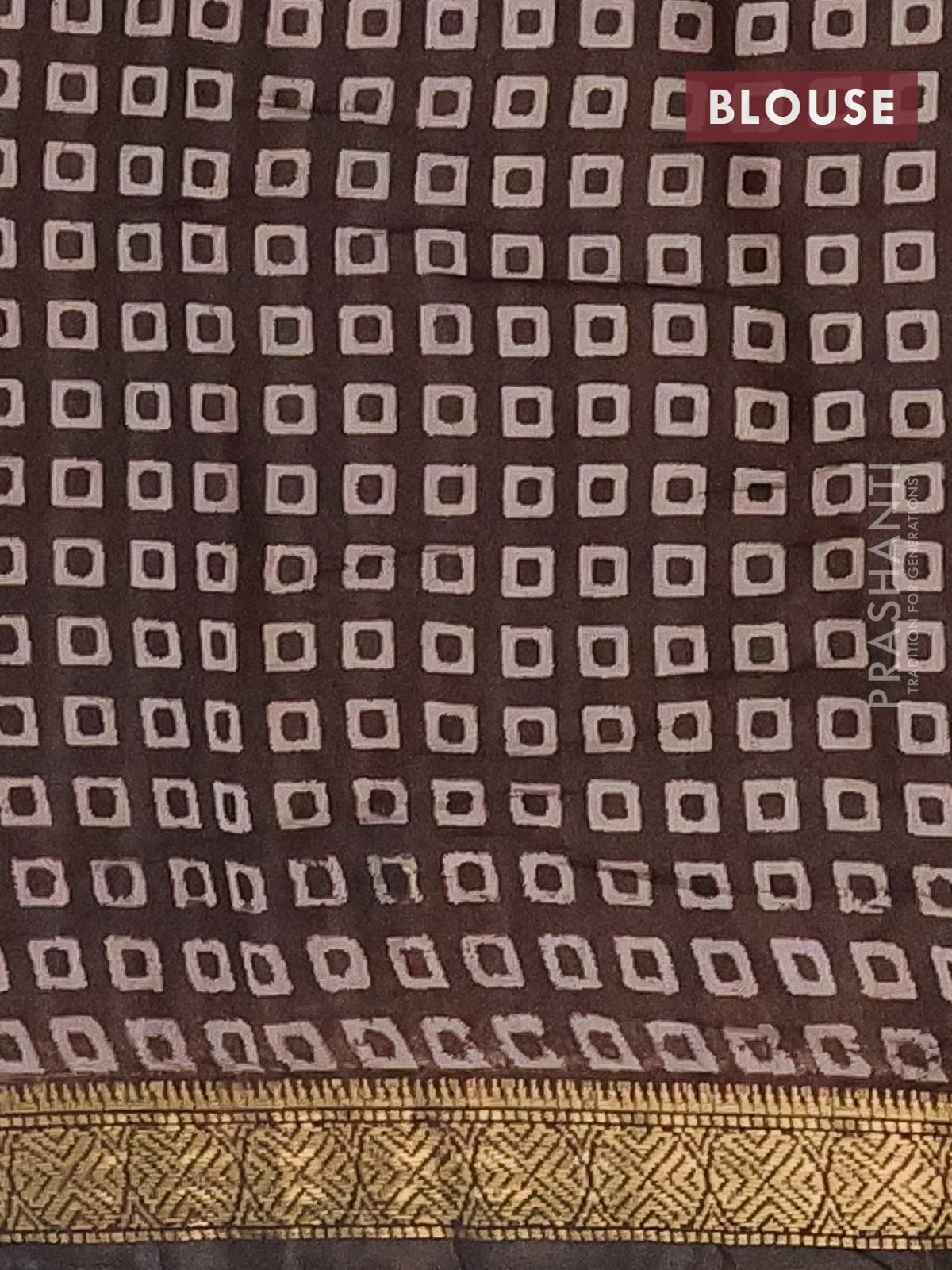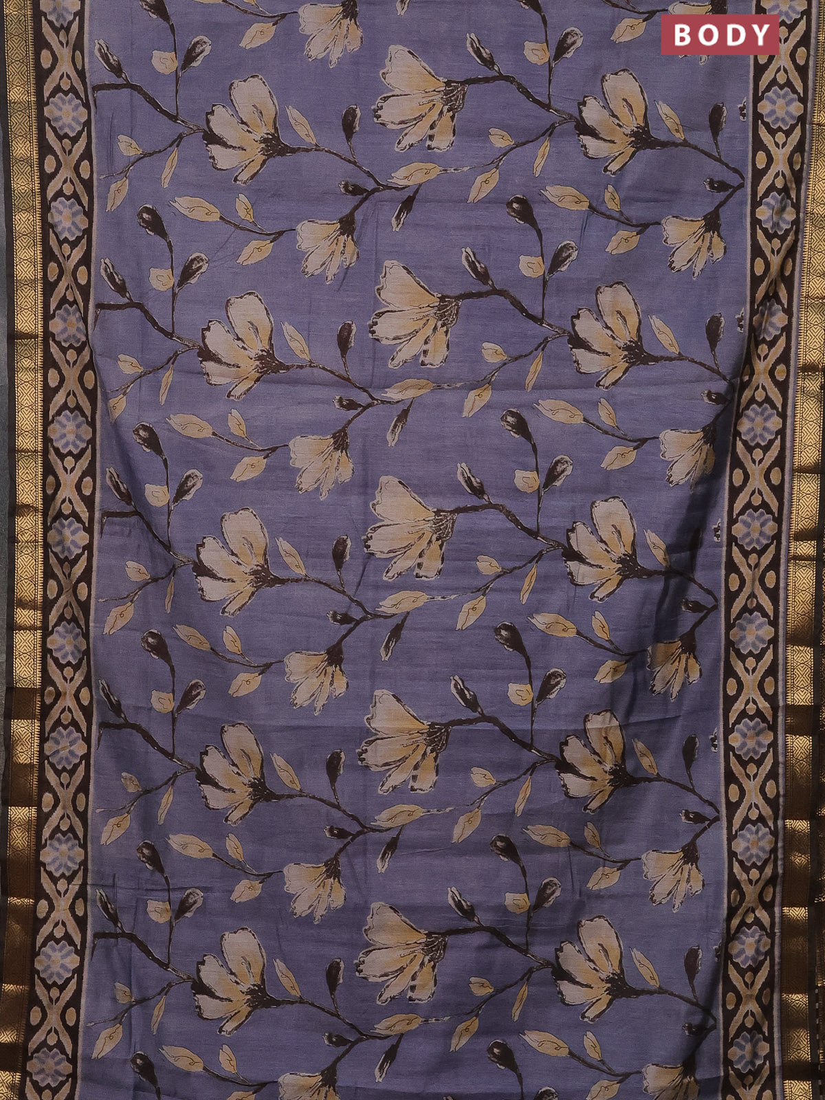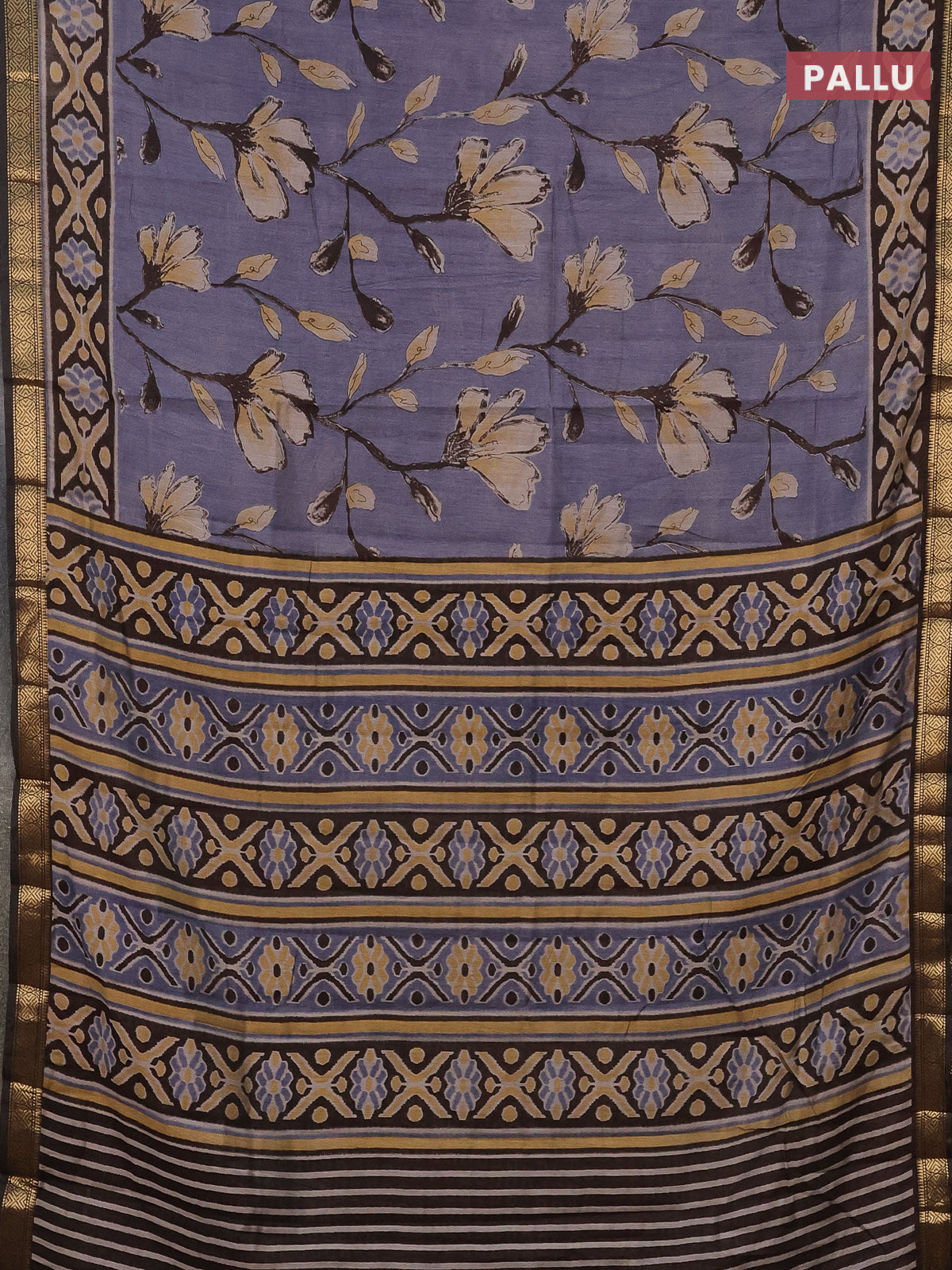 Semi maheshwari cotton saree bluish grey and coffee brown with allover floral prints and zari woven border