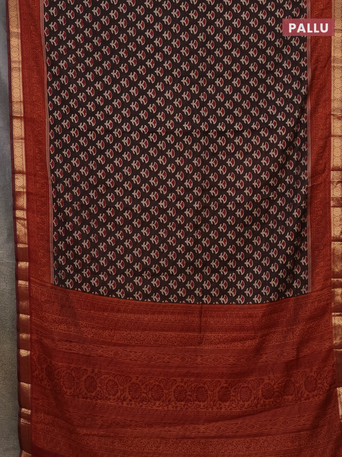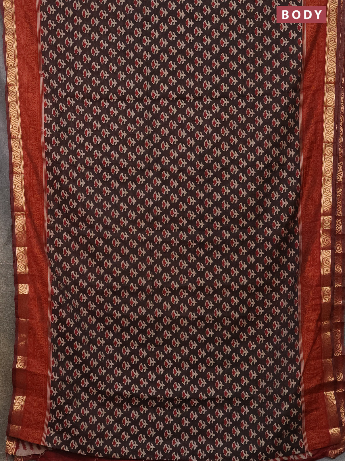 Semi maheshwari cotton saree coffee brown and maroon with allover butta prints and zari woven border