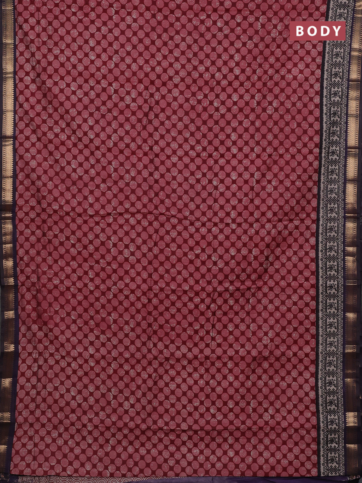 Semi maheshwari cotton saree maroon and deep jamun with allover geometric prints and zari woven border