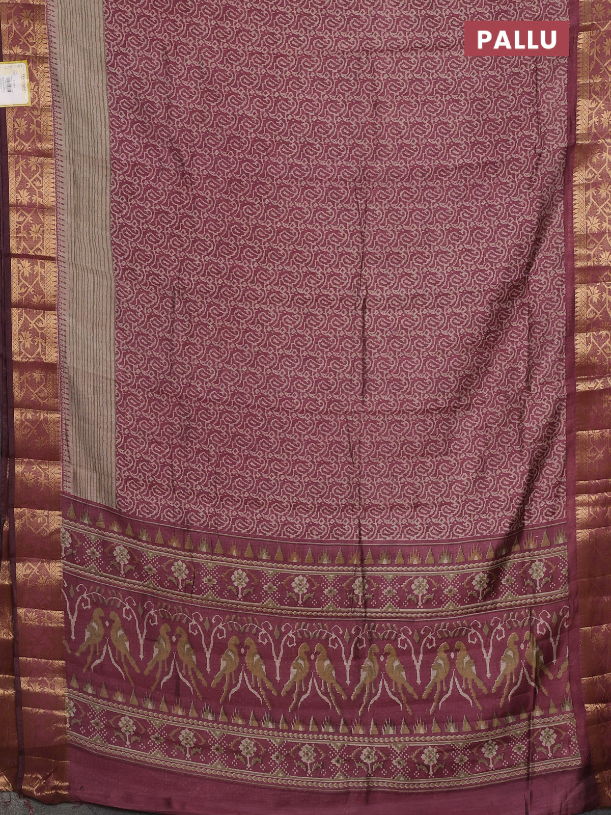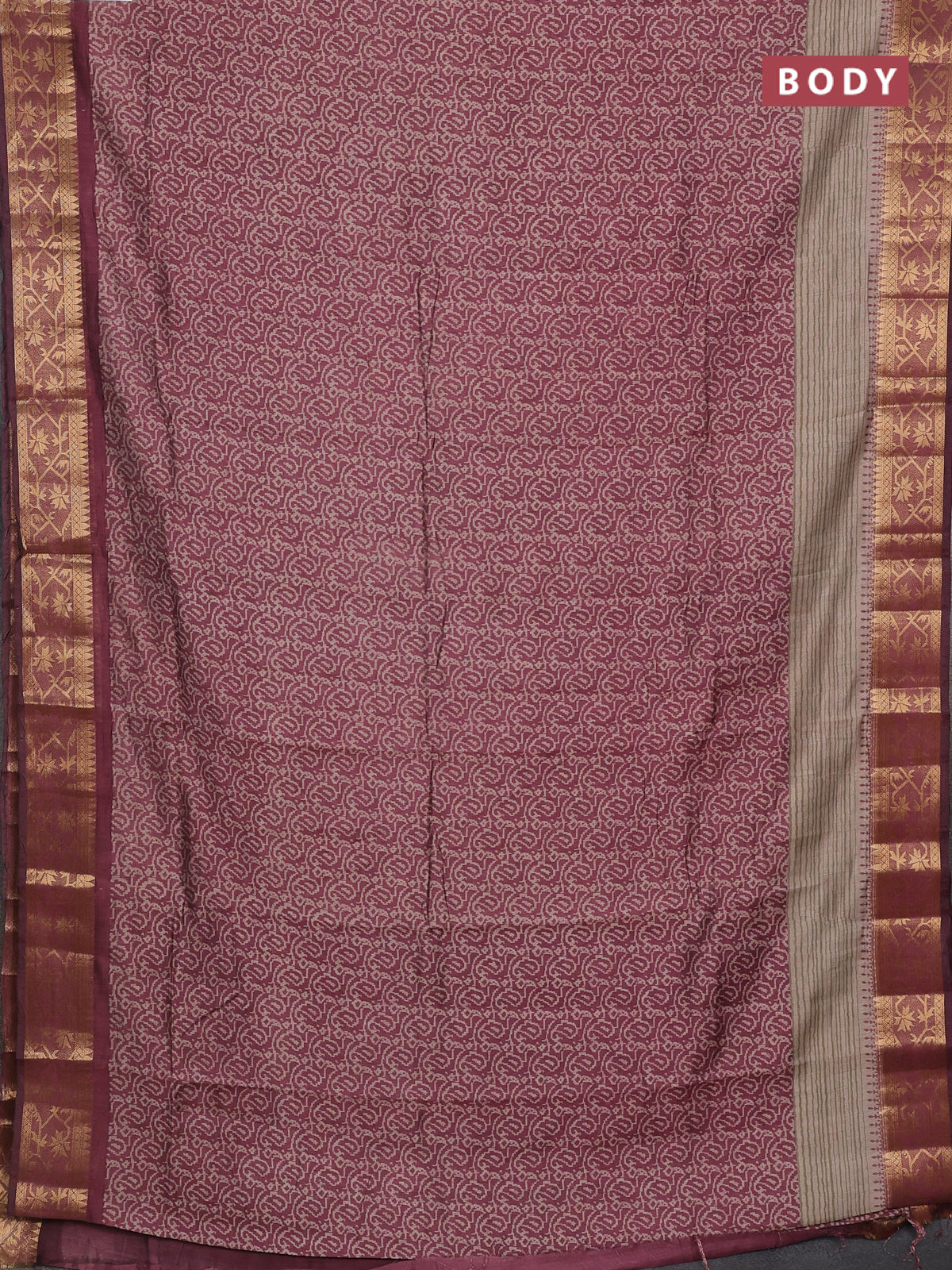 Semi maheshwari cotton saree maroon shade and beige with allover prints and zari woven border