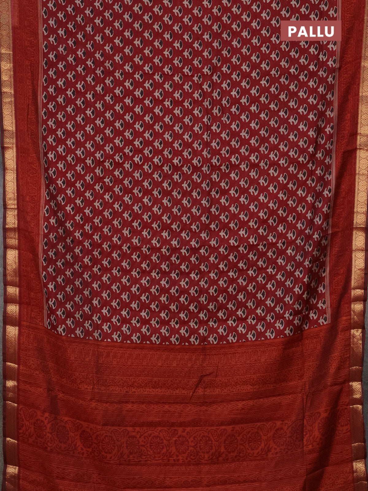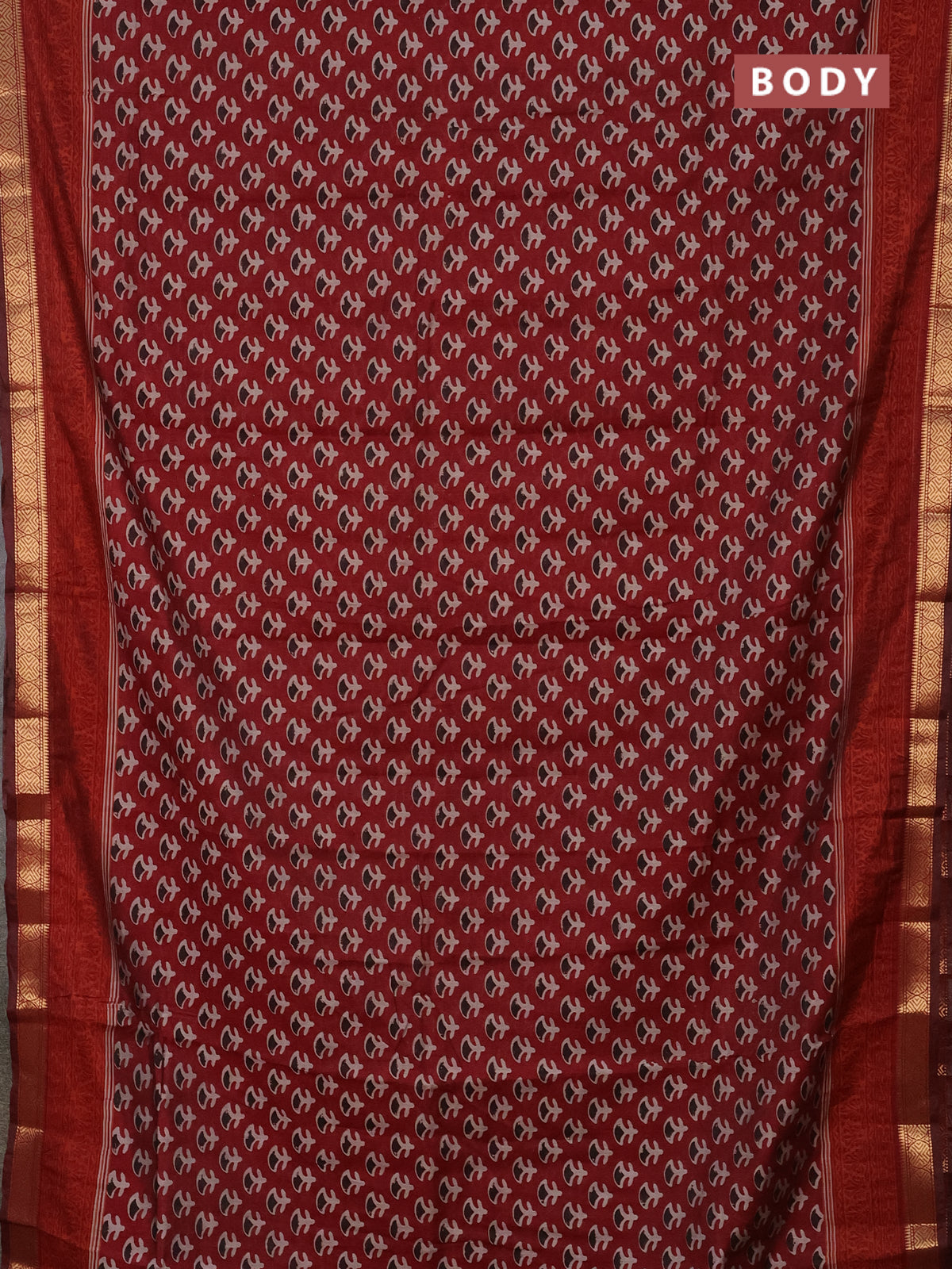 Semi maheshwari cotton saree maroon with allover butta prints and zari woven border