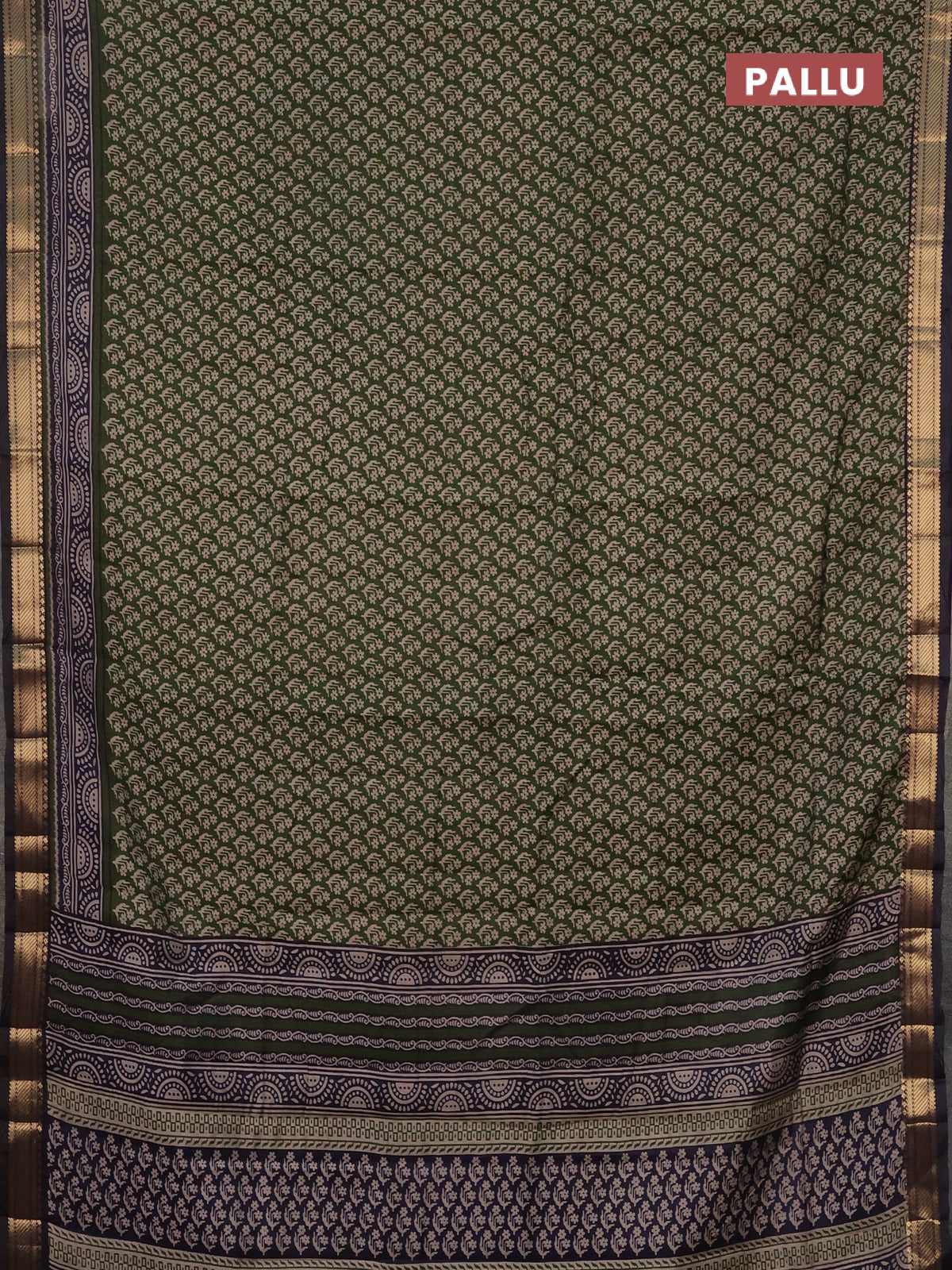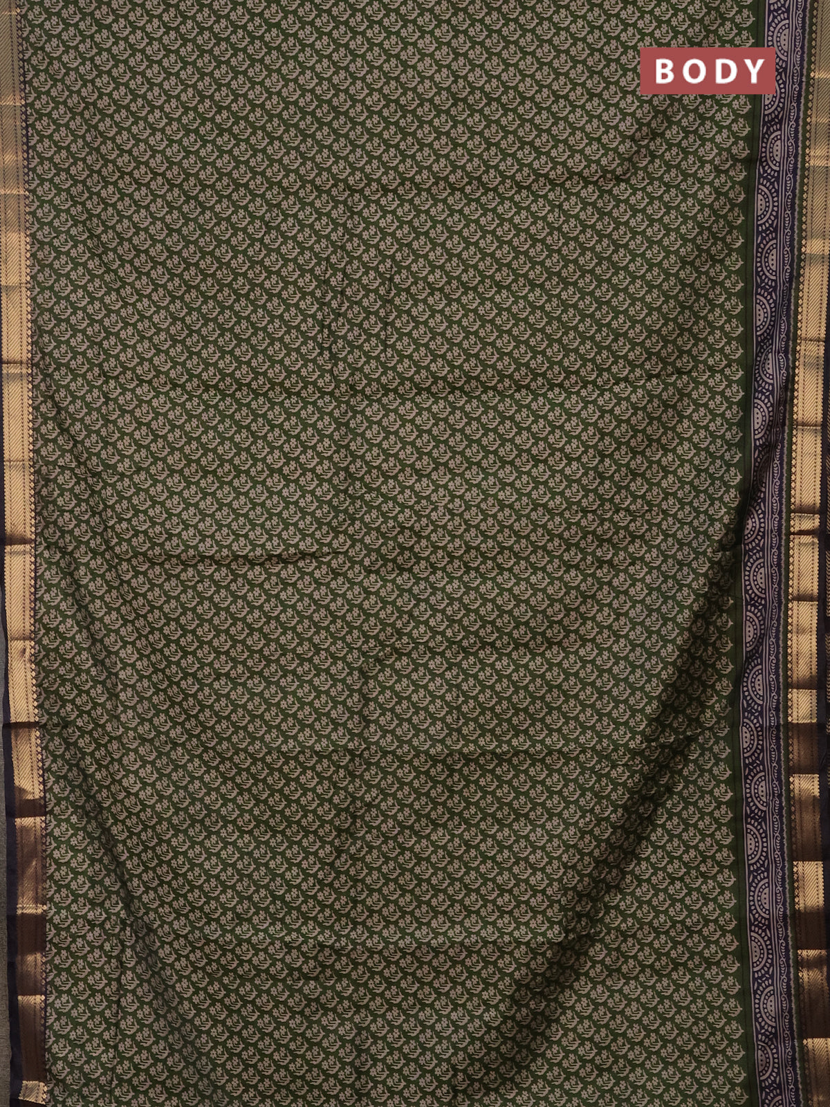 Semi maheshwari cotton saree sap green and dark blue with allover butta prints and zari woven border